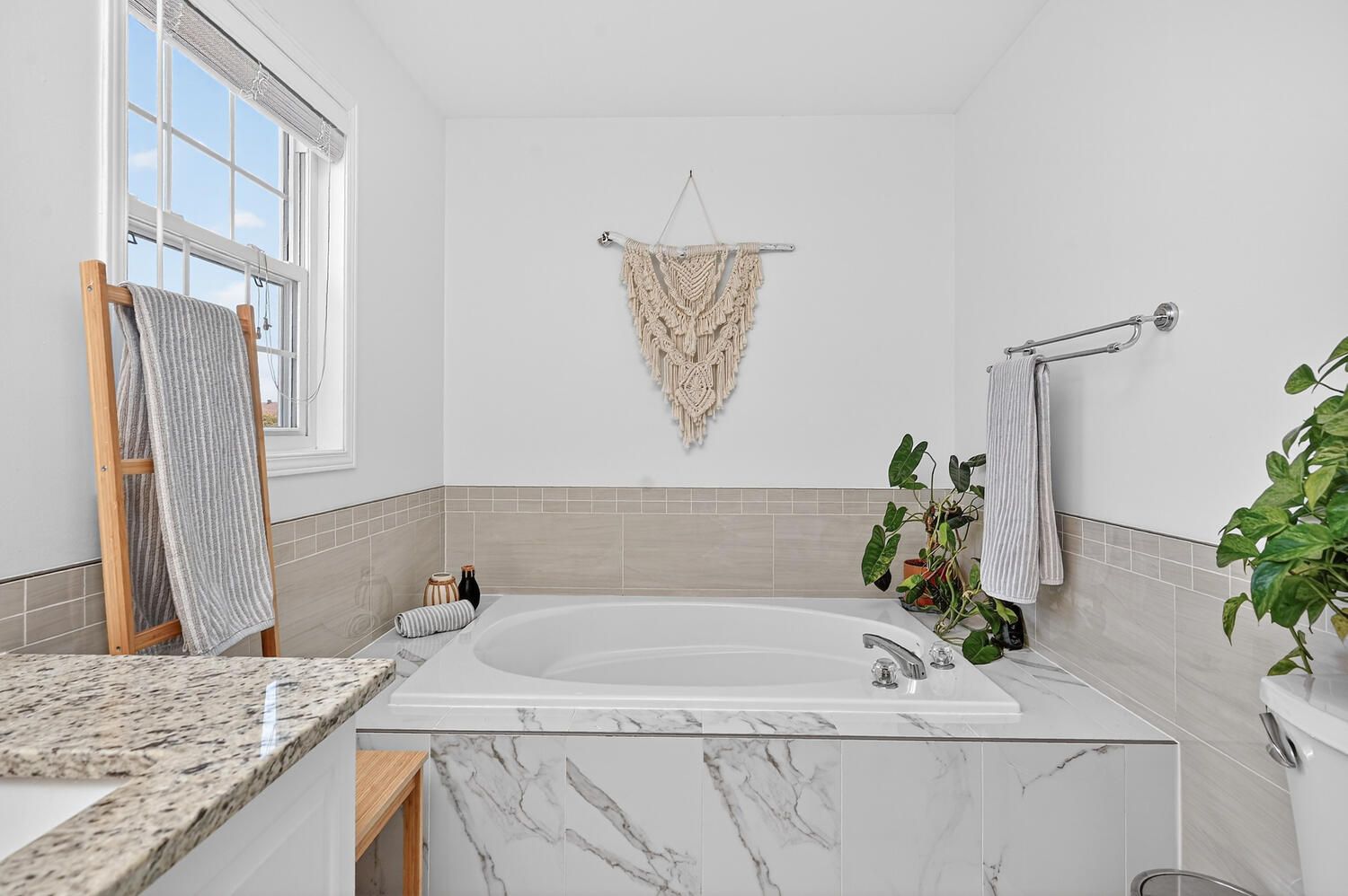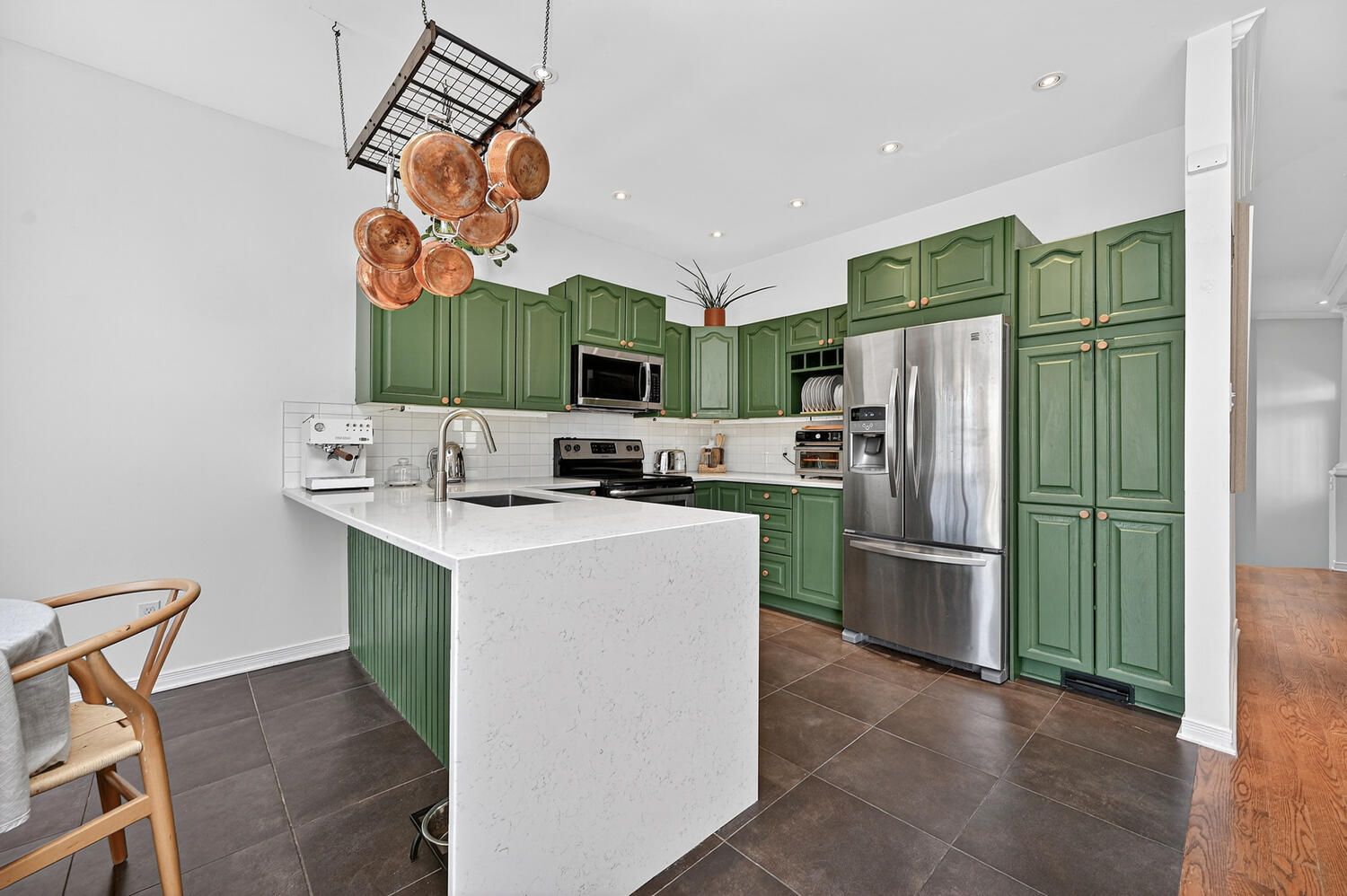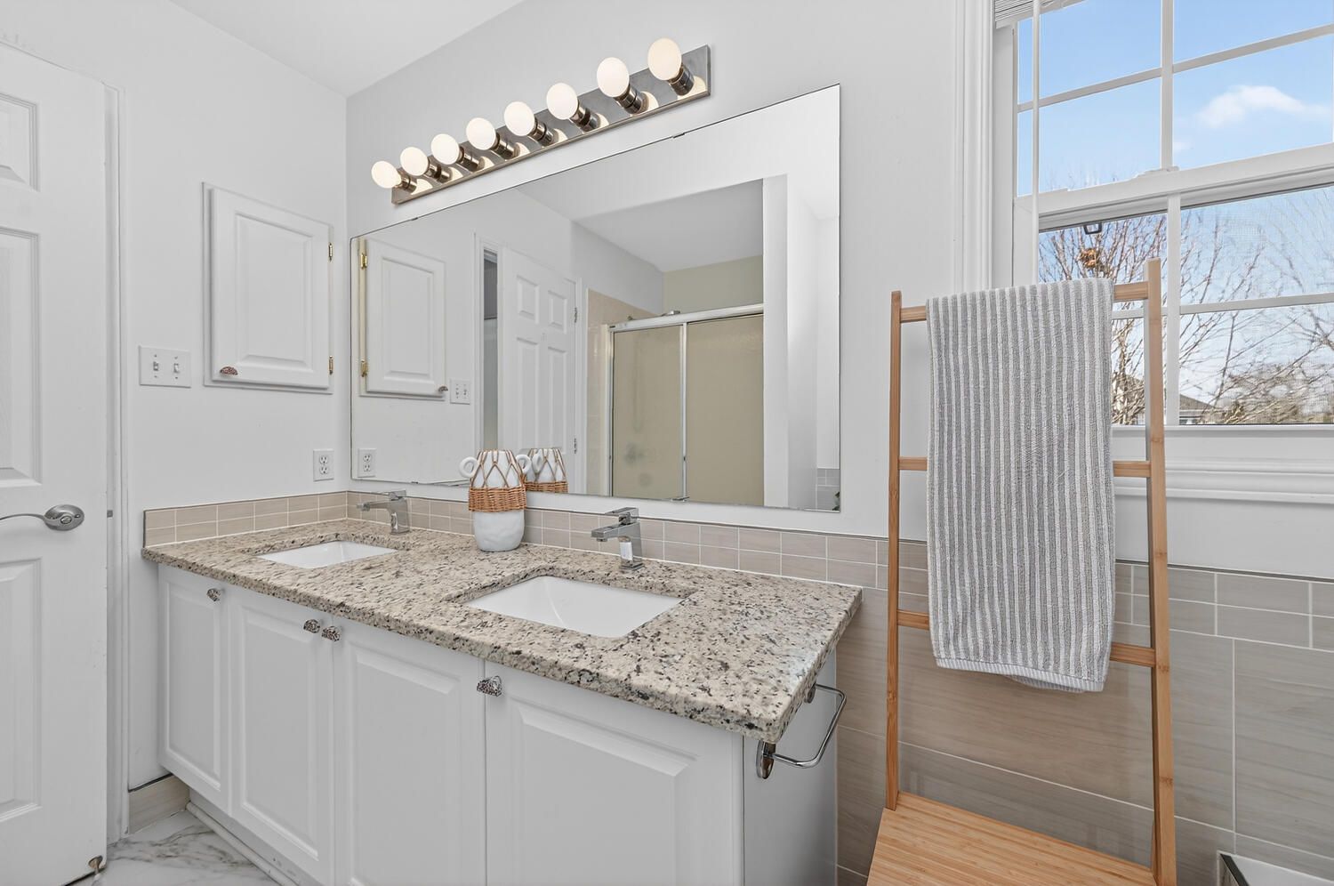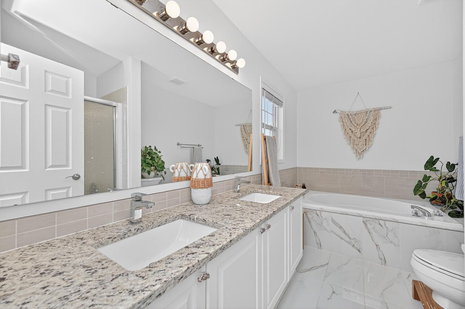 • Stylish kitchen with granite countertops and stainless steel appliances.