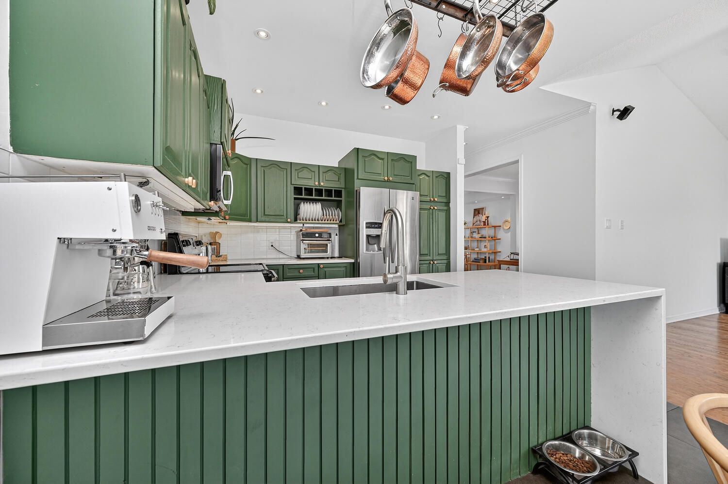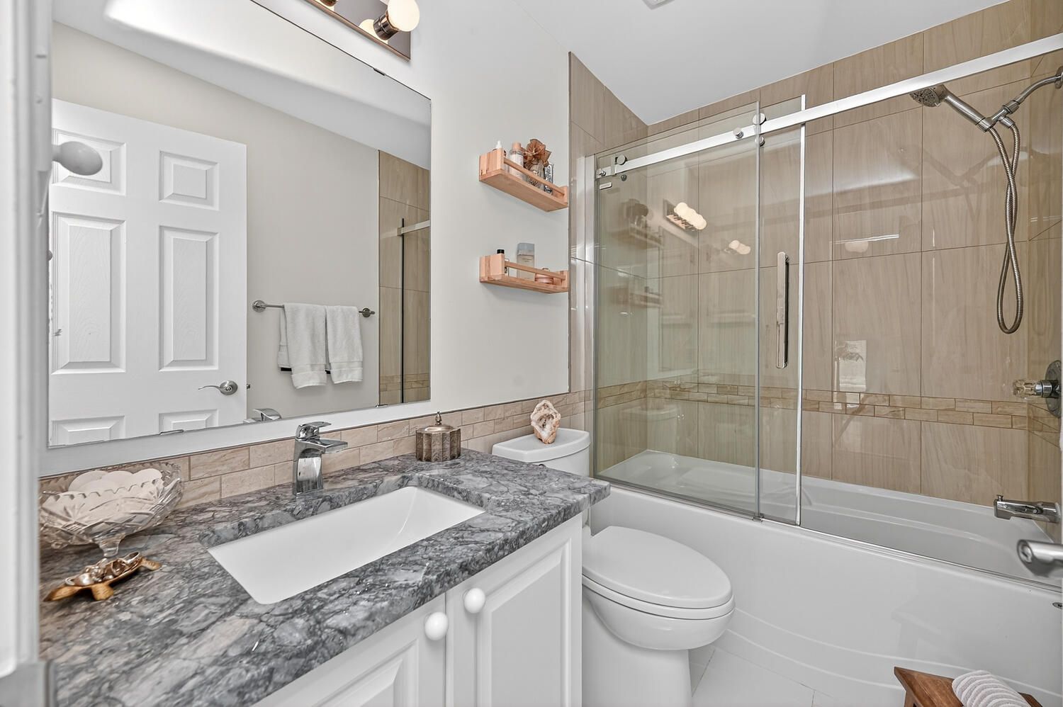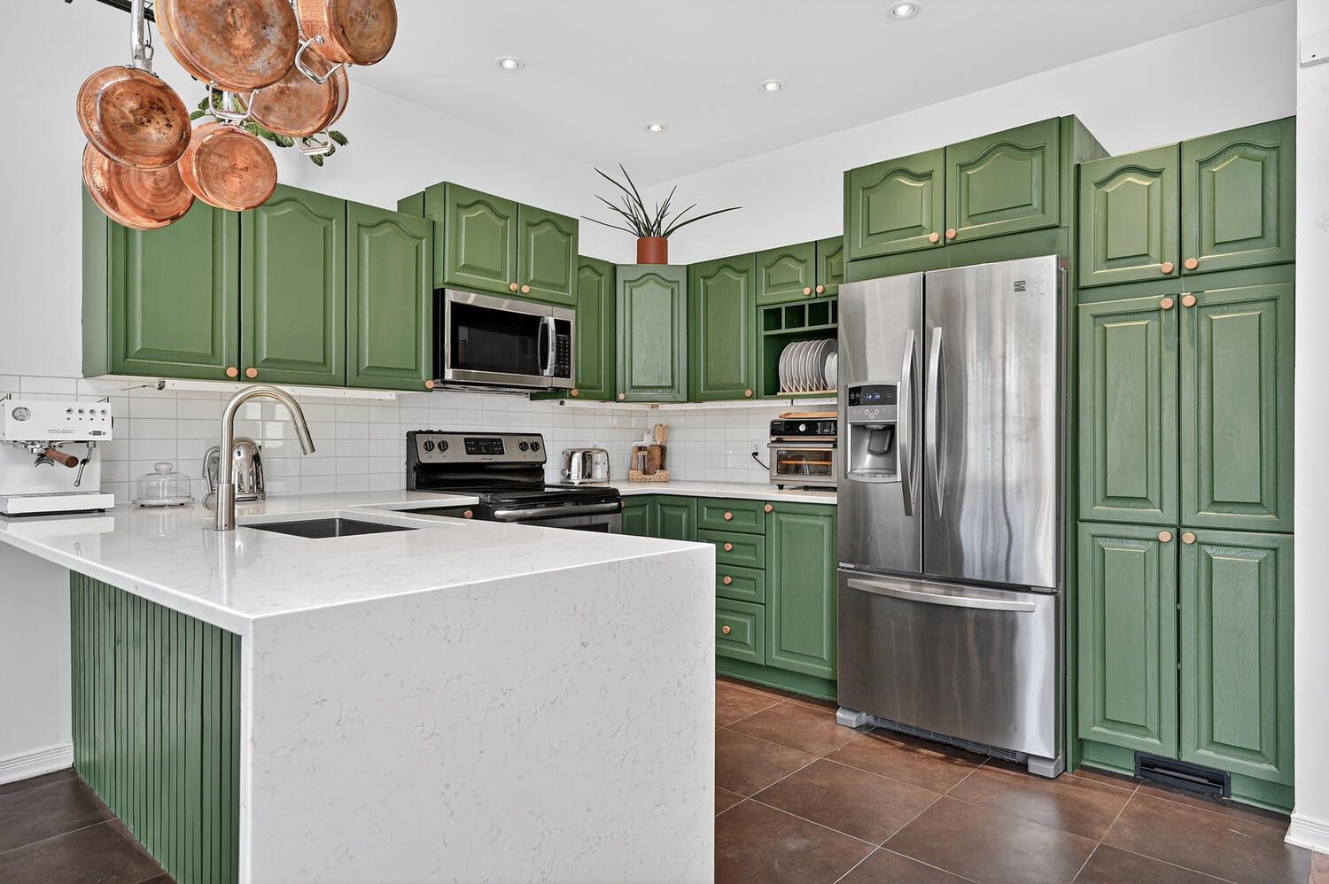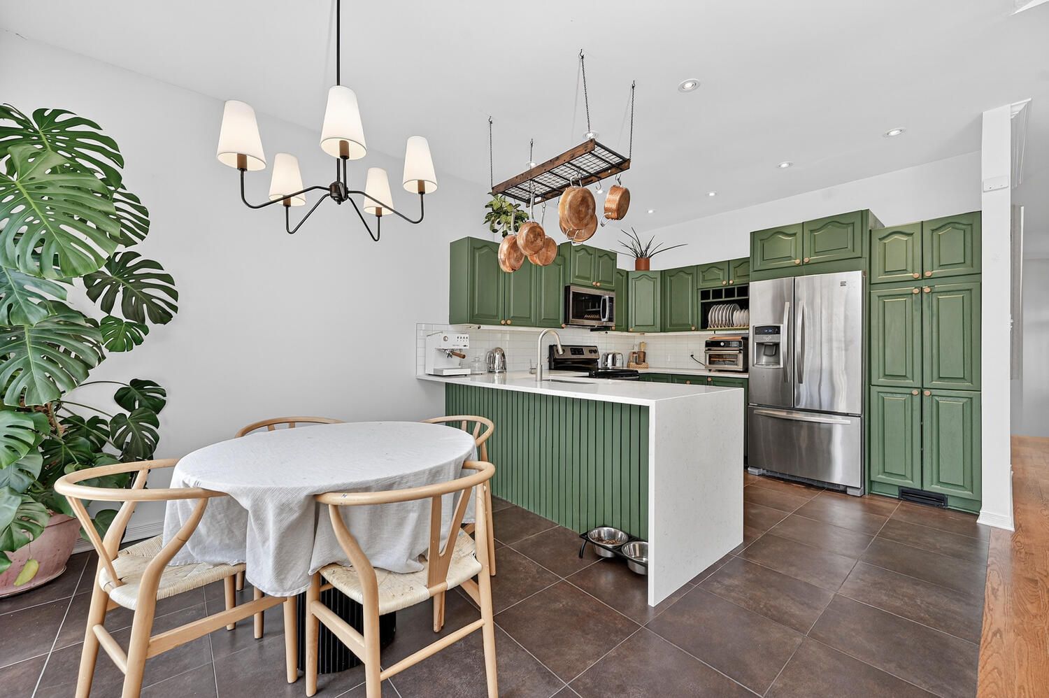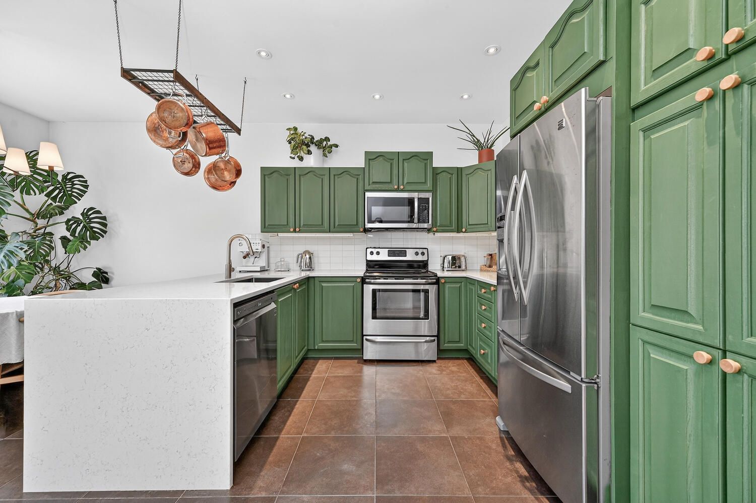 • Stylish kitchen with granite countertops and stainless steel appliances.
