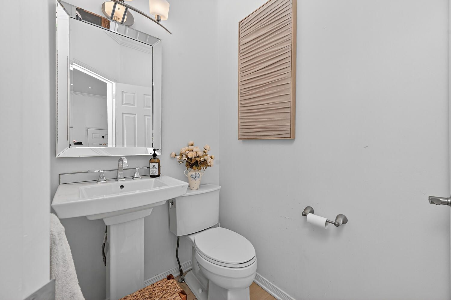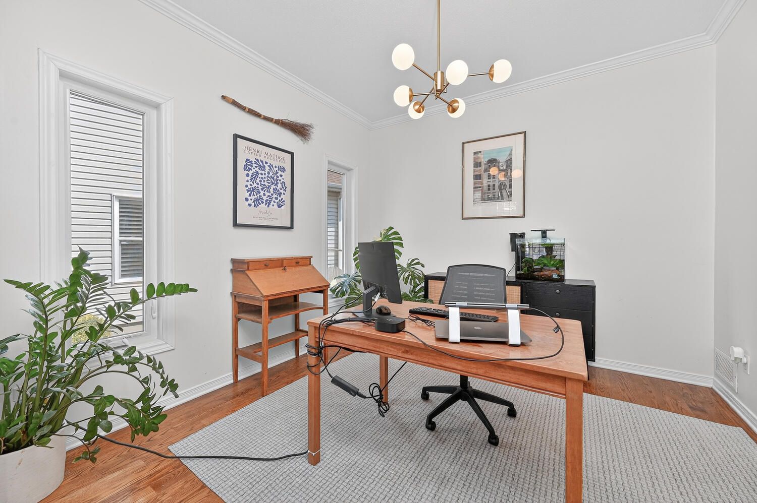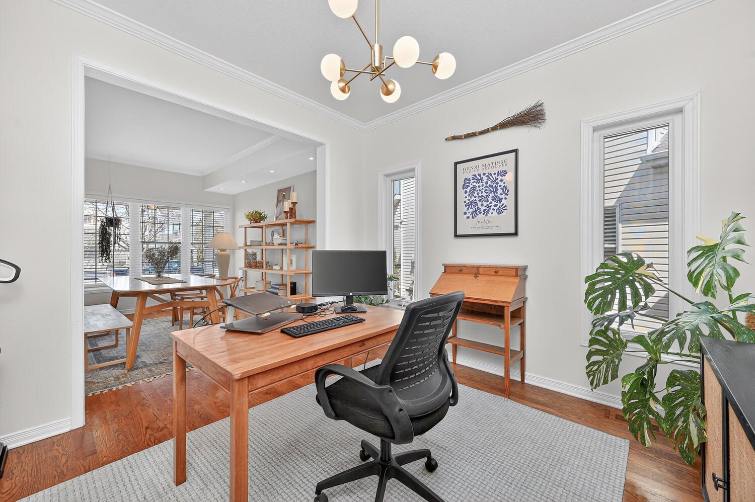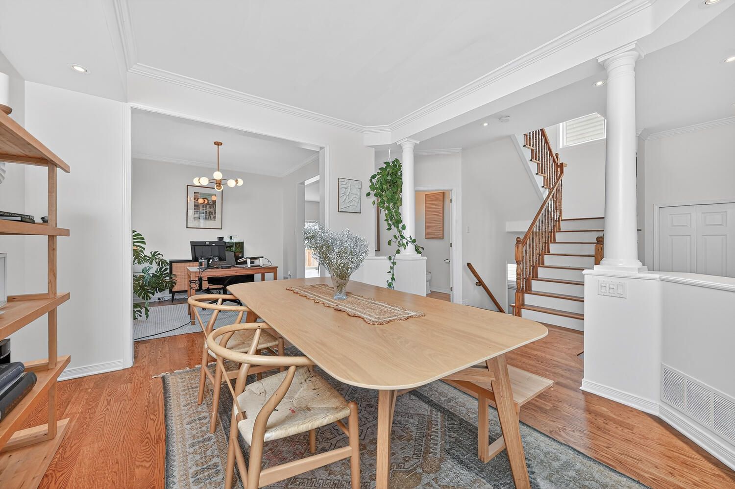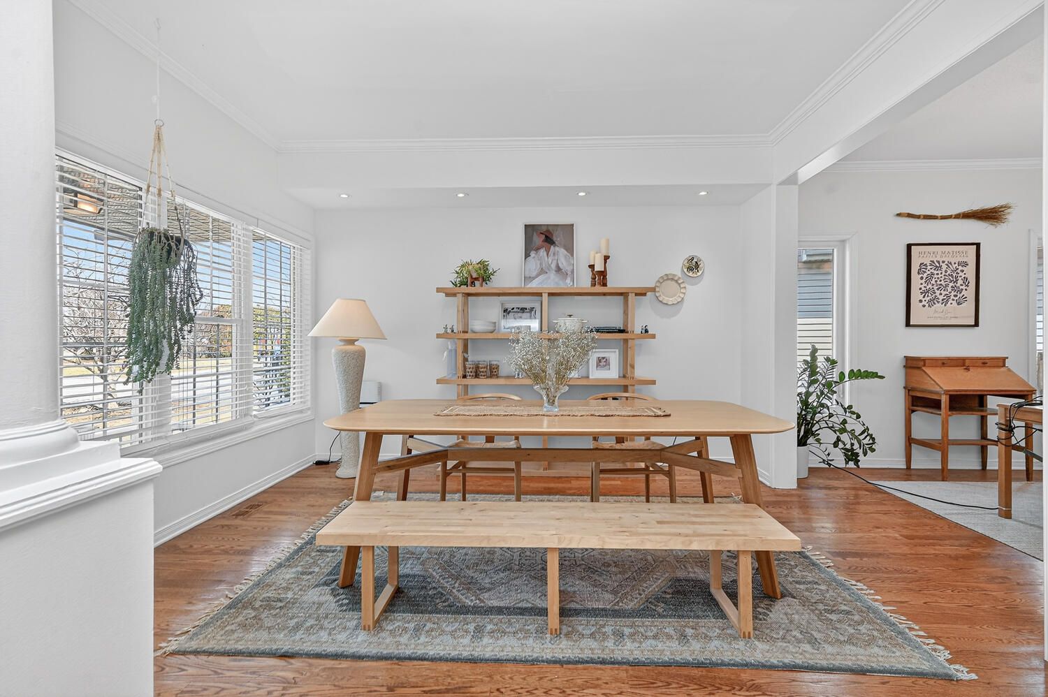 • Bright foyer leads to elegant rooms with hardwood flooring and large windows.