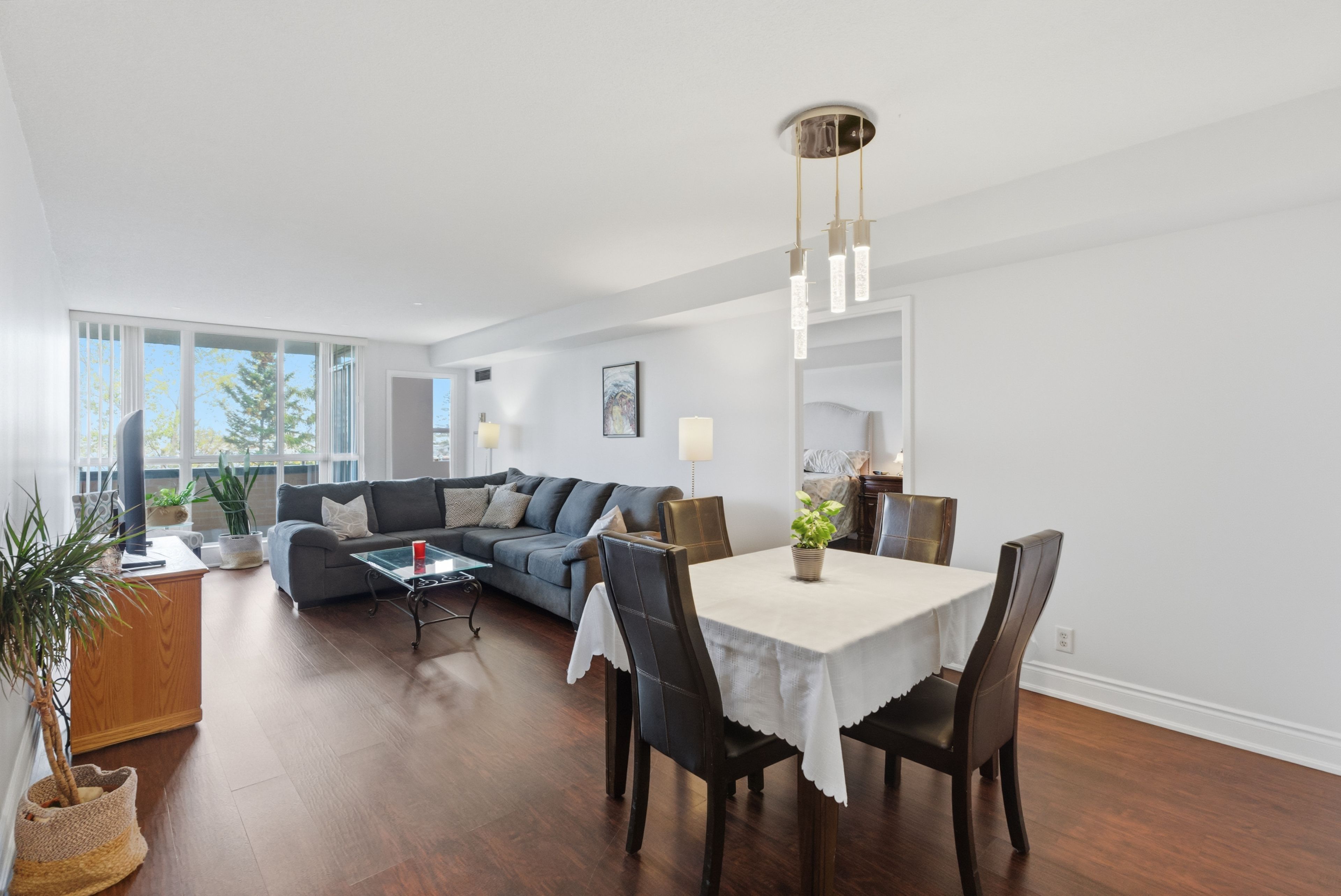 This spacious 2-bedroom, 2-bathroom condo with 2 parking spots offers the perfect blend of comfort, style, and functionality. The open-concept living and dining area is flooded with natural light, leading out to a private balcony, ideal for morning coffee or evening sunsets. The sleek kitchen features modern 3 year old appliances and ample cabinetry. Both bedrooms are extremely spacious in size with walk in closets, with the primary suite also boasting a 4-piece ensuite bathroom. The second full bathroom is conveniently located near the second bedroom. Need a home office or creative space? The versatile den provides the flexibility you need to work from home or unwind in peace. With in-suite laundry, secure building access, loads of amenities, this condo checks every box. The building amenities include an indoor pool, squash court, exercise room, games room, party room, sauna and visitor parking. Located close to shopping, hwy 401, parks and schools. Whether you're entertaining guests or enjoying a quiet night in, this home offers the lifestyle you've been looking for.