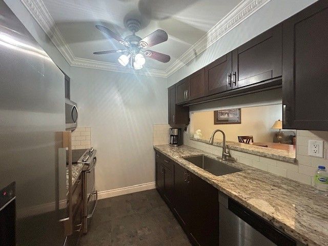 • Modern kitchen with granite countertops, great for cooking and hosting.
