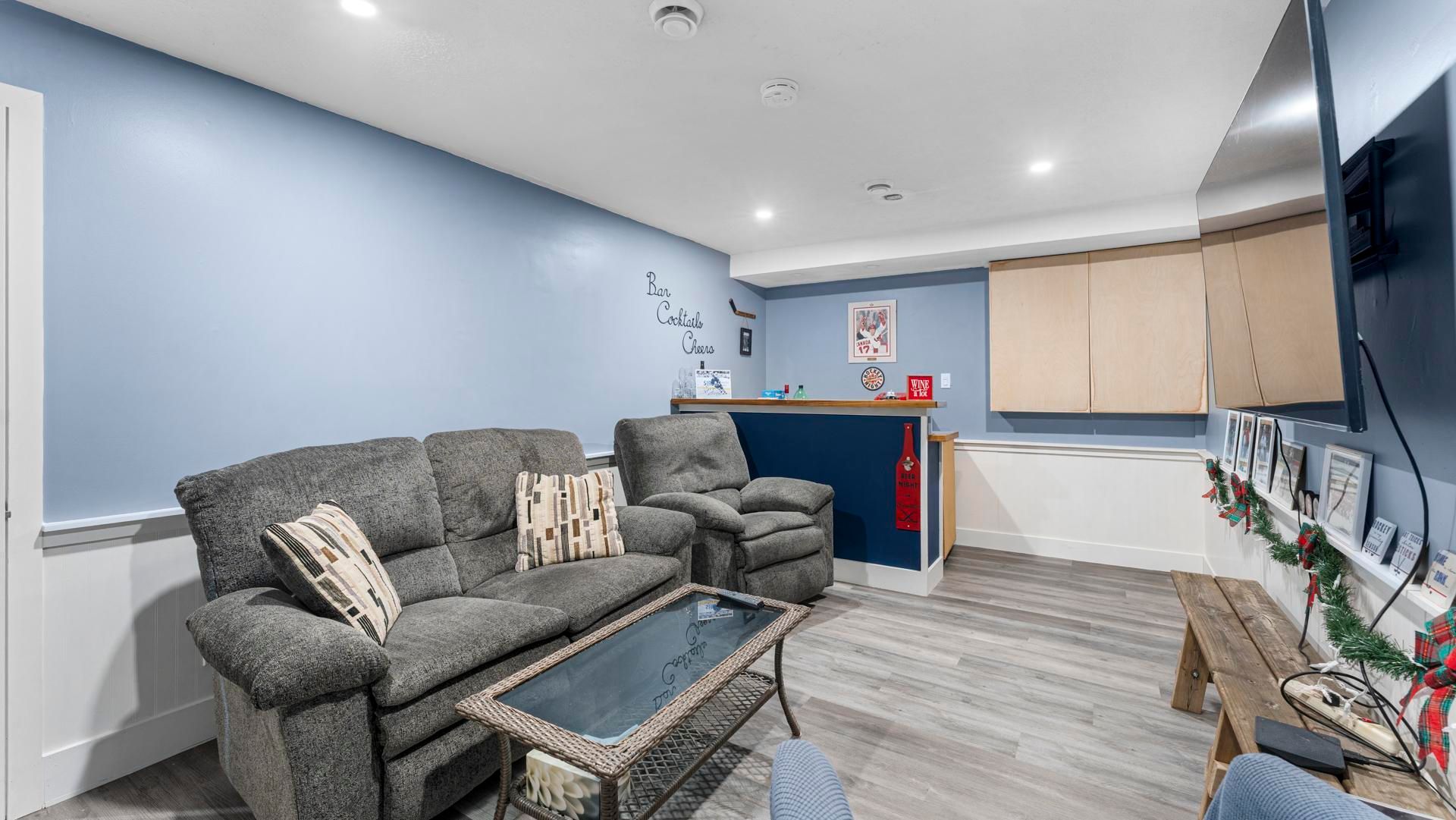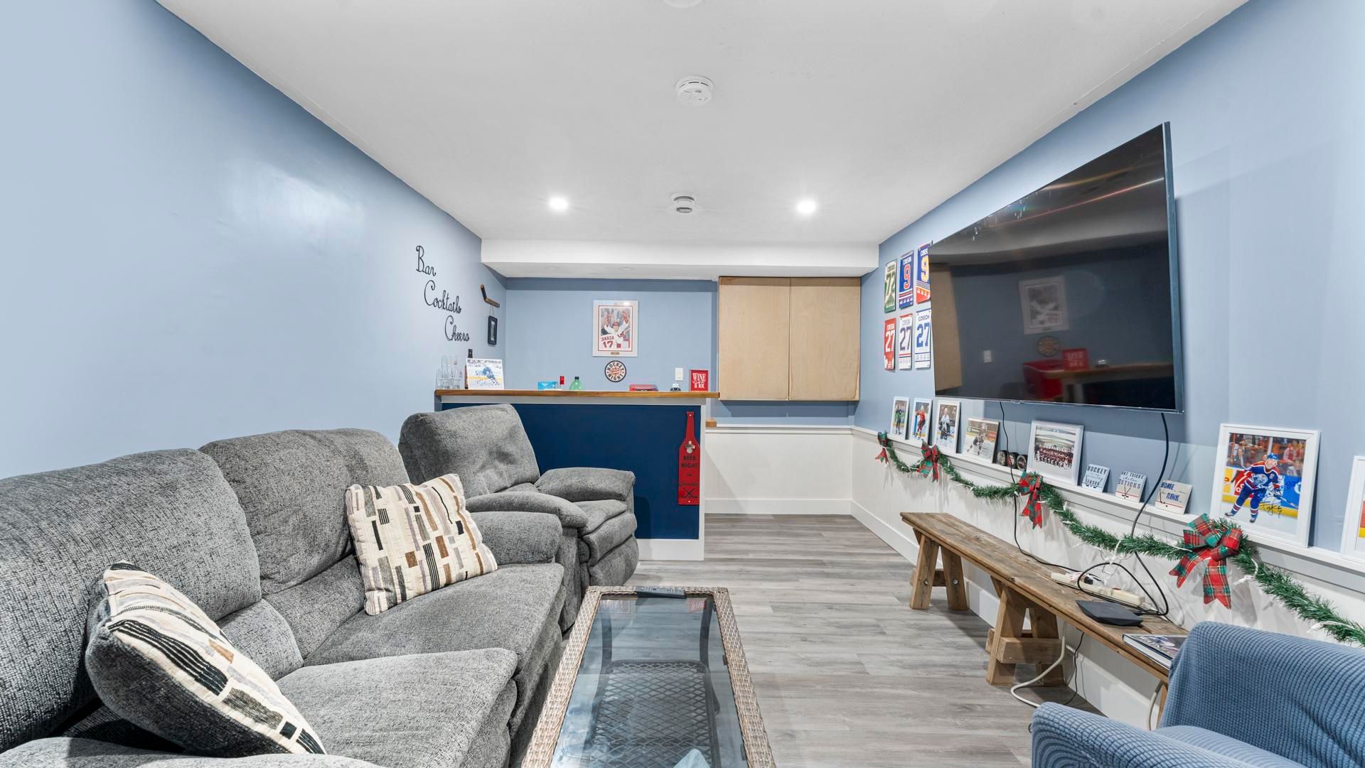 • Finished lower-level family room ideal for gatherings and entertainment.