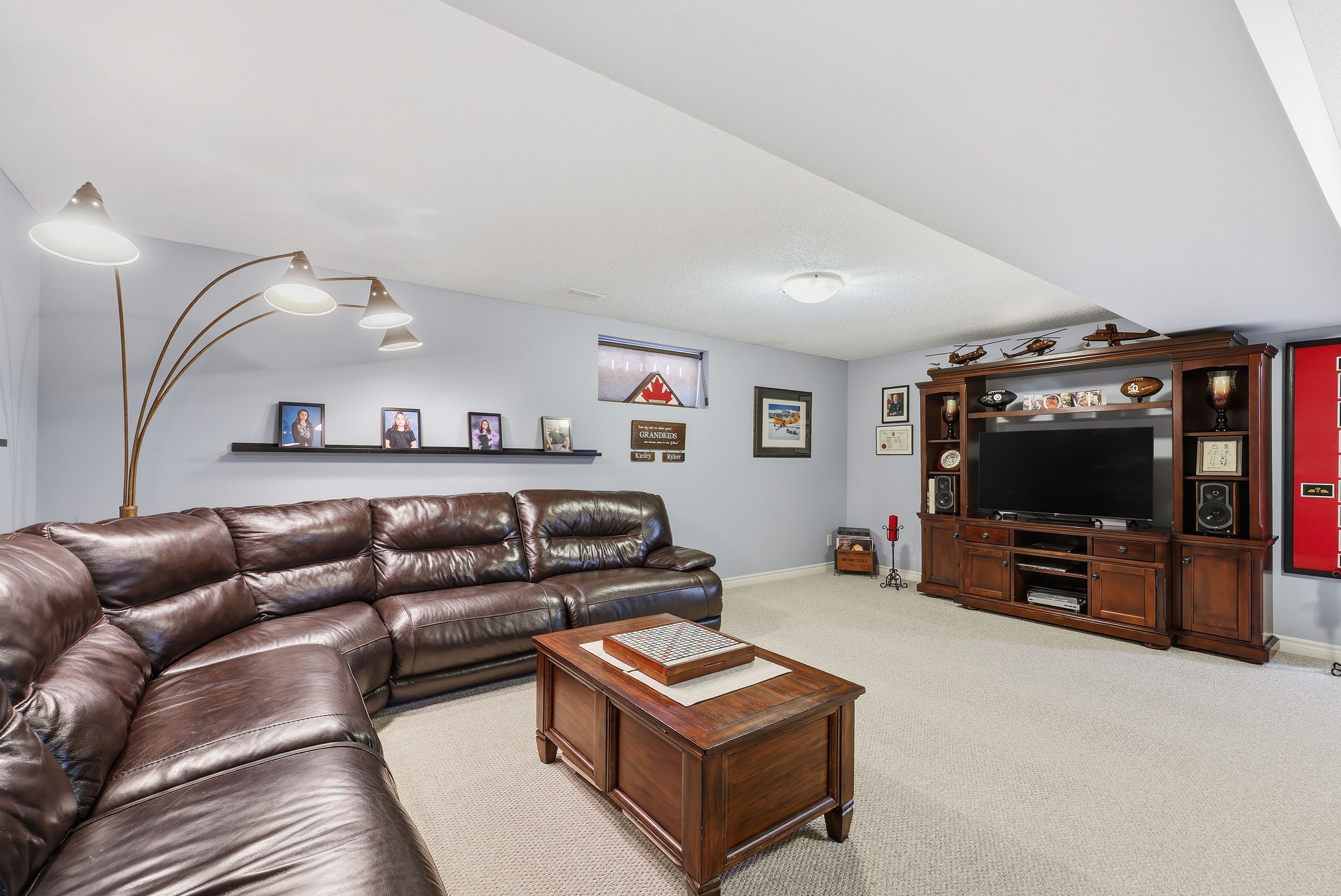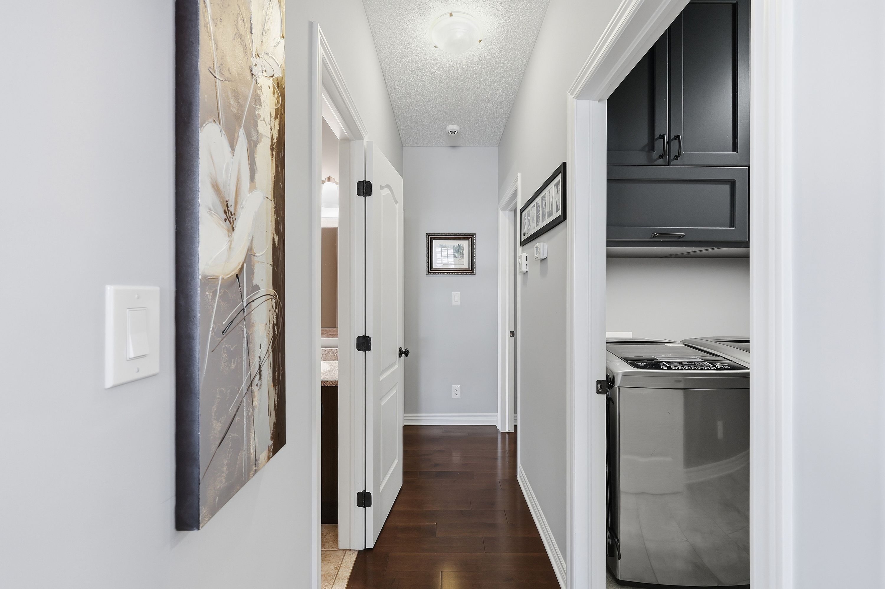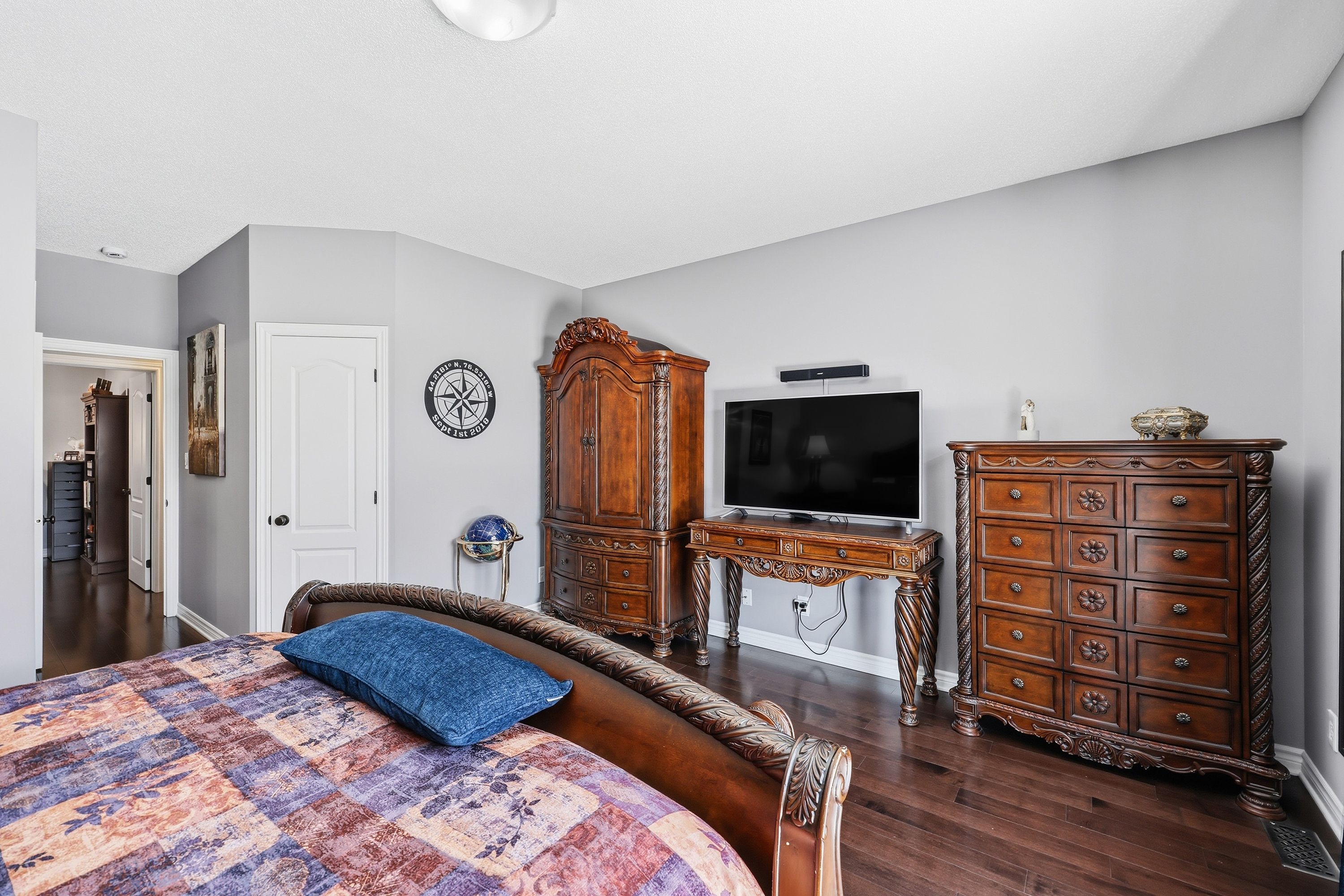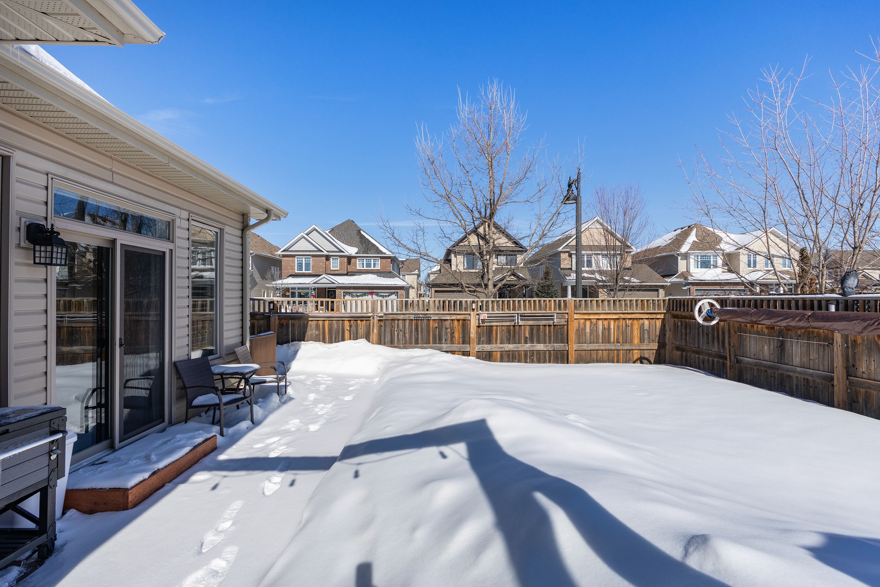 This custom built home pays particular attention to detail with high end finishes throughout. The large entry flows seamlessly through to the open concept living areas with gleaming hardwood floors, 9' ceilings, a large kitchen with granite countertops and centre island that seats 4comfortably. Continue through the dining area to the living room with large patio doors and california shutters. The massive primary suite includes a 4pc bath with granite counters and a large tiled shower with glass doors. A bonus in this suite is another set of patio doors leading to a resort style backyard. To complete the main floor, there is an office/den, a 2 pc powder room and the laundry/mudroom which includes a full wall of built in cabinetry providing clean, ample storage to tuck away all your belongings. The fully finished basement is accessed by a beautiful hardwood staircase leading to an oversized rec room, large bedroom and a 4 piece bath. There's ample room for storage in the utility area but if you need more, there's plenty in the true double car heated garage with automatic door openers and a garage screen door. Last but certainly not least is the spectacular back yard which includes an on ground pool, private cedar gazebo with hot tub, a pergola and a fully fenced yard that is completely covered by composite decking and stone walkways. Let's not forget to mention the irrigation system for the front yard and a double paved drive that can accommodate up to 4 cars. There's nothing more to do here than move in and enjoy.