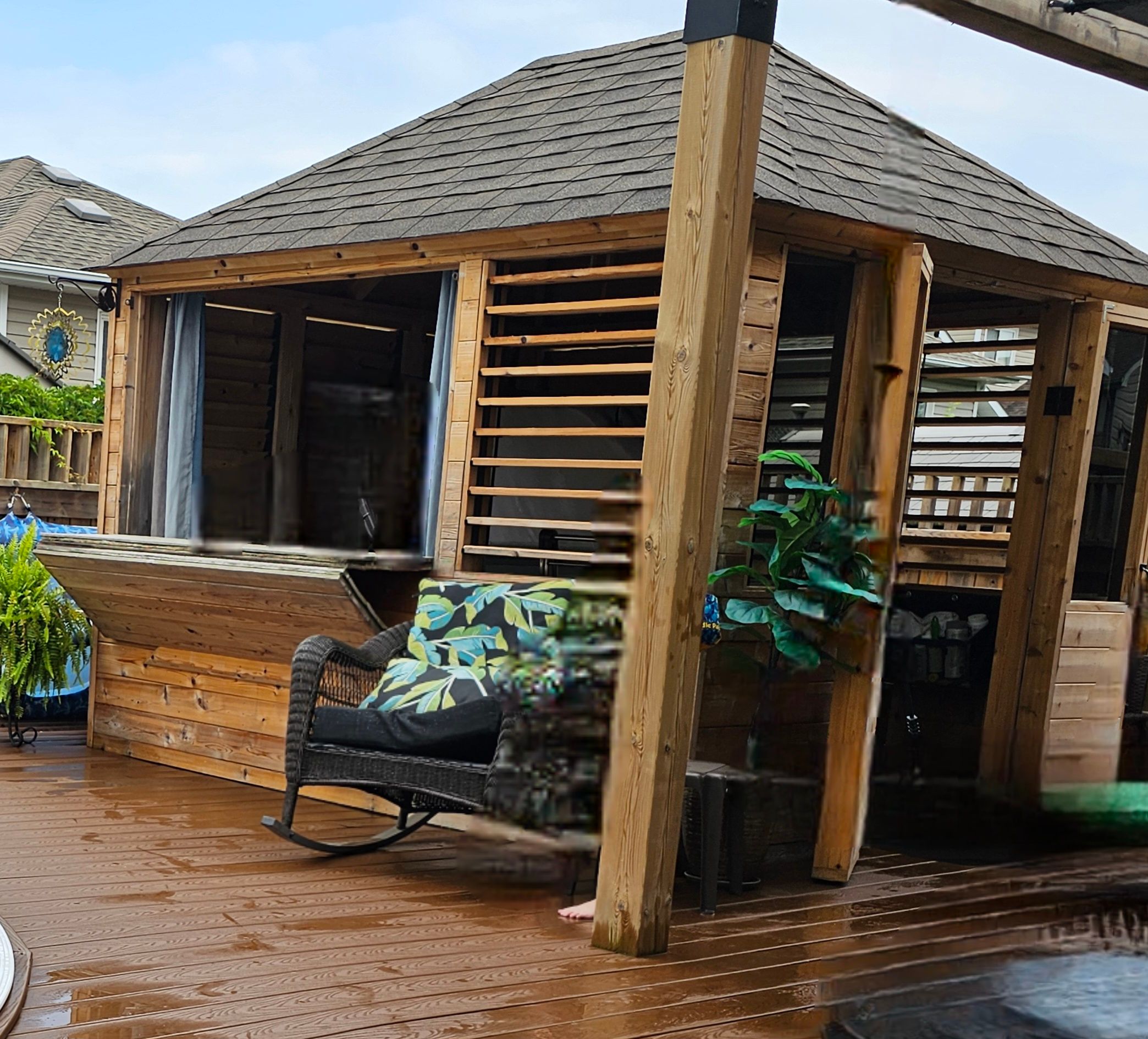 • Resort-style backyard with on-ground pool, gazebo, and spacious composite deck.