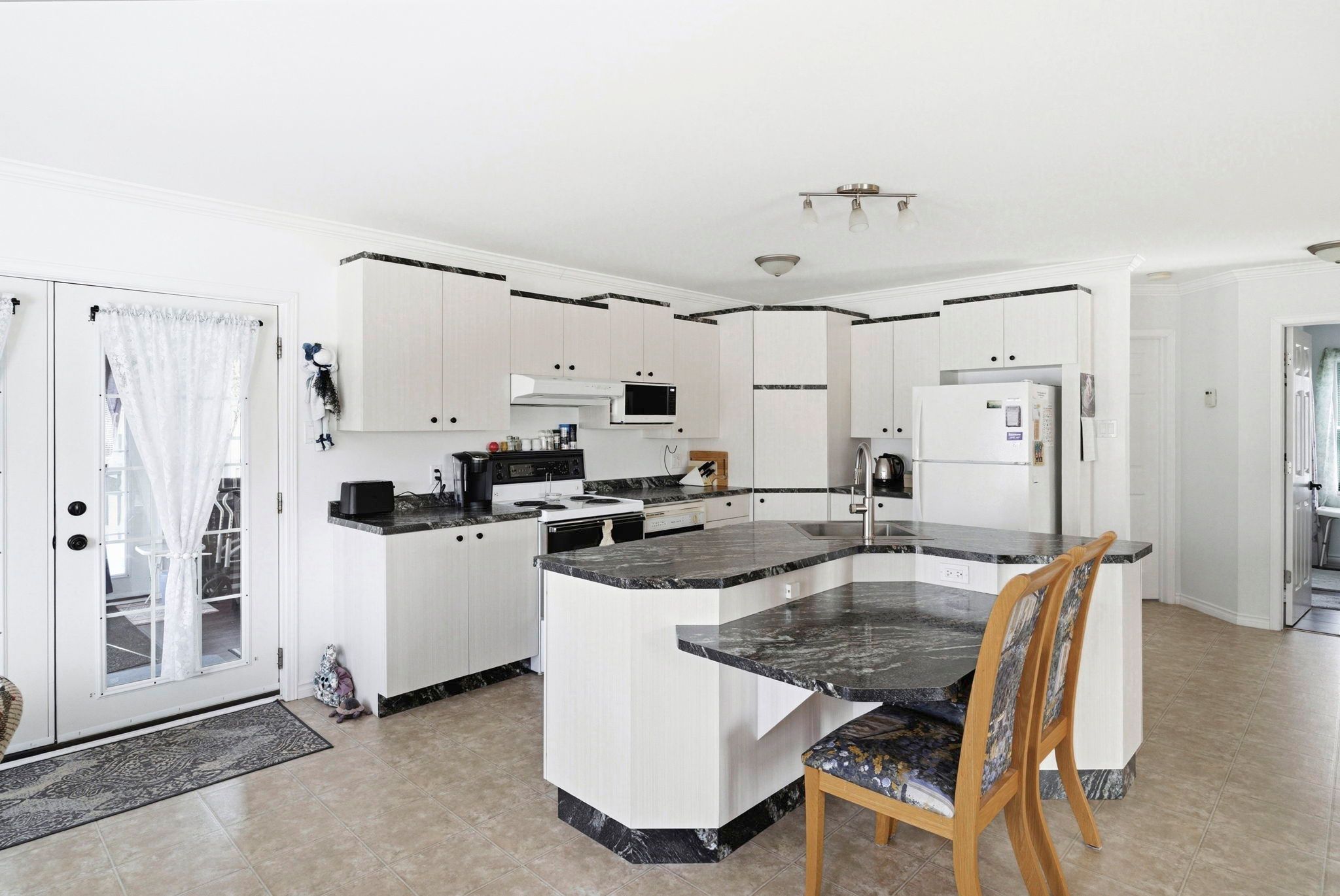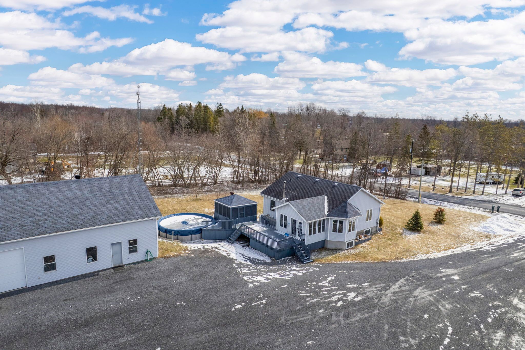 2011 built 4-bedroom home with a massive shop, heated saltwater pool, gazebo, and 8 acres of land - located just 5 minutes outside of cornwall. This impeccably maintained, one-owner property offers the perfect balance of peaceful country living with convenient access to city amenities. Inside, you'll find a bright open-concept kitchen, living and dining area that feels spacious and inviting, with large windows allowing natural light to pour throughout the main living space. The home features 4 bedrooms and 2 full bathrooms, providing plenty of flexibility for families, guests, or home office space. Major components have been well cared for, including 30-year shingles (2010), propane furnace and central a/c installed by houde mechanical, wood stove for supplemental heat, and hot water tank (2019). The property is serviced by a drilled well with newer pump (approx. 5 years), water softener system (new 2024), and a well-maintained septic system with annual servicing by the owner. Step outside and enjoy your own private retreat with a heated saltwater pool (approx. 4 years old), insulated back porch, and beautiful treed acreage. For those needing serious workspace or storage, the 34 x 60 ft shop with 12. 6 ft ceilings is a standout feature. It includes 100-amp electrical panel, water, a floor drain, and a car lift that is included in the sale. Additional structures include a 14 x 30 lean-to attached to the garage and a separate rear shed for extra storage or equipment. Ideal for families, hobbyists, contractors, or anyone seeking space, privacy, and a large shop while remaining close to cornwall. A rare opportunity to own a versatile rural property that has been exceptionally well maintained inside and out. Call now for your private tour. 48 hour irrevocable on all offers.