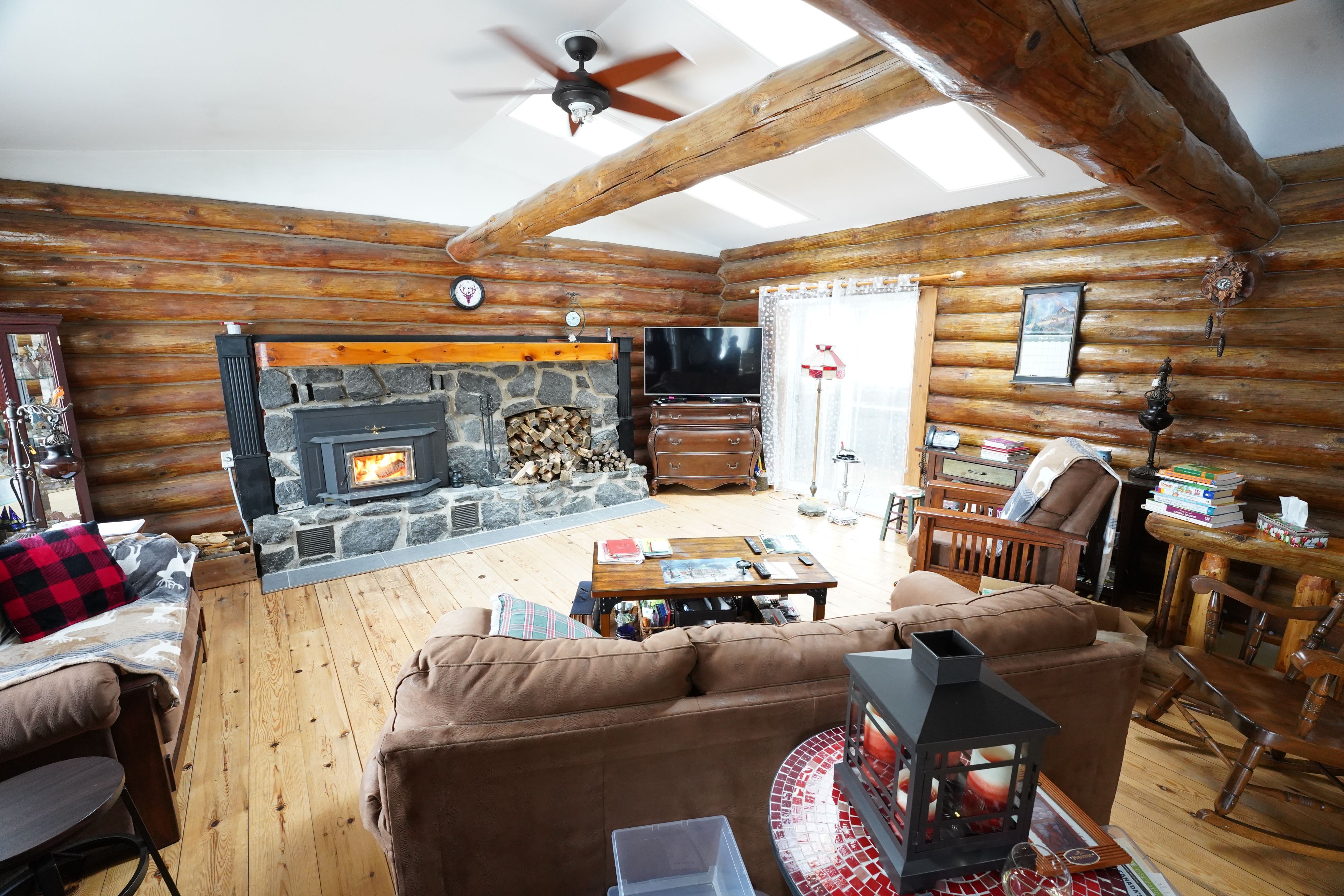 Stunning log home with privacy on a large parcel lot, just minutes from cornwall ! This stunning log home built in approx. 1983 offers a peaceful escape surrounded by nature. From the moment you step inside, you're greeted by warm wood accents and a rustic charm that flows throughout the main level featuring 2 spacious bedrooms ,1 full bathrooms ,kitchen providing a great working space to create family meals and a living room with area with a. Beautiful stone wood fireplace , large window is a cozy place to entertain or relax and enjoy the view, this room includes sliding doors that open to a serene screen porch ,perfect for enjoying the sights and sounds of the forested surroundings.,from screen porch a door giving access to a back deck, patio area and an above ground pool. The finished lower level blends modern touches with natural character, offering family room ,2 additional bedrooms, a full bathroom, laundry room. Specious detached car garage offering ample storage or workshop potential. This rare property is the perfect blend of rustic living and modern convenience all within easy reach of city amenities. Modern comforts include a drilled well, septic, propane heating, and a generac generator.,you don't have to worry about power outages ! This one-of-a-kind property offers privacy, charm, and functionality in a peaceful rural setting - just minutes from town. Must-see for those seeking the comfort of log home living with room to roam.