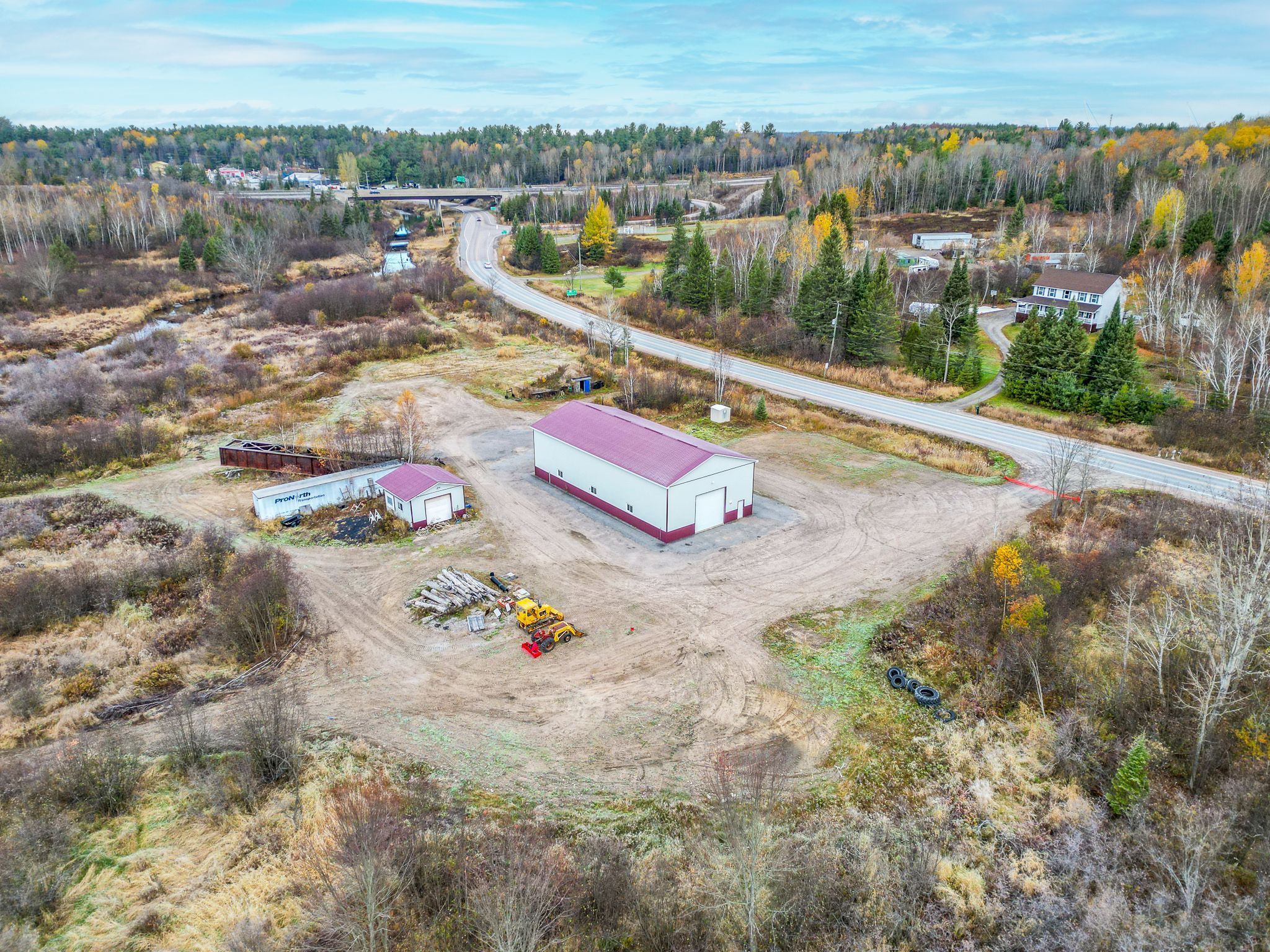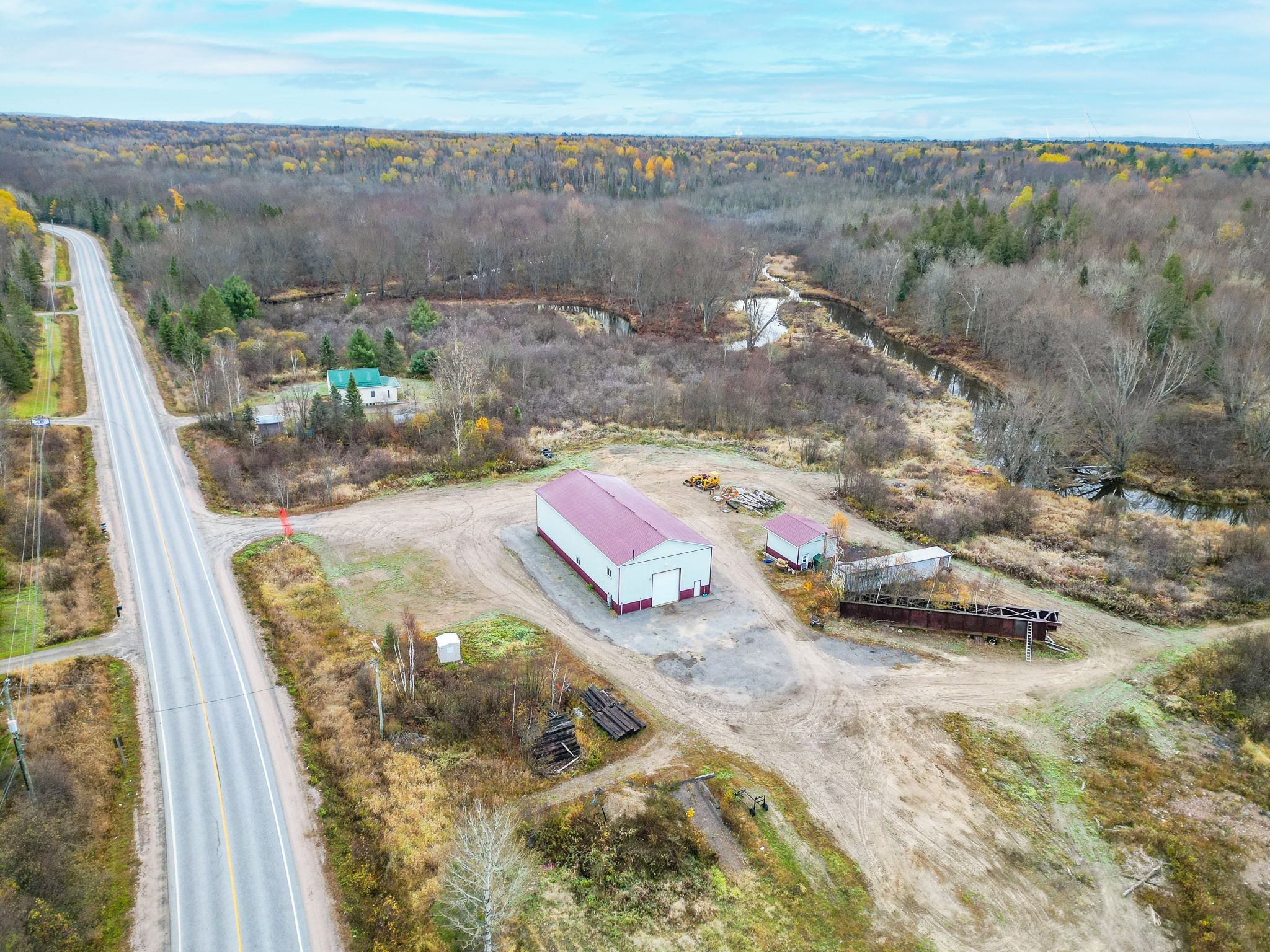 An exceptional opportunity to own 150 acres just minutes from north bay and conveniently located near hwy 11. This unique property offers a rare combination of expansive acreage, a massive shop/garage, and comfortable residential living - all with long-term versatility. A key feature is the well-positioned duplex residence, privately set with a vegetative buffer and its own dedicated roadway access. The building includes a spacious three-bedroom unit and a two-bedroom unit, each with separate hydro meters and ample parking. Ideal for rental income, multi-generational living, or convenient on-site accommodation for owners. The impressive steel-clad 80' x 40' x 20' shop/garage delivers exceptional space and flexibility, featuring two ground-level bay doors (12' and 14' high), 400-amp, 2-phase electrical service, and generous room for vehicles, recreational equipment, hobbies, or storage. The property currently holds an aggregate licence, offering potential future resource use. However, its size and layout also provide flexibility for a variety of long-term possibilities. If the licence were ever surrendered, the zoning may revert to rural, opening the door to an exceptional private retreat, recreational property, or expansive country estate. A truly versatile holding offering established improvements, income potential, and significant future opportunity in a sought-after location near north bay.