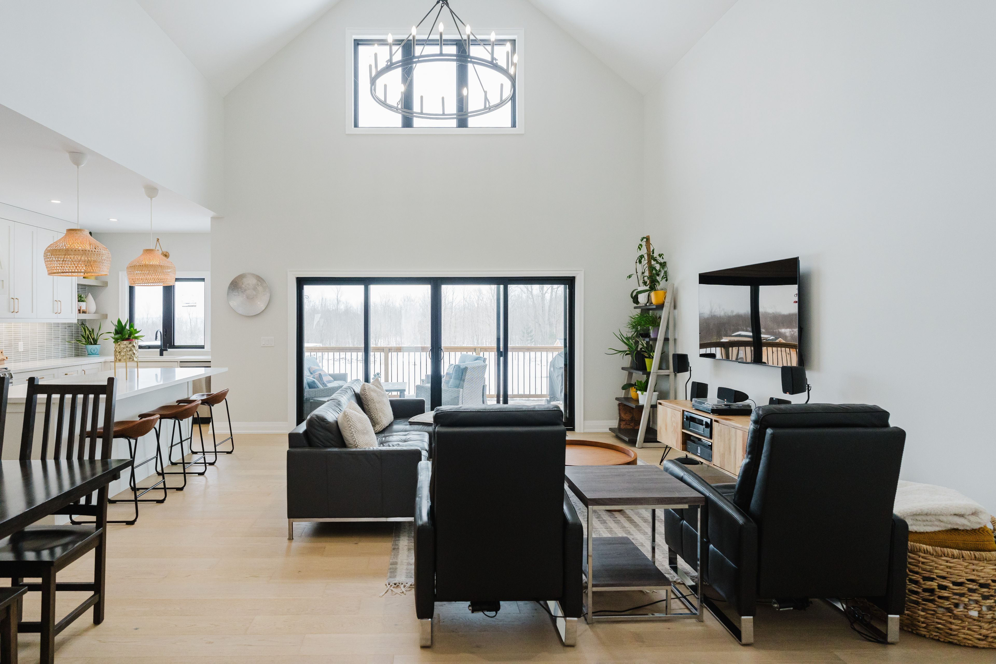• Open concept living spaces with impressive 21-foot vaulted ceilings.