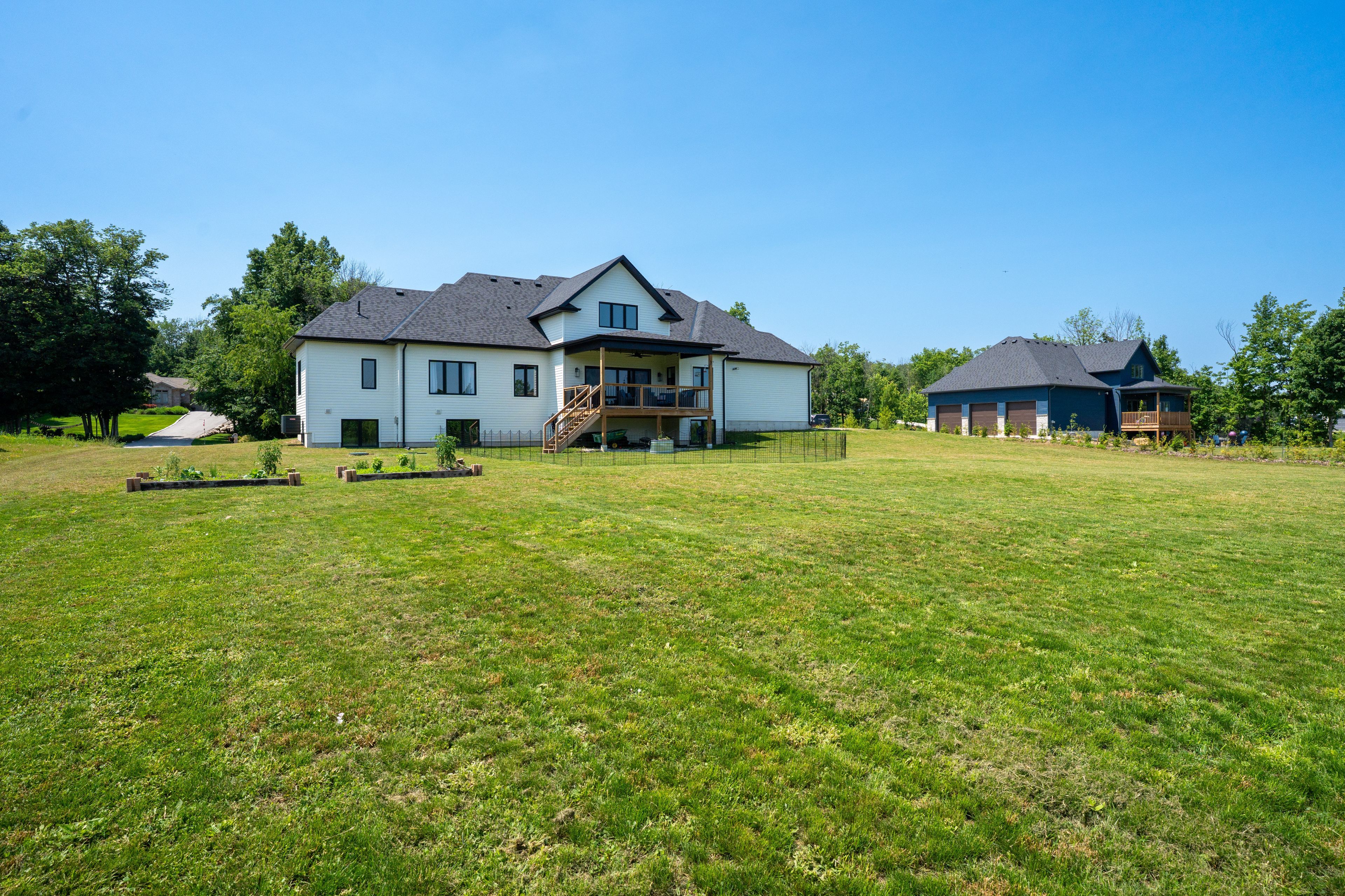 Welcome to 167 alexandria street - a stunning 3 bedroom, 2 bathroom bungalow in kemble. With charming wooden gables, crisp white siding, and a neutral stone, alexandria radiates first-class curb appeal. The cozy, covered front porch beckons you to sit, relax, and wave a neighbourly hello to passers-by. The triple car garage is heated & insulated - perfect for storing your off season vehicle. Just a short drive to owen sound, and minutes to cobble beach and legacy ridge golf course, premiere golf, dining and experiences are just a jaunt away. Step into a modern and open concept home, with soaring 21-foot vaulted ceilings and bright, airy living spaces with engineered hardwood throughout. The spacious kitchen features an eat-up island, a stylish coffee bar with tiled backsplash, upscale hood vent, appliances and floating shelves. Oversized patio doors in the living room flood the space with natural light, leading to a covered back porch. The primary bedroom is a retreat; complete with large walk-in closet, and luxurious ensuite with soaker tub and walk-in shower with tiled feature wall. Two additional bedrooms and a beautiful 4-piece bath offer great space for family or guests. The massive basement offers nearly 2000 sqft of unfinished space and is ready for your personal touch with a rough-in for a bathroom, 9' ceilings and large windows that bring in incredible natural light. This home is the perfect blend of modern design and serene country living. Book your showing today!