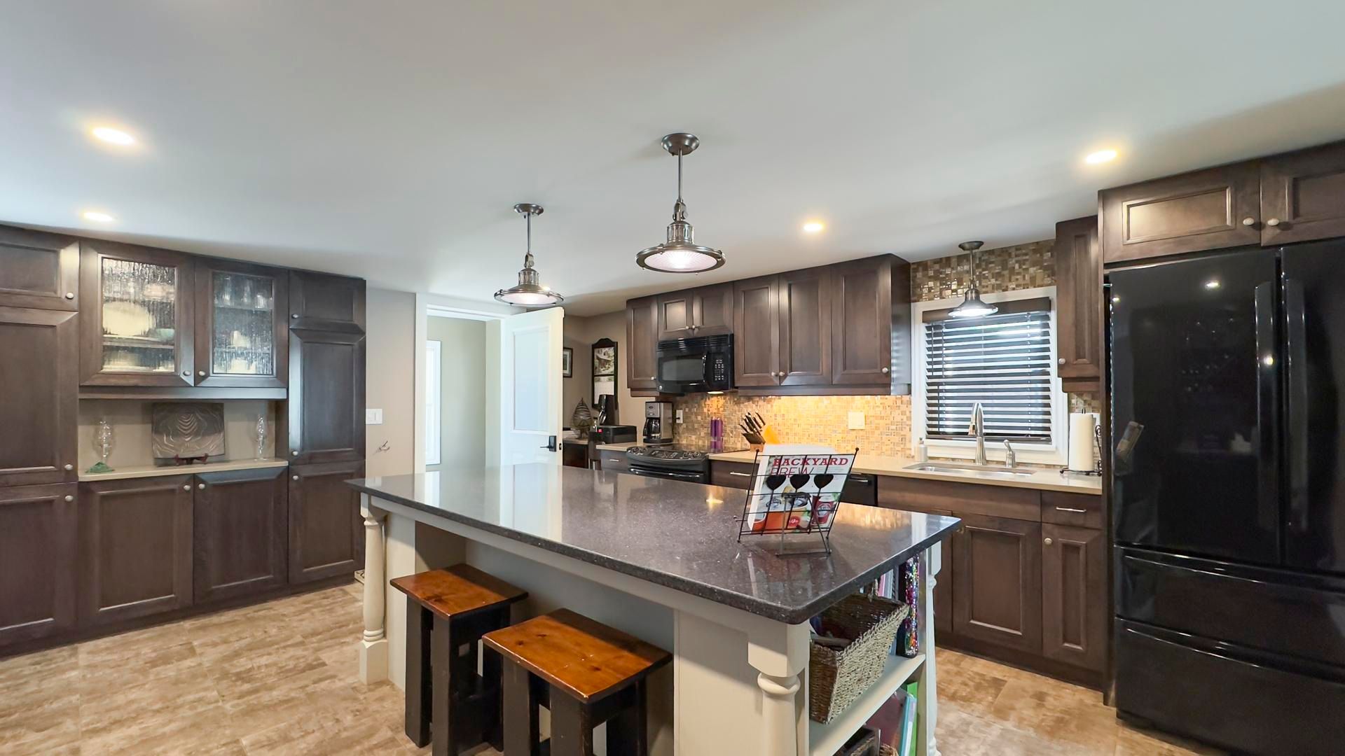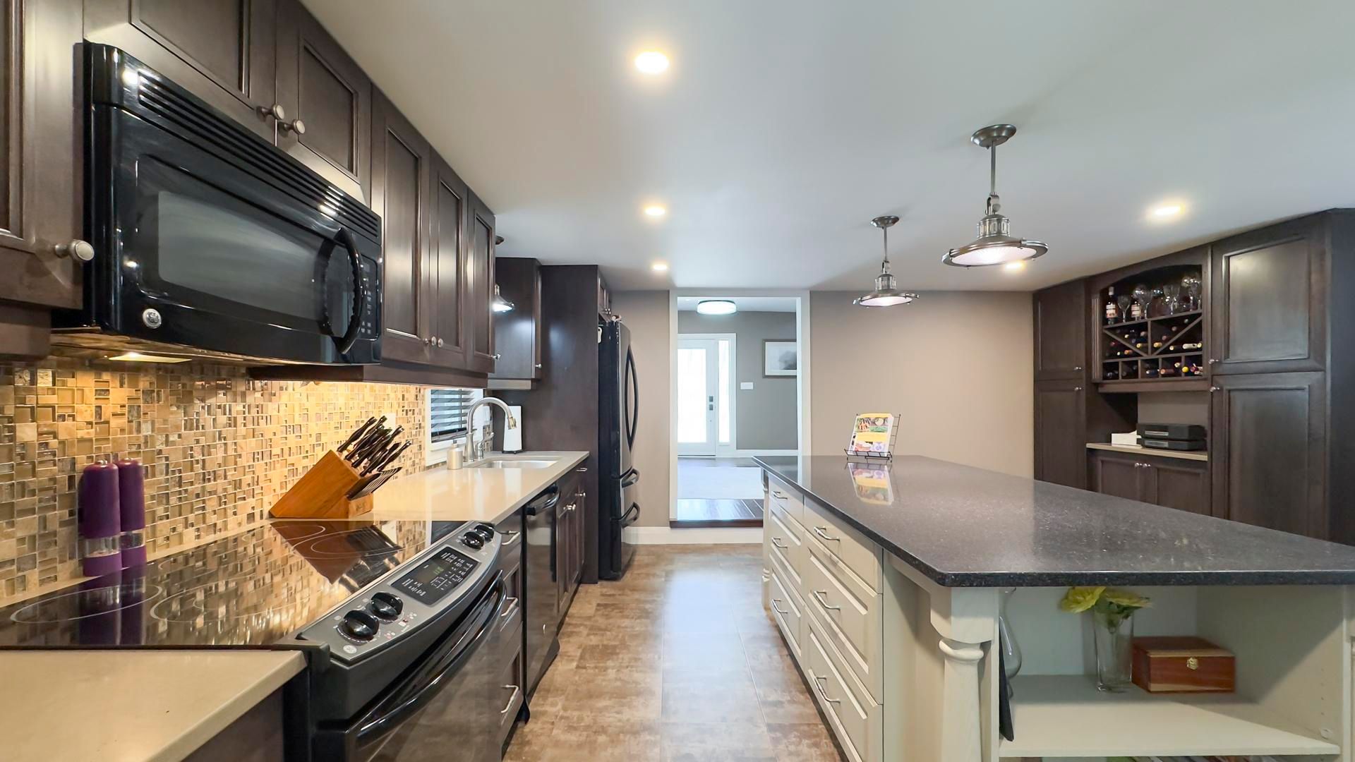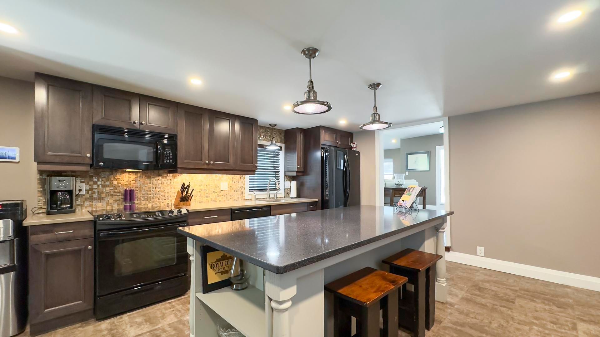 • Updated kitchen with quartz countertops and large center island for easy entertaining.