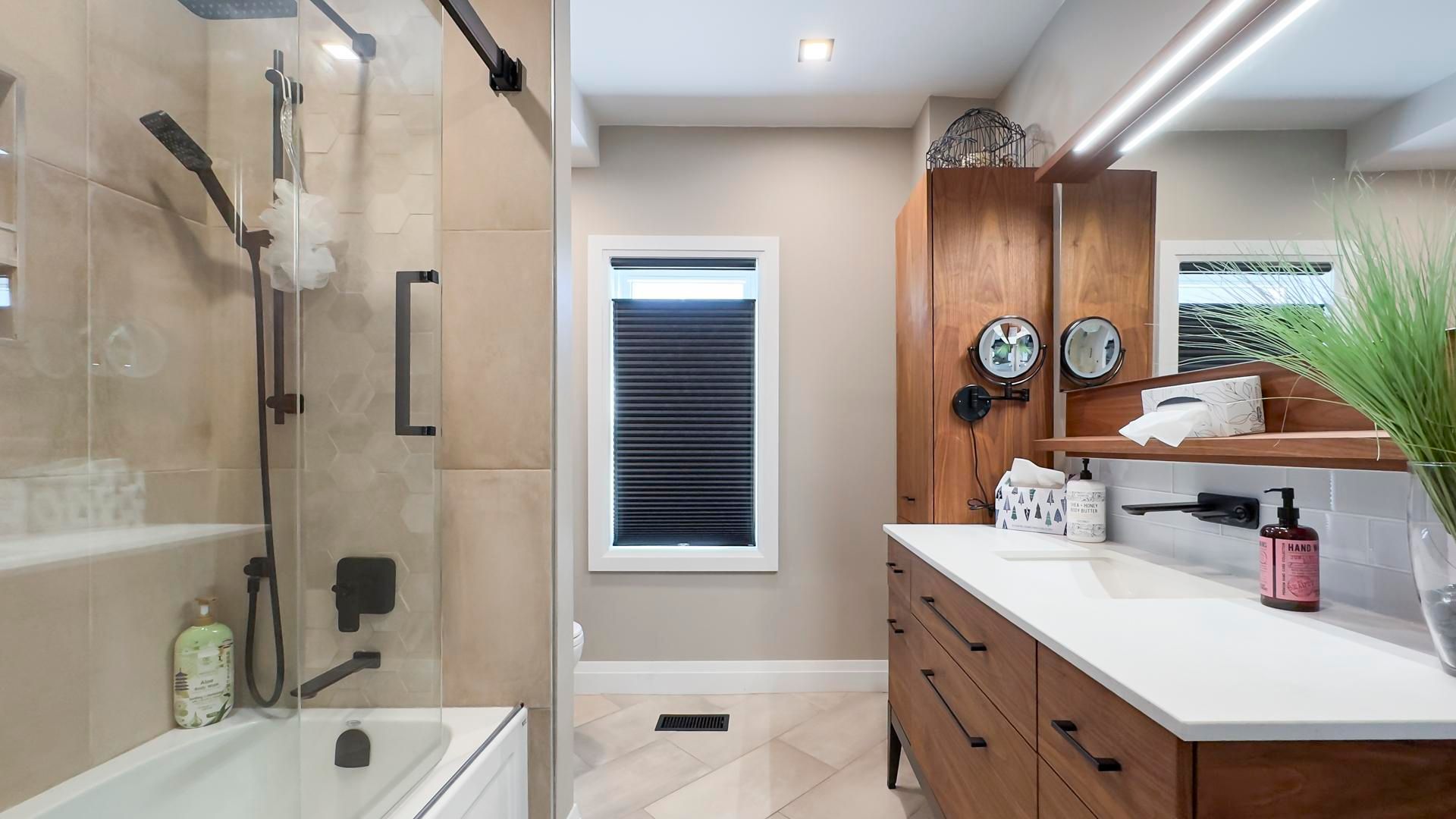 • Main floor bathroom features heated floors for a spa-like feel.