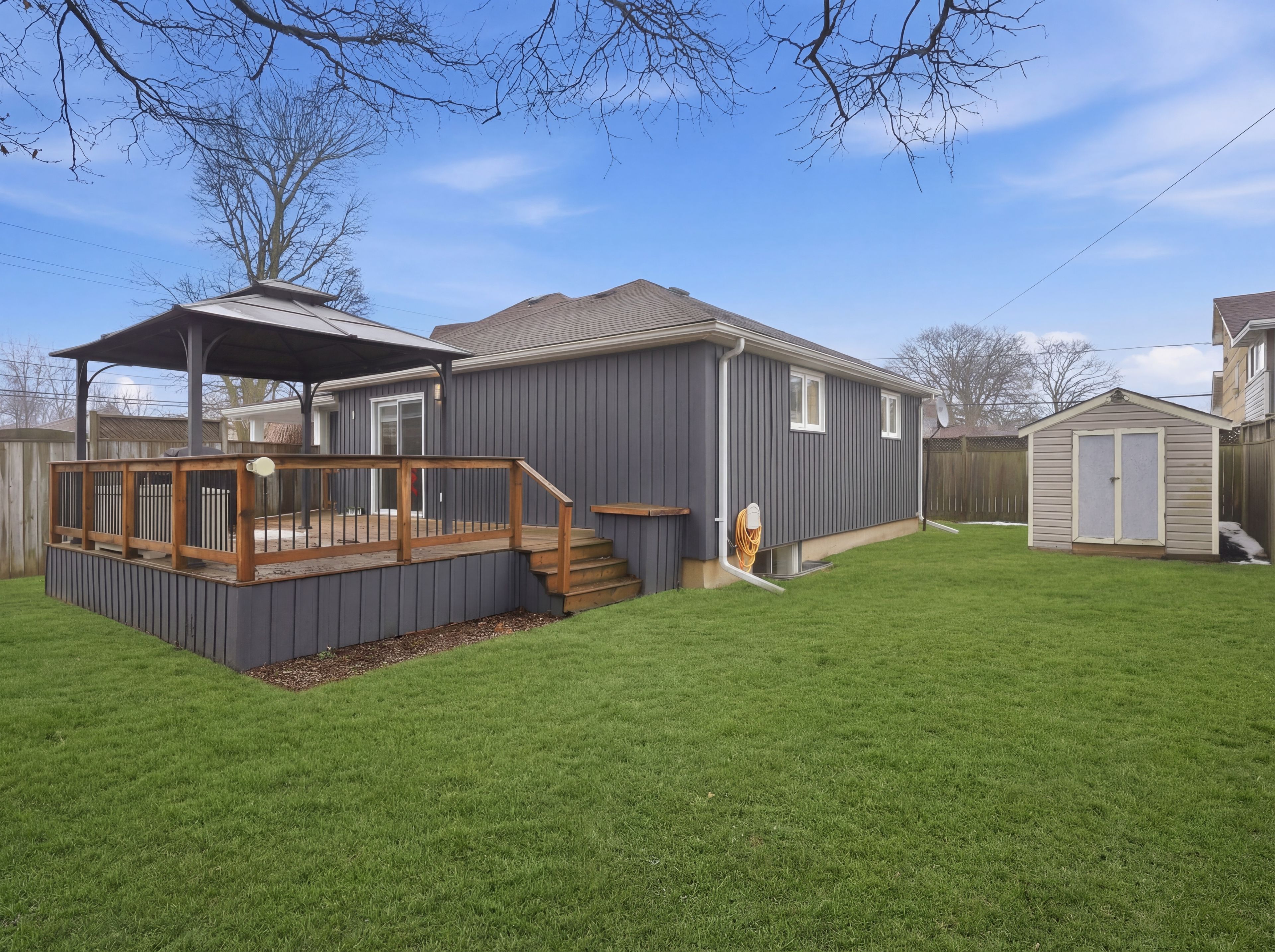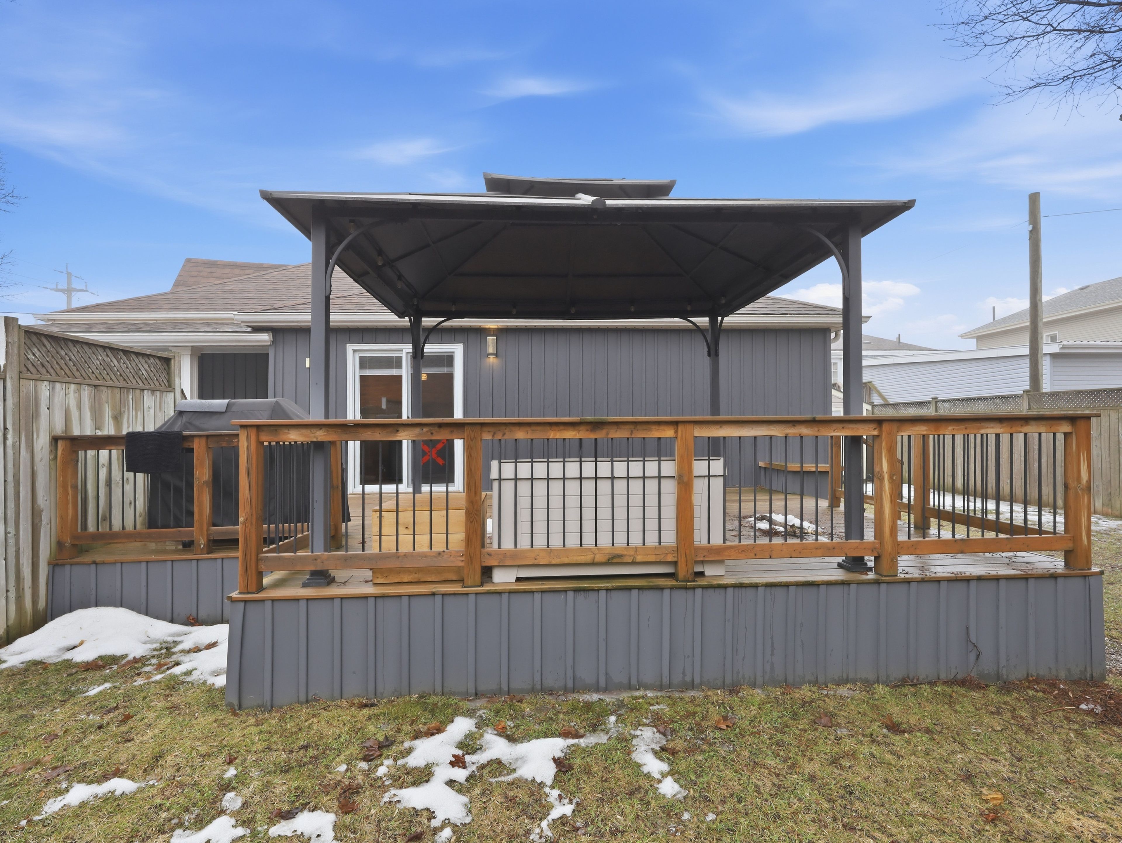 • Fully fenced backyard with a deck and gazebo for entertaining.