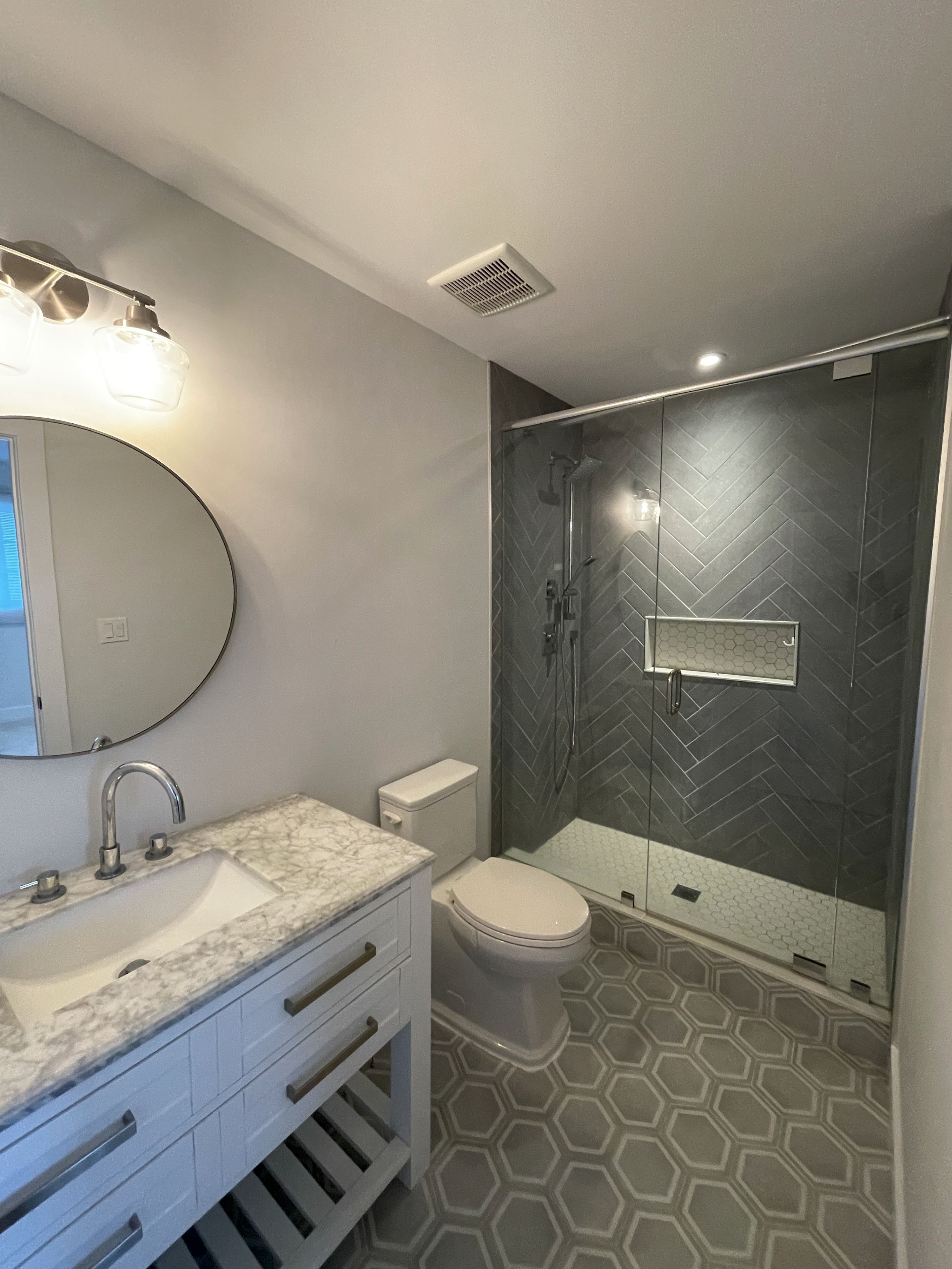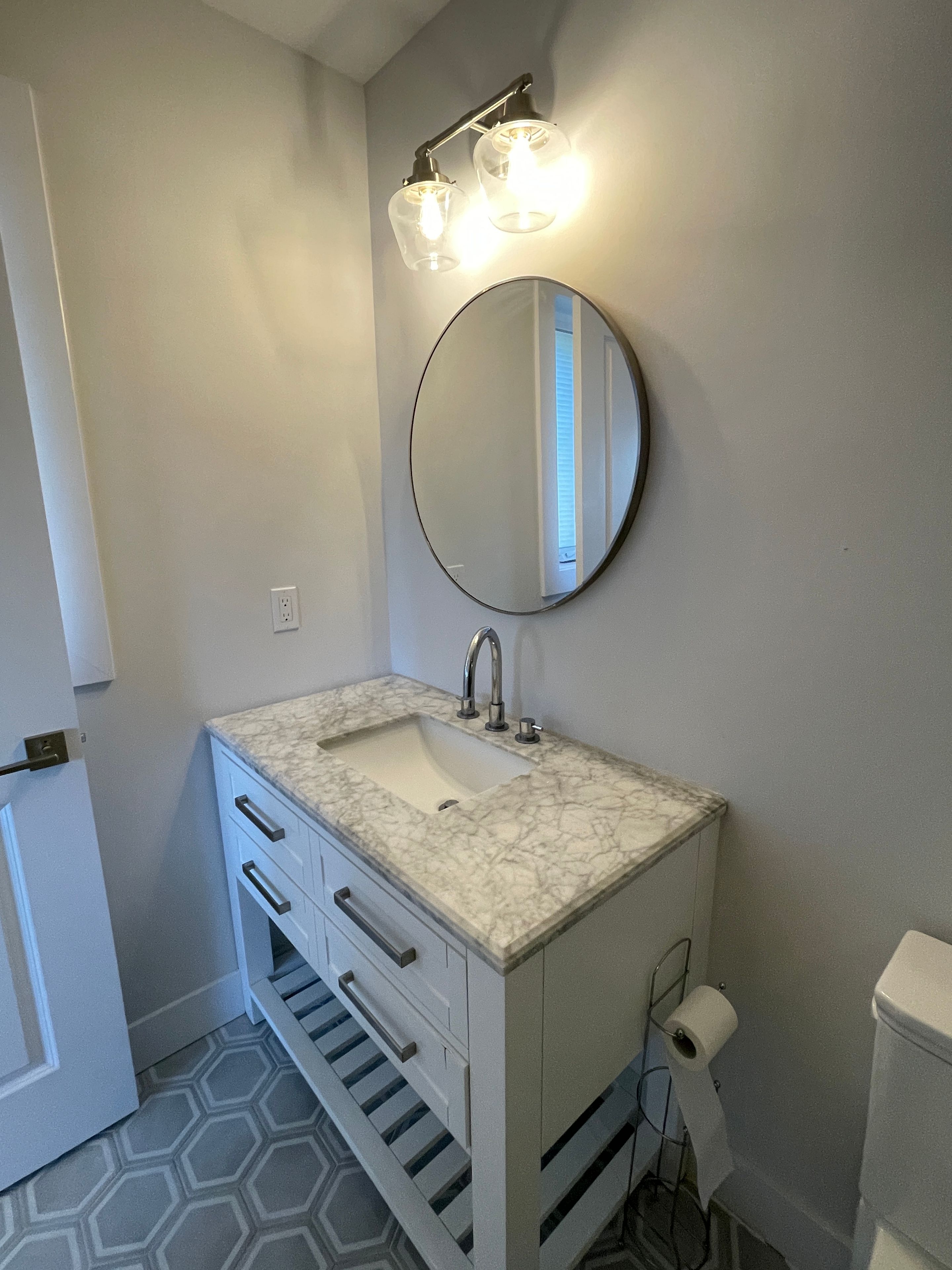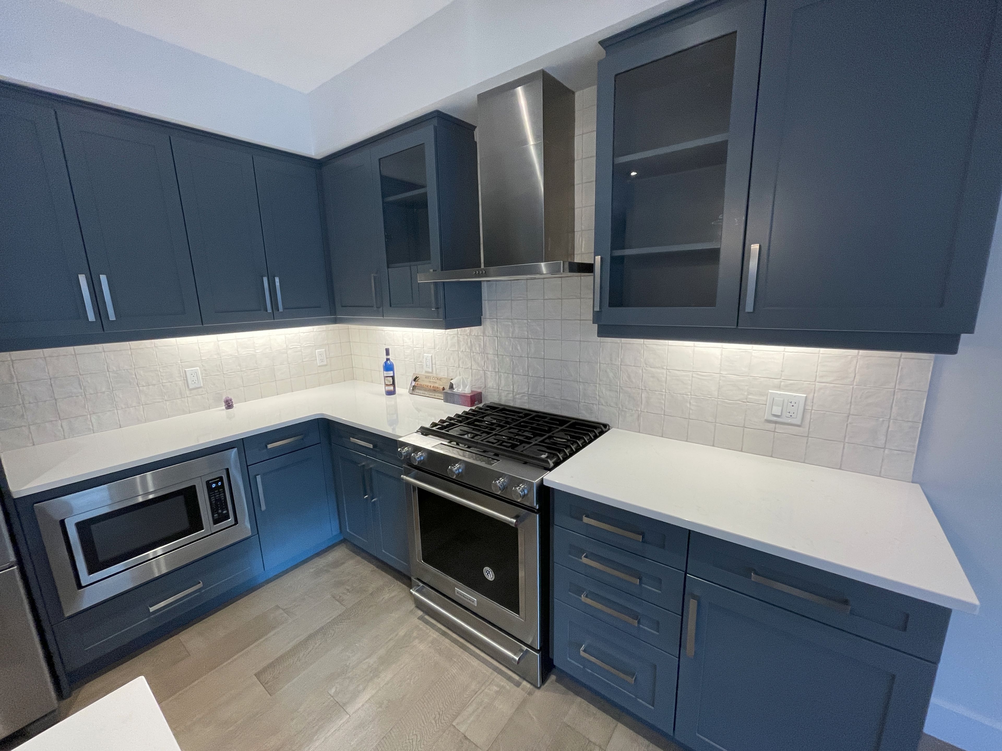 • Upgraded flooring and countertops create a modern feel.