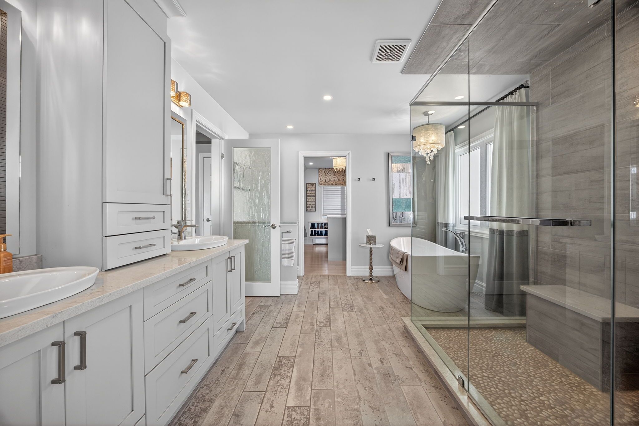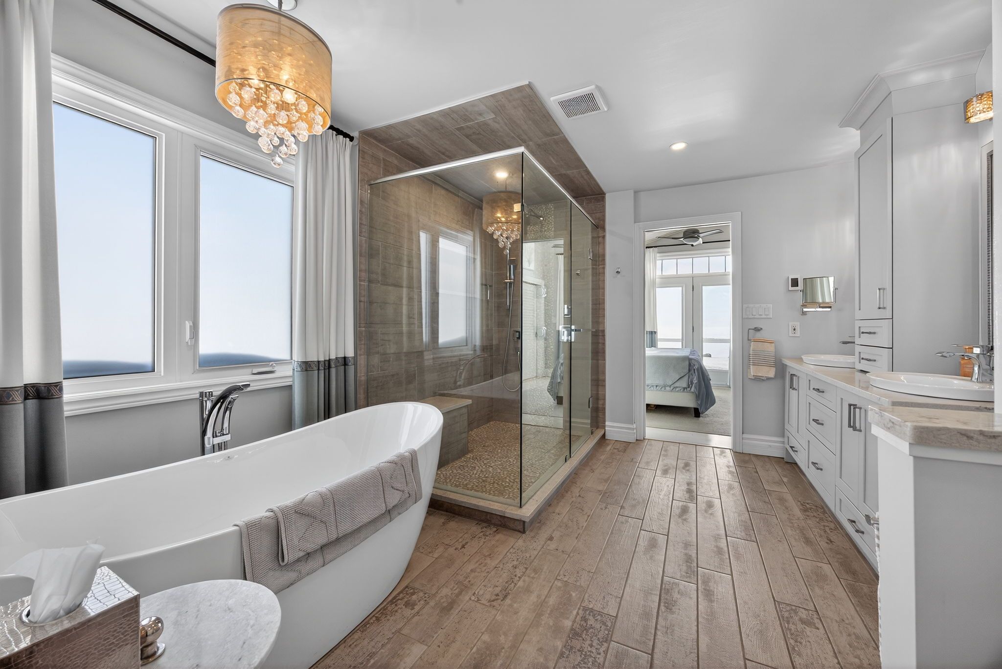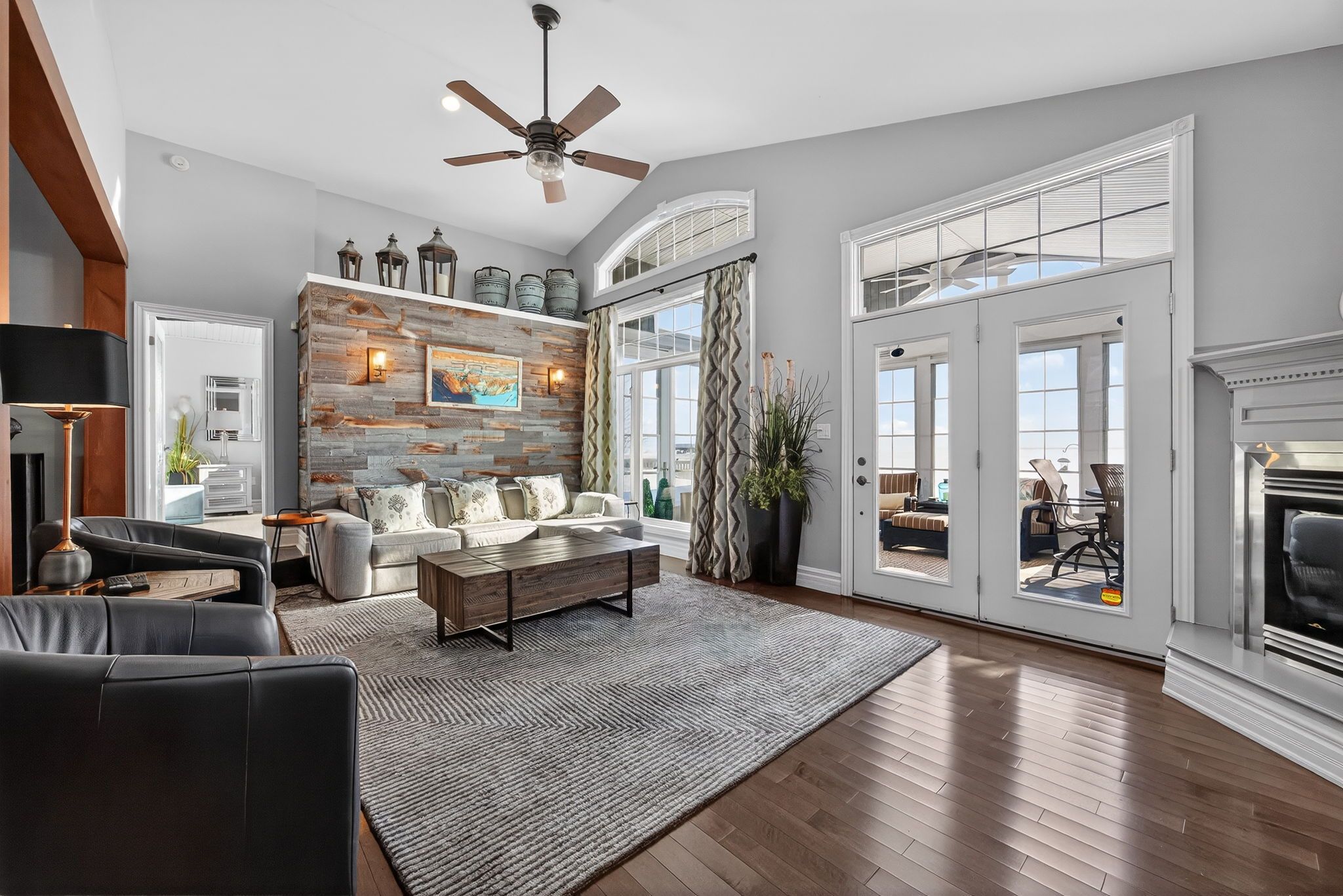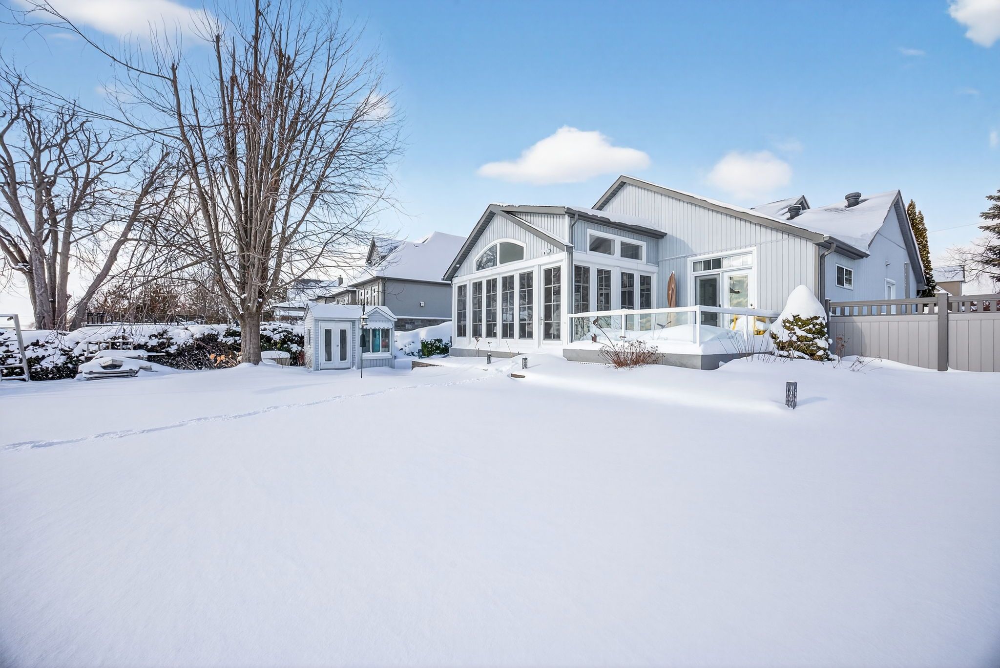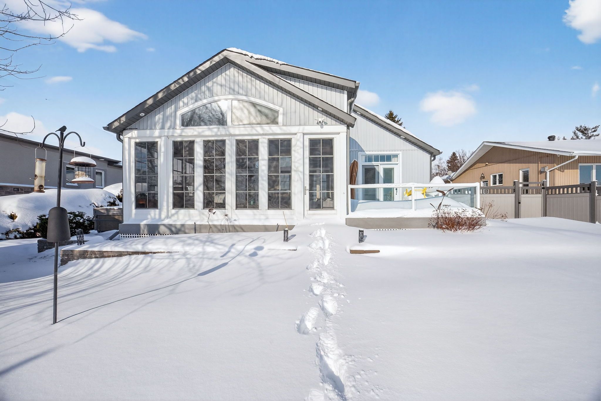 What a treat! Delightful home, meticulously cared for. Custom designed kitchen with top quality cambria counters. Jennair gas range, built in double oven and terrific breakfast bar (ideal for guests while entertaining & chef duties are happening)... That makes me think of the handy wine fridge.! Spacious dining area, suitable for large table & vaulted ceiling adds drama... Flowing beautifully to the sunken living room, with built-in cabinets and cozy gas fireplace. All of this with gorgeous view of the sparkling sun on the water. (isn't that what lakefront living is all about?) main floor primary bedroom offers convenient privacy and another amazing view of the lake... Along with a walkout to the deck and waterfront. The primary ensuite is awesome, heated floors, stand-alone tub, glass shower... Just so nice! Then the large walk-in closet is perfectly positioned and well suited to handle your wardrobe. The main floor laundry and garage entrance make for handy access and convenience. Walk up the hardwood stairs, across the loft view over the great living areas and find a private bedroom area, with it's own 4pc ensuite (heated floors, no less). The waterfront is easy access, gently sloping with a terrific dock system (composite surface) approx 60ft long. Now, you can't miss the gracious size and high ceiling in the amazing sun room (very adjustable windows & screens) which can extend your enjoyment so much of the year. The vieto radiant heaters and custom blinds ensure you have all the comfort options you can imagine. All year long you can surely relax in the jacuzzi hot tub, and there are 2 separate gas line hook-ups for bbq etc. Worry free is a good thing, hence the full home generac generator is standing by at your service to ensure no interruptions... Even during that dinner party, or waterfront gathering. Nice!