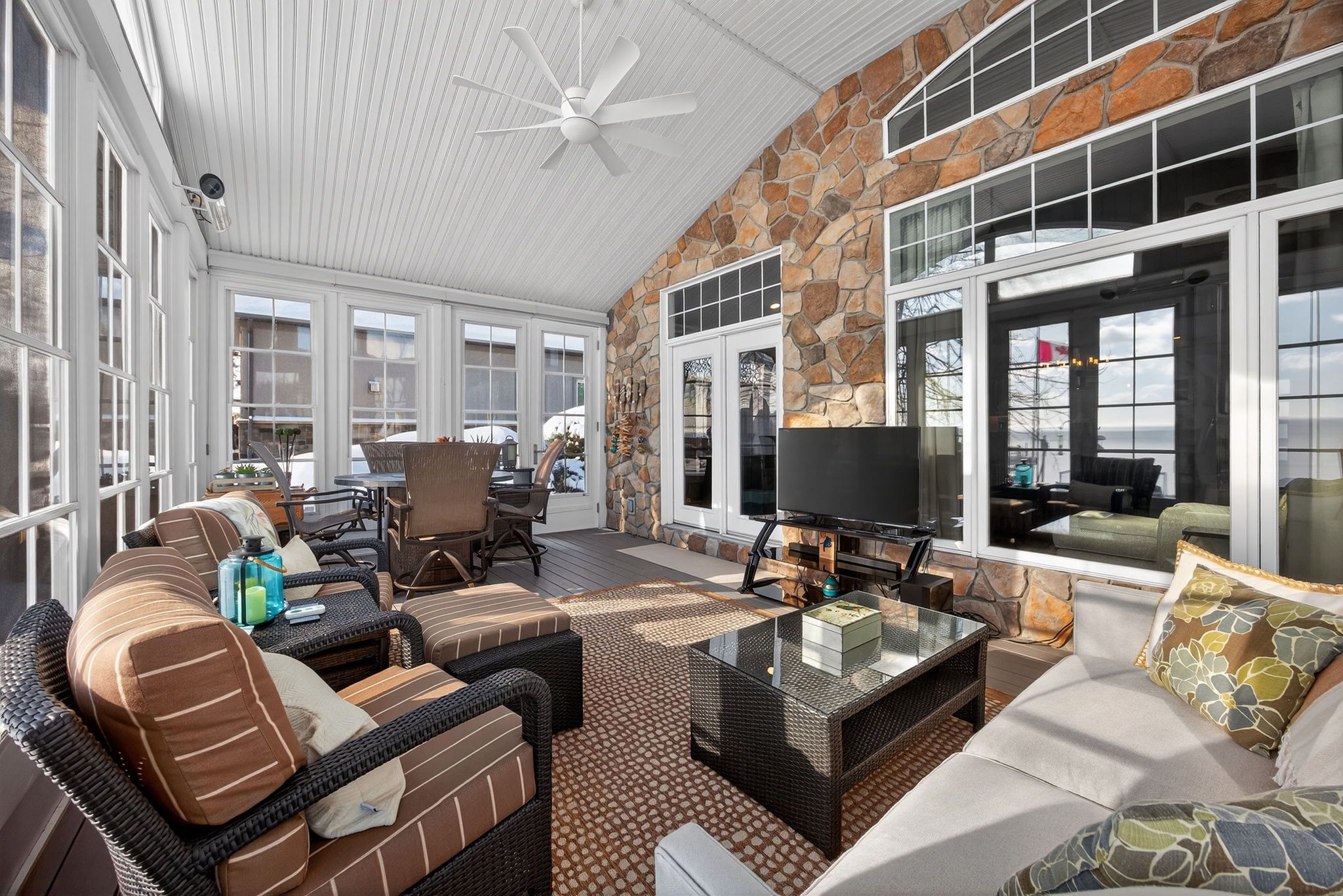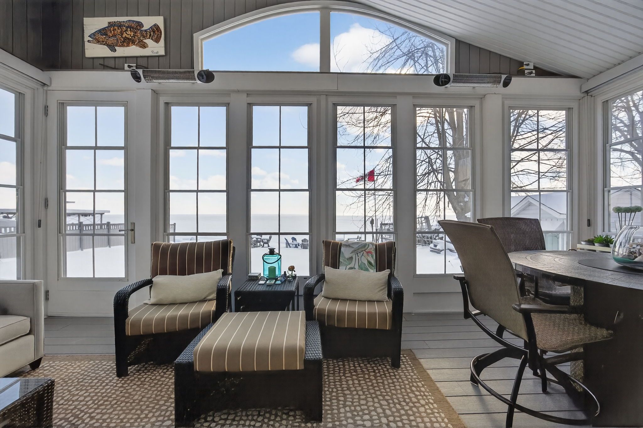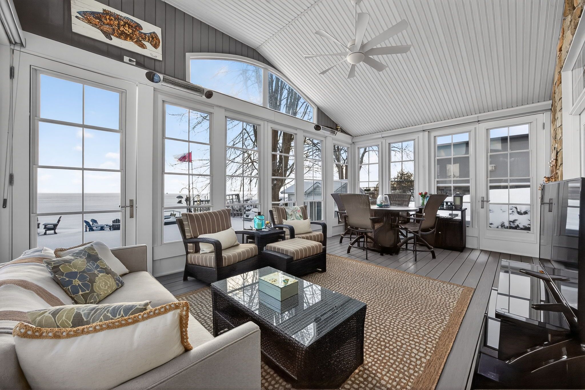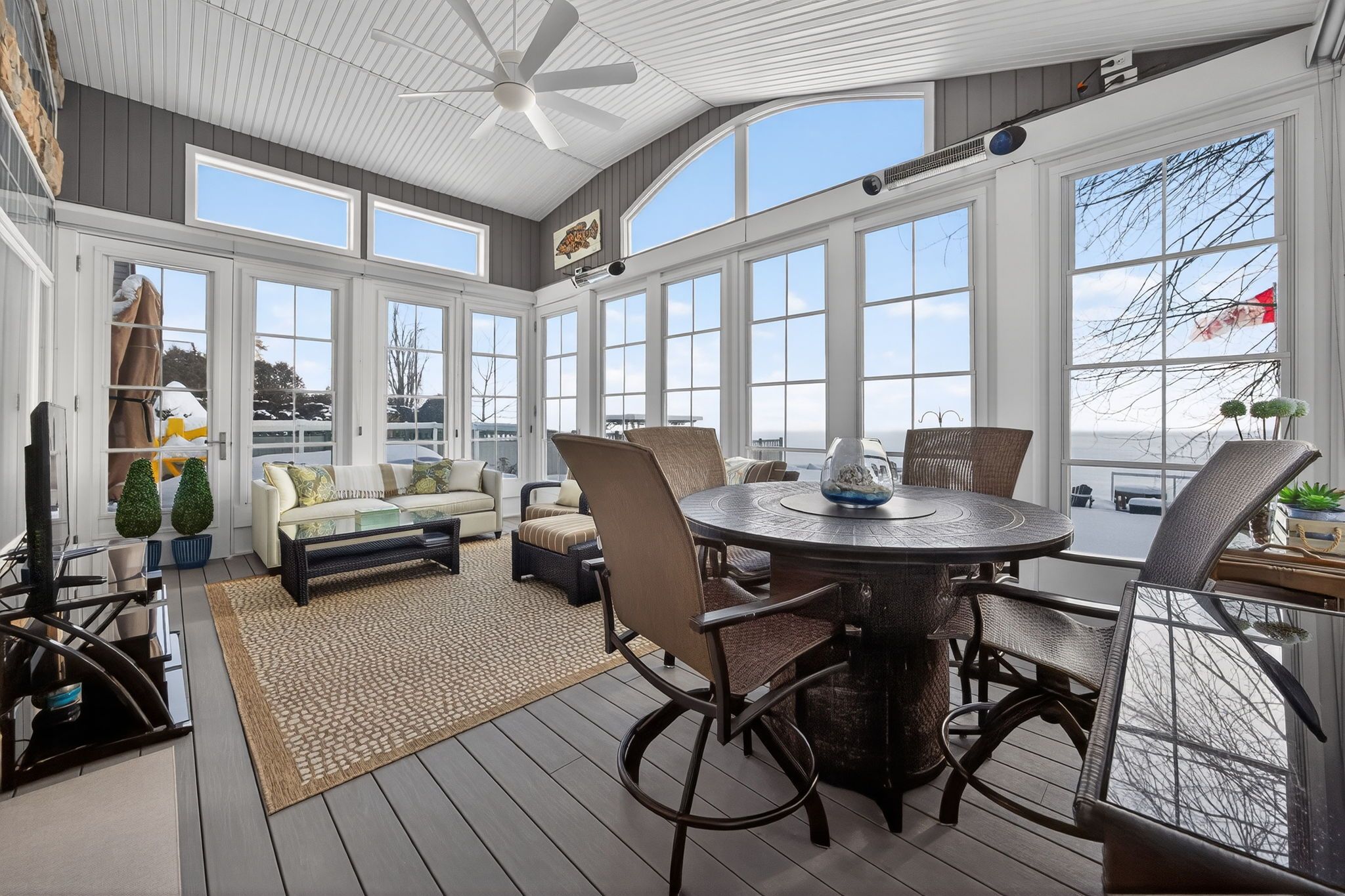 • Large sunroom with adjustable windows for year-round enjoyment and comfort.