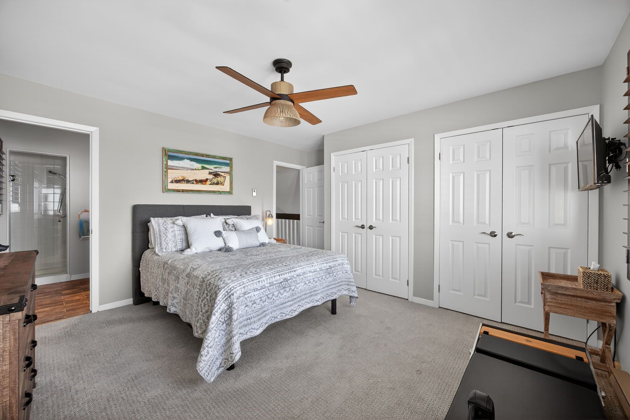 • Custom kitchen with high-quality counters, gas range, and breakfast bar for entertaining.