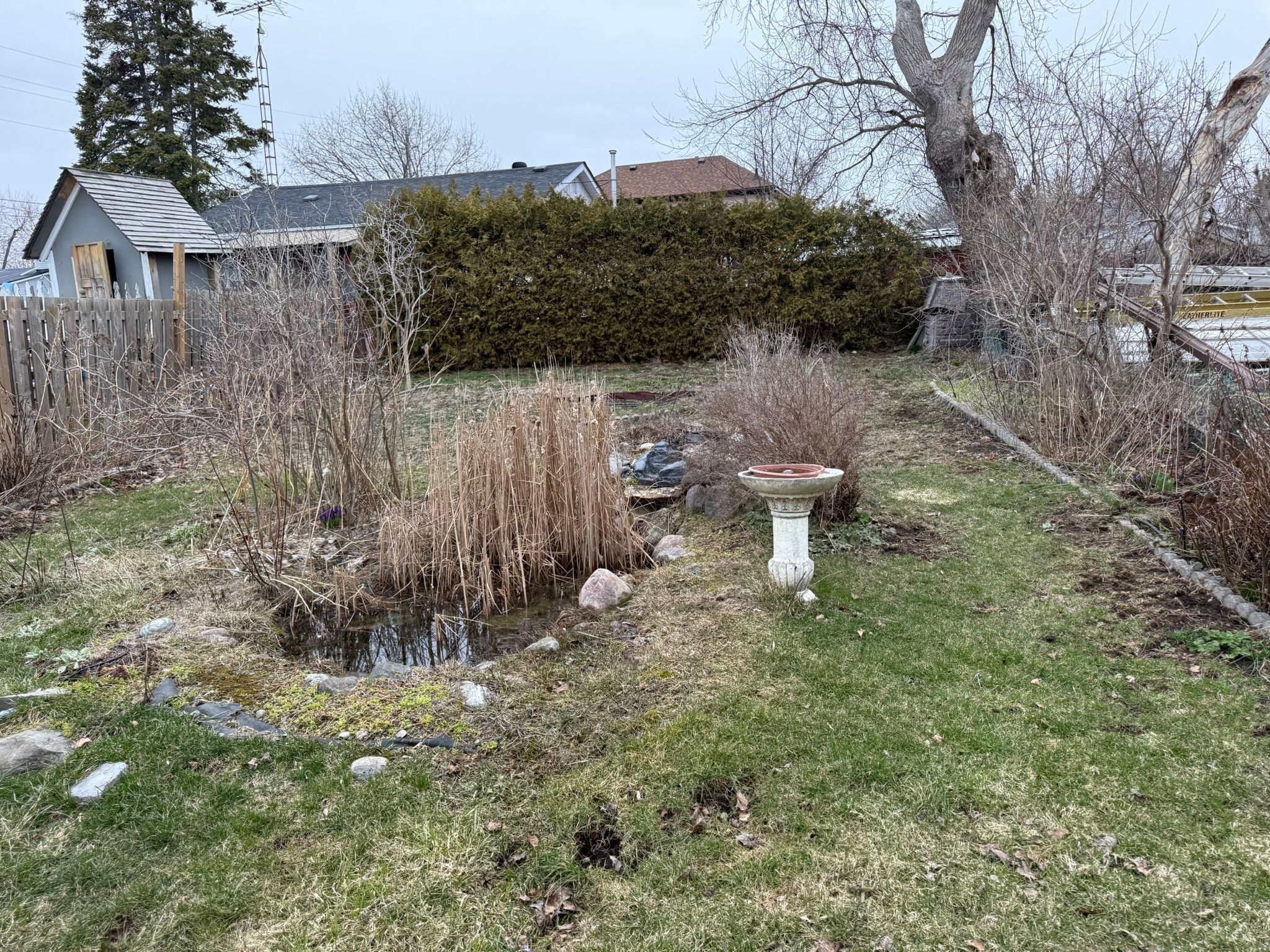 • Backyard ideal for gardening, relaxing, or entertaining with a storage shed.