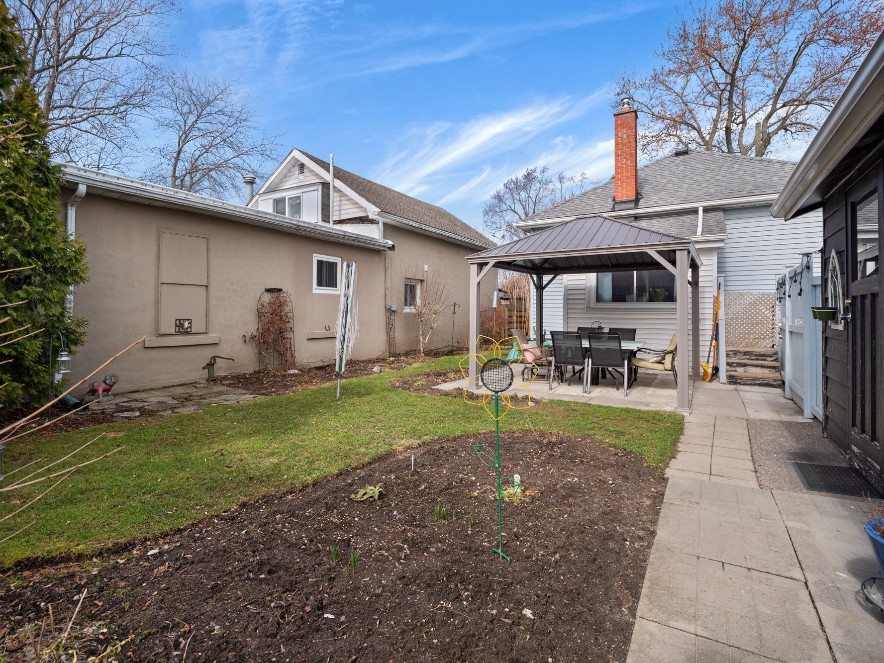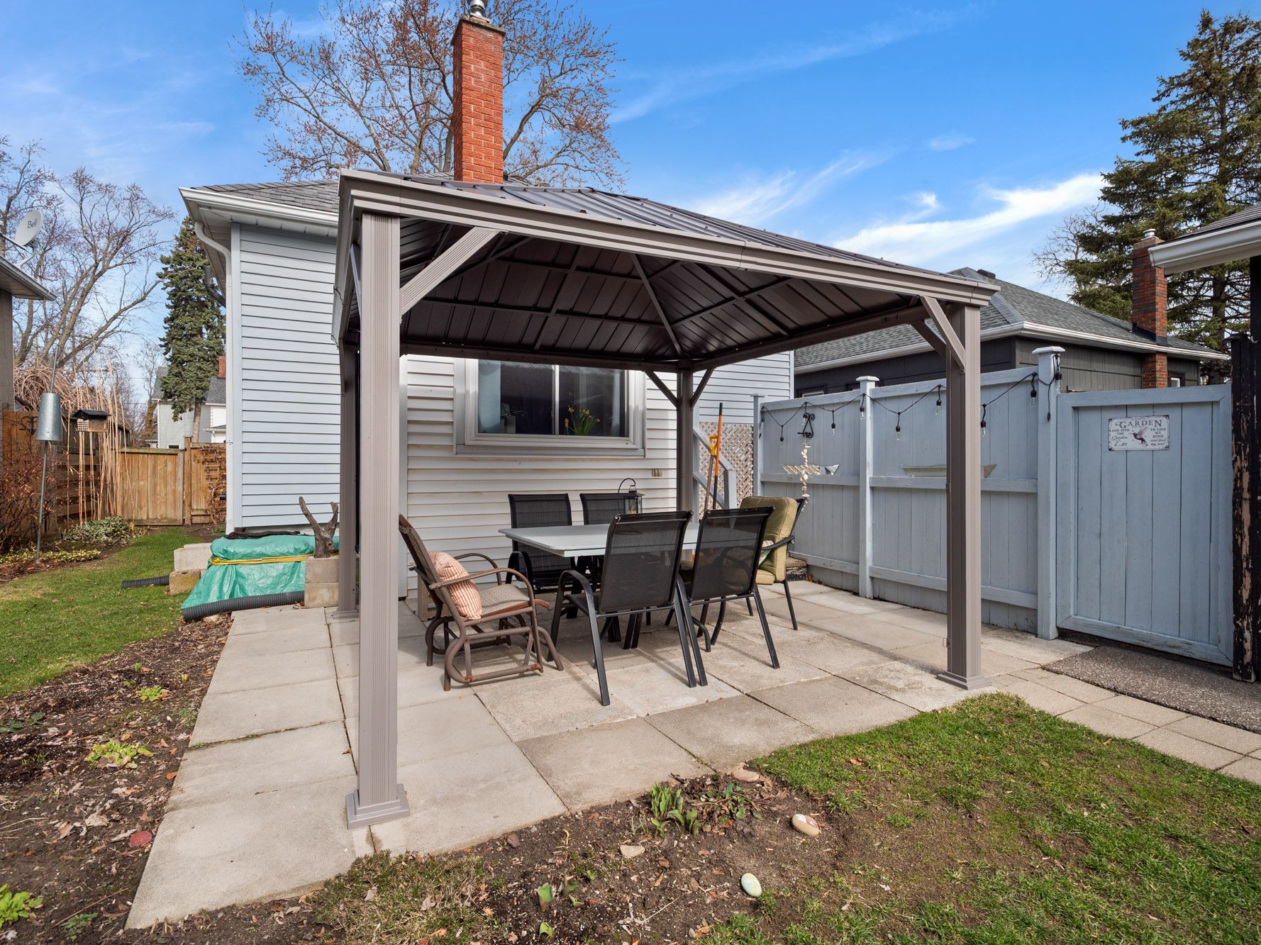 • Backyard oasis featuring a gazebo and patio for outdoor enjoyment.