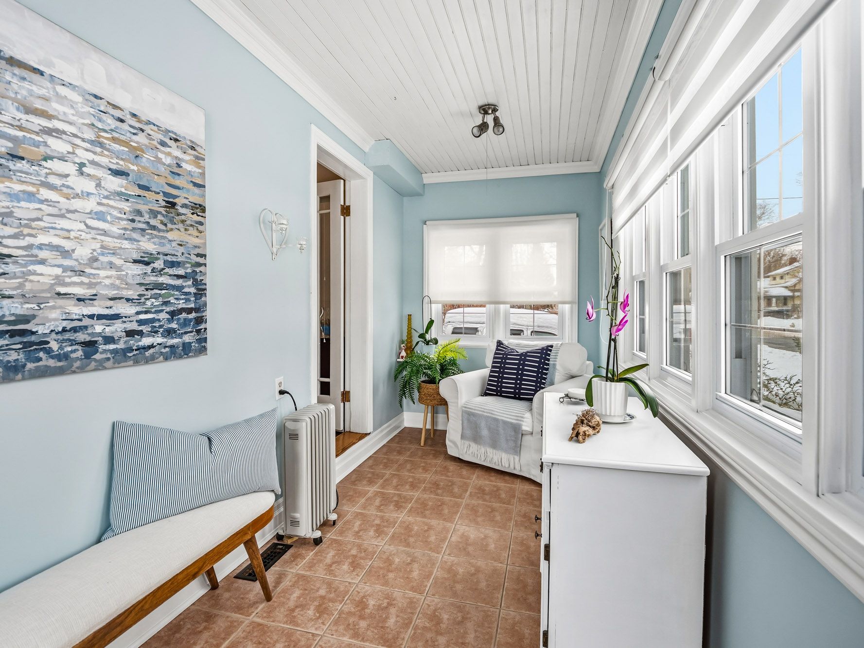 • Bright living and dining areas with natural light during winter.