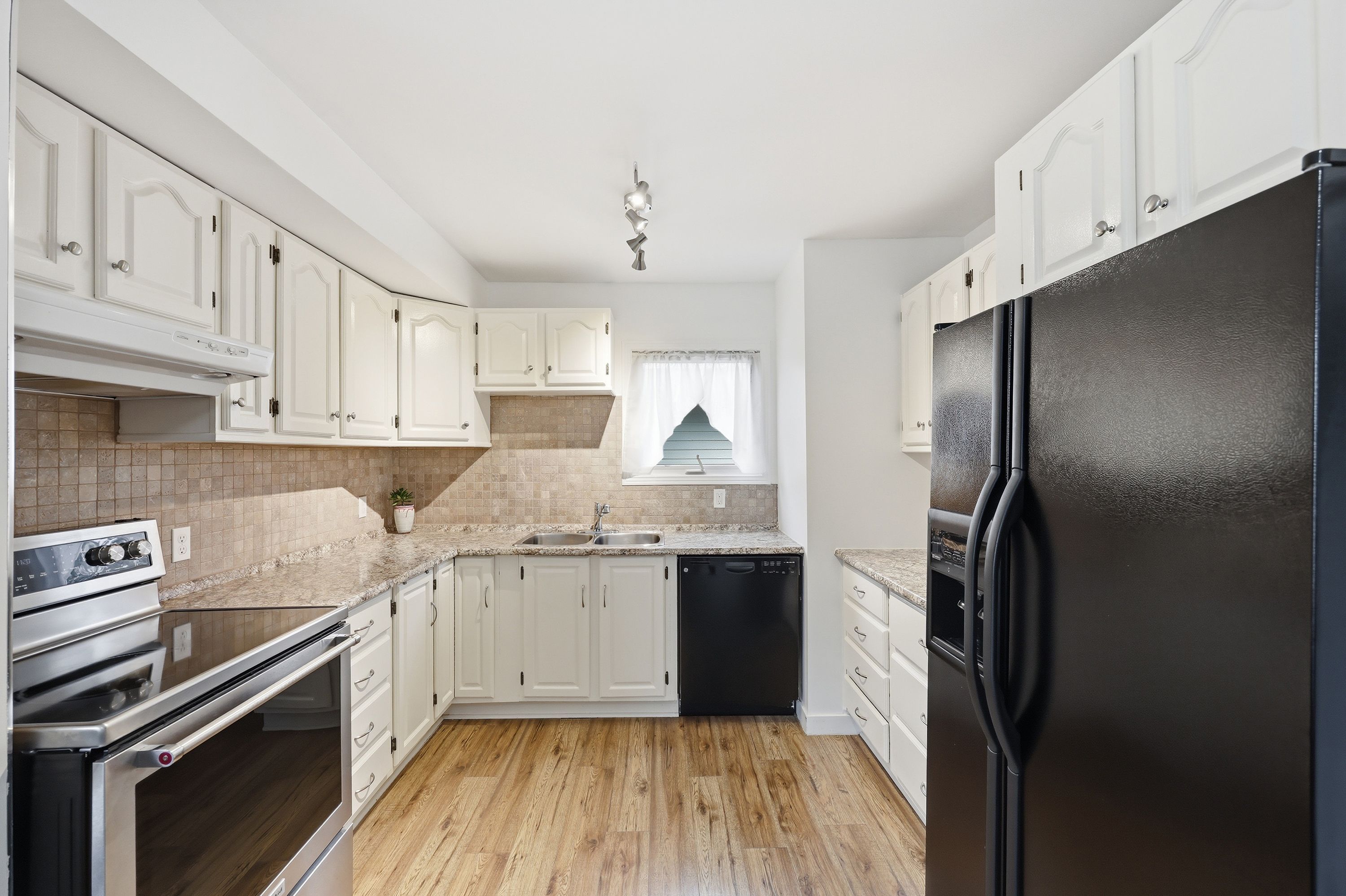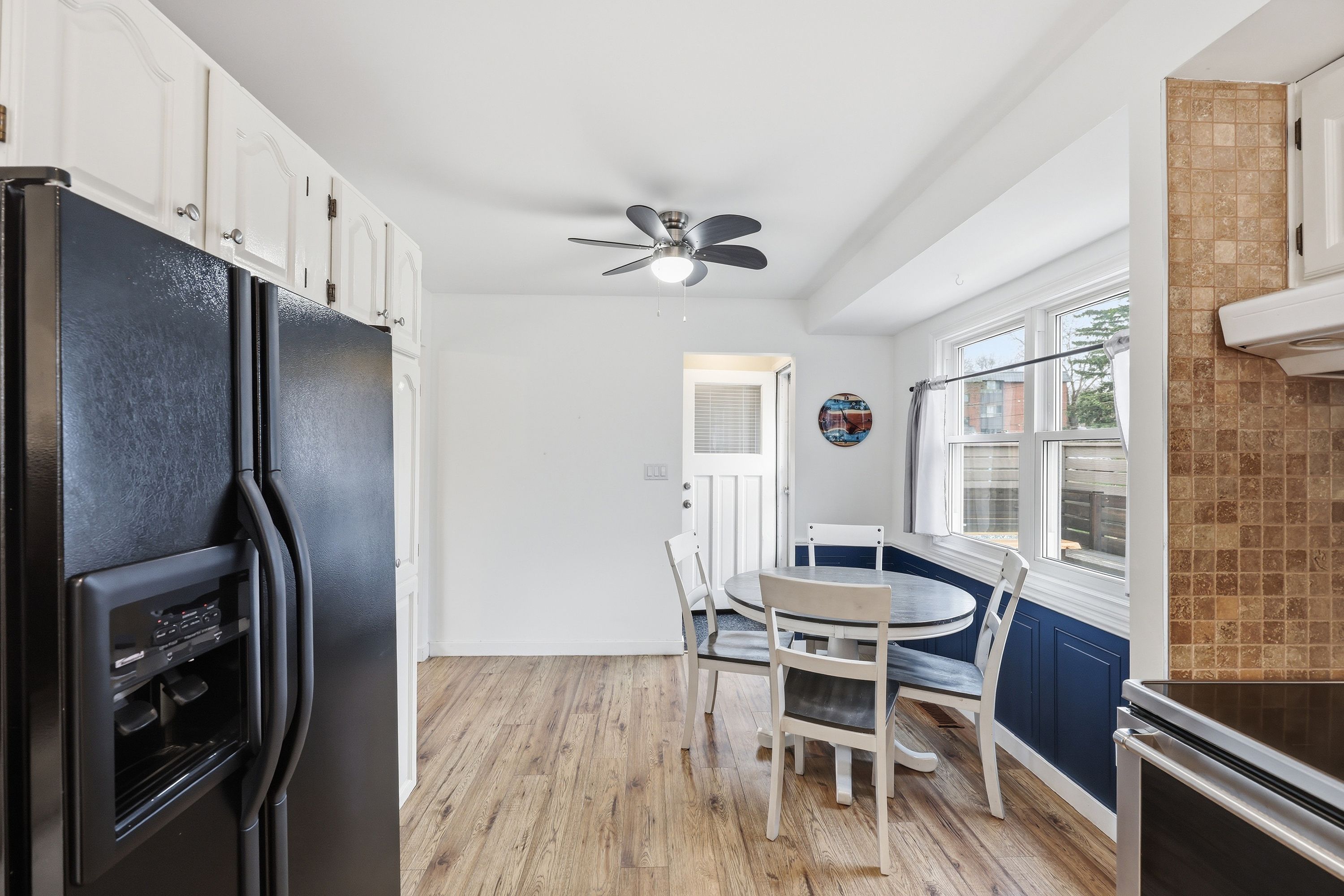 • Spacious eat-in kitchen with stylish backsplash, great for families.