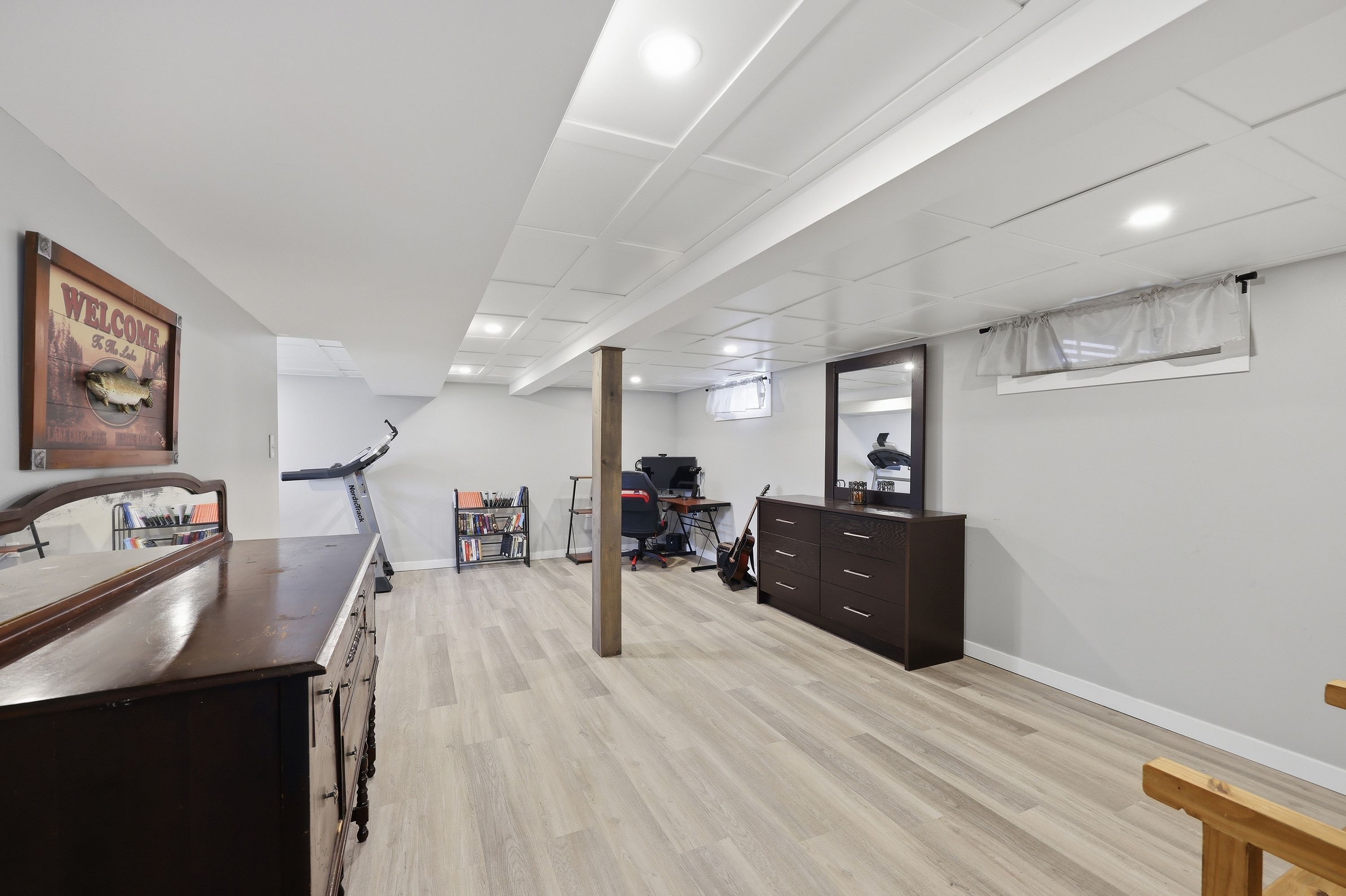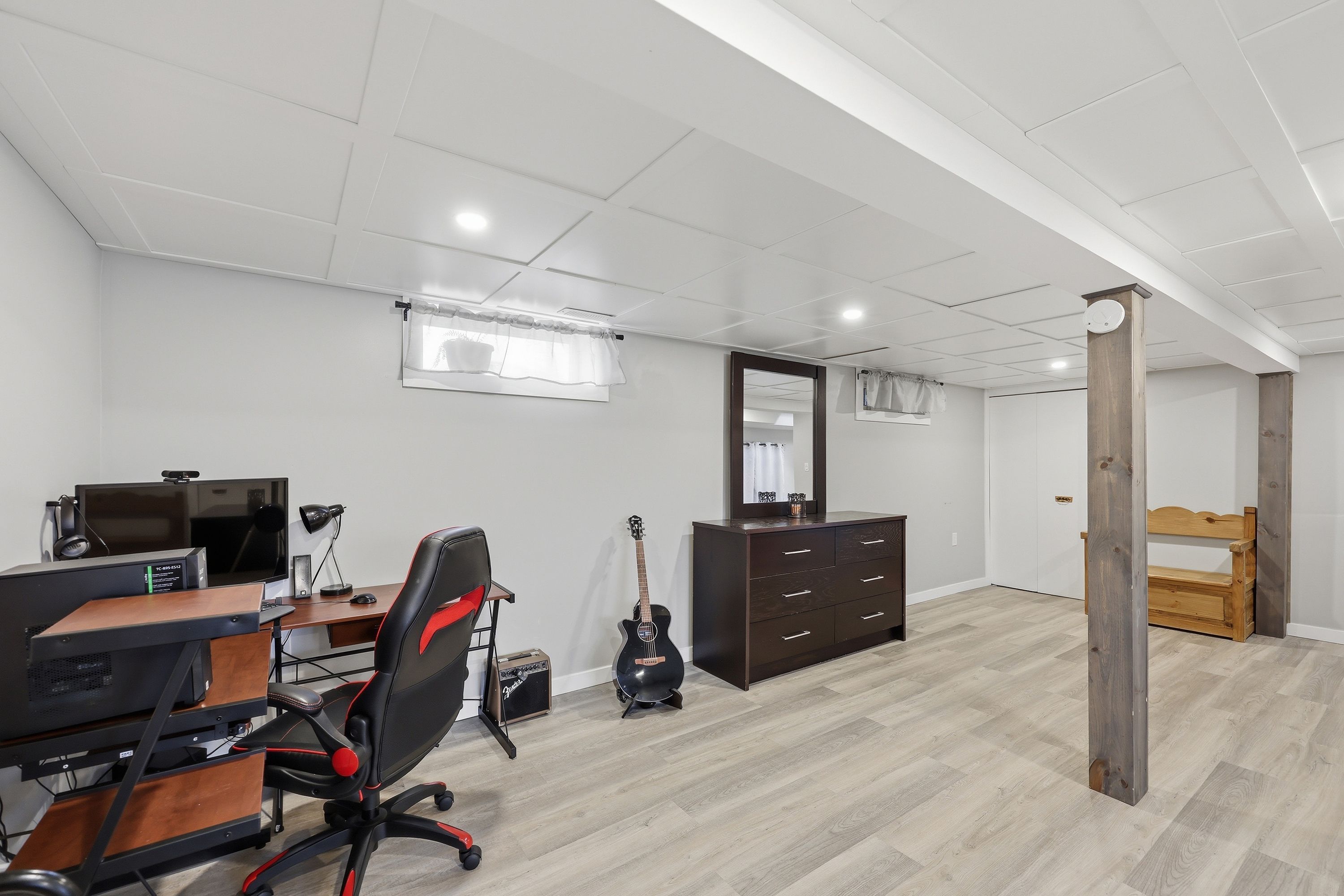 Welcome to 167 manitou crescent, a beautifully maintained and fully updated elevated bungalow in the heart of amherstview. This truly move-in ready home has been thoughtfully refreshed, including fresh paint throughout, creating a bright and modern feel from the moment you step inside. The main level features a welcoming living room, a spacious eat-in kitchen with a stylish backsplash, three well-sized bedrooms, and an updated full bathroom - ideal for families, retirees, or first-time buyers. The fully finished lower level expands your living space with a large rec room, a 3-piece bathroom, and a versatile utility/workshop area adaptable to your needs. Step outside to an impressive 18' x 16' patio, perfect for entertaining or enjoying summer evenings. The fully fenced backyard also offers two storage sheds and garden beds, creating a functional and inviting outdoor space. The extended driveway accommodates up to six vehicles - a rare and valuable feature. With numerous updates already completed like roof, eaves, facia, soffit, windows, furnace, air conditioning, this home offers peace of mind and exceptional value. Located just a short walk to parks, schools, and the amherstview community centre, this is a fantastic opportunity to own a turnkey home in a welcoming, family-friendly community.