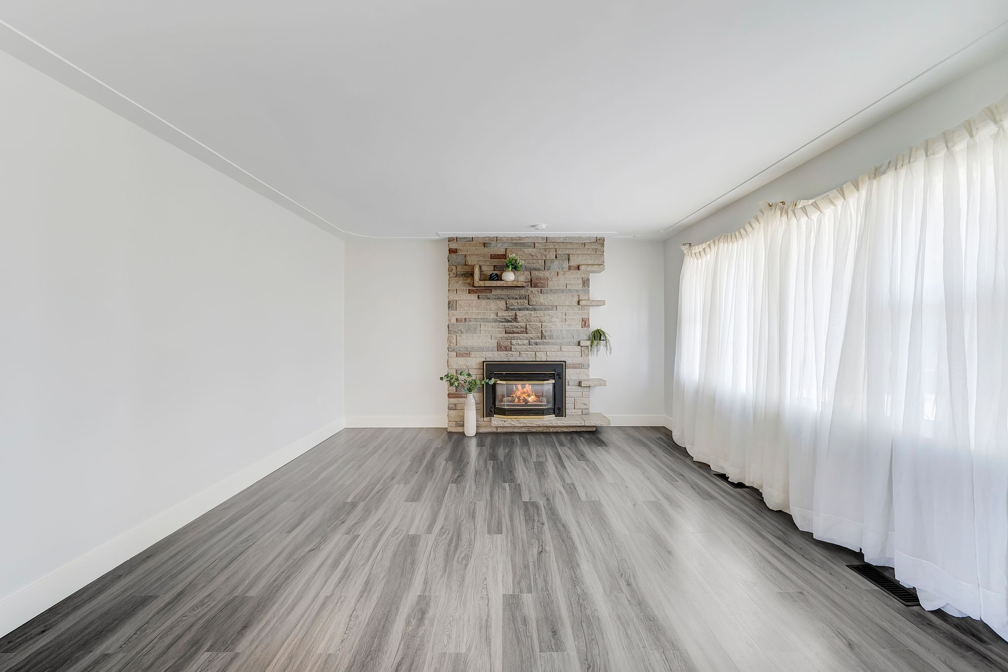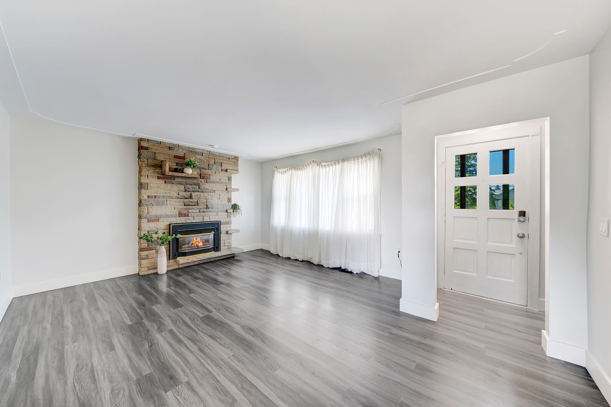 • Large living room with a brick fireplace for cozy gatherings.