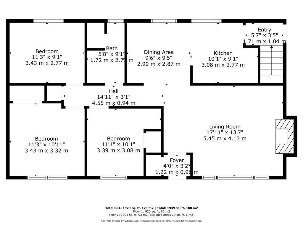 • Large living room with a classic brick fireplace for comfort.