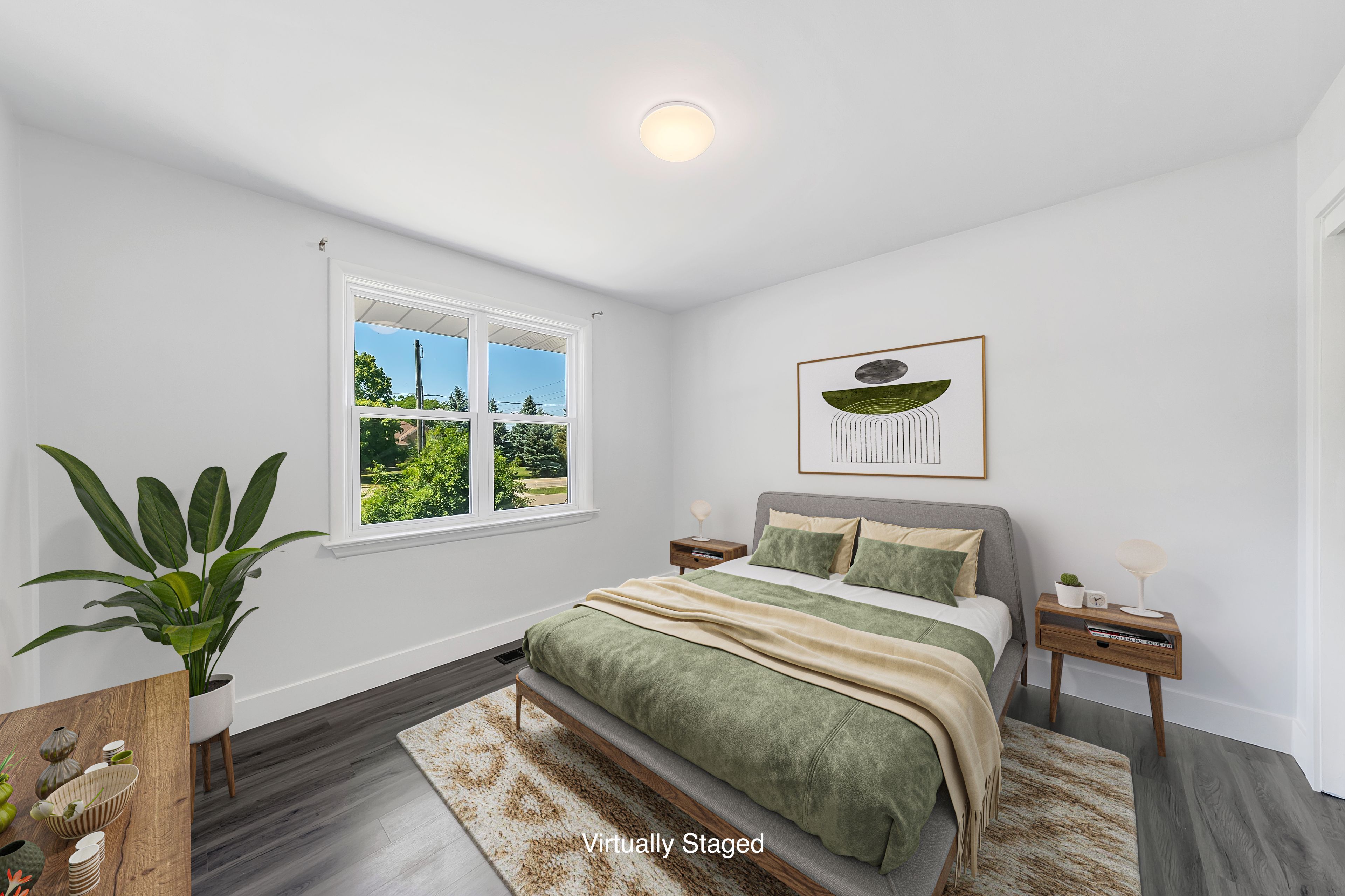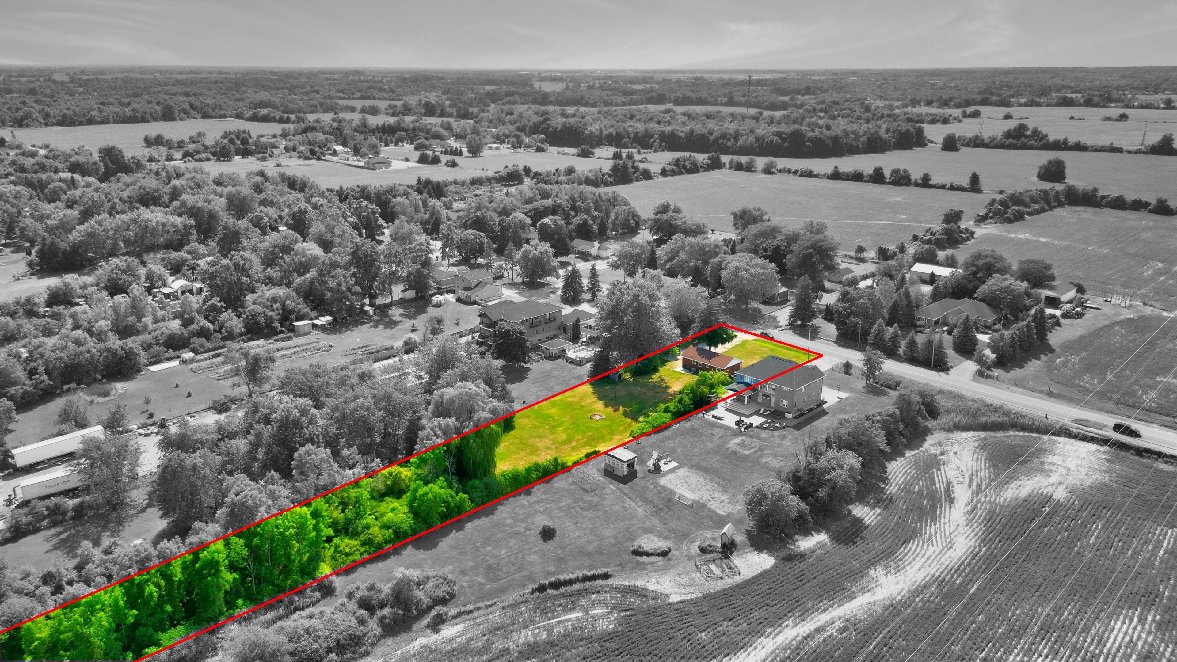 Welcome to your private retreat just seconds from city conveniences! Set on a beautifully treed 1. 4-acre lot, this all-brick bungalow offers the perfect blend of peaceful country living and urban access. Surrounded by mature trees, this home provides a serene setting that feels miles away, while still being close to everything you need. The main floor features a modern kitchen, a bright and spacious dining area, and a large living room anchored by a stunning brick fireplace. With three generous bedrooms and a 4pc bathroom, there's plenty of room for comfortable family living. Downstairs, the lower level is ideal for extended family and features a shared laundry area, two additional bedrooms, a second 4pc bathroom, a full kitchen, and a bright open-concept living/dining area complete with an egress window. The home includes two separate entrances, offering added flexibility and convenience. Whether you're seeking space to grow, room for guests, or a multigenerational setup, this property checks all the boxes. Don't miss this rare opportunity to enjoy the best of both worlds, nature and convenience.