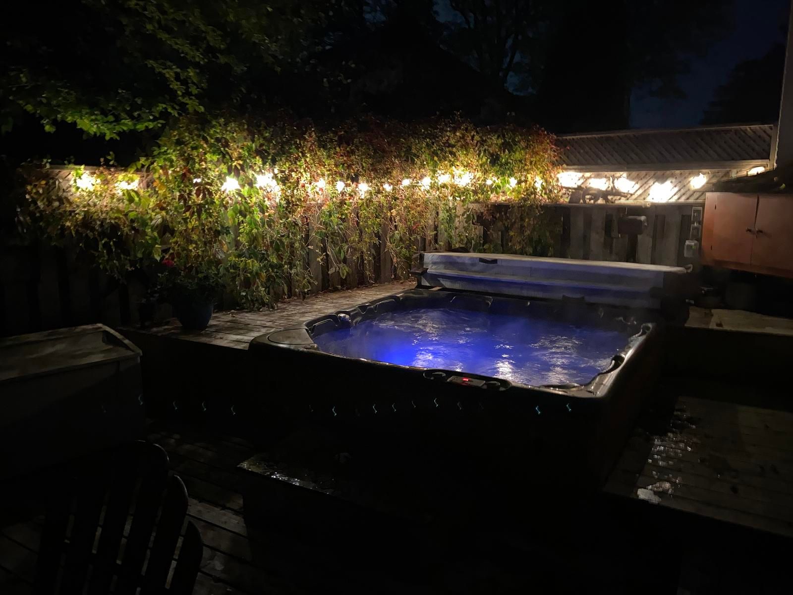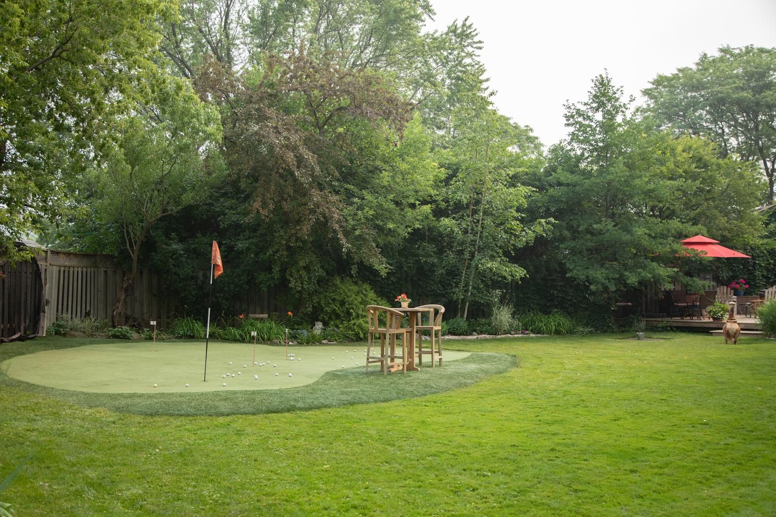 • Extensive outdoor features include decking, hot tub, pond, and golf green.