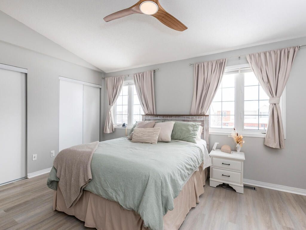 • Master bedroom offers cathedral ceilings, wall of closets, and luxurious bath.