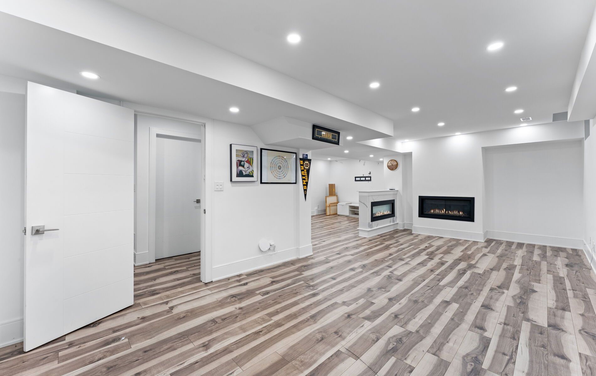 • Finished lower level features gym, chill areas, and extra bedrooms.