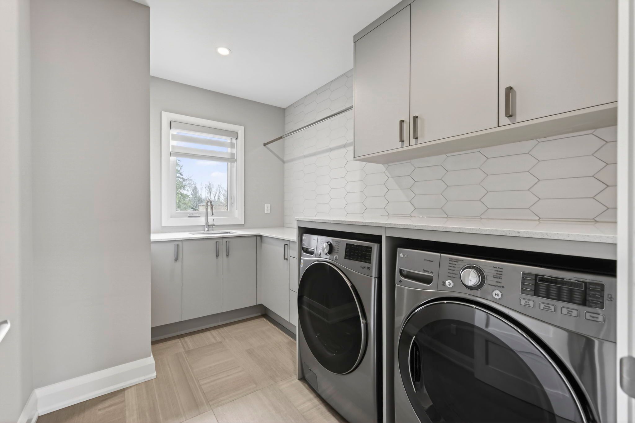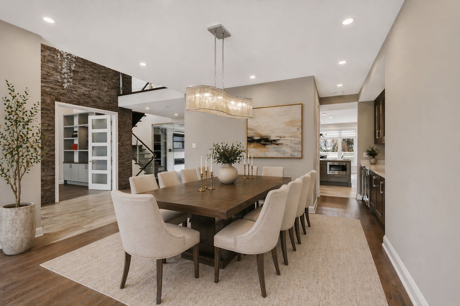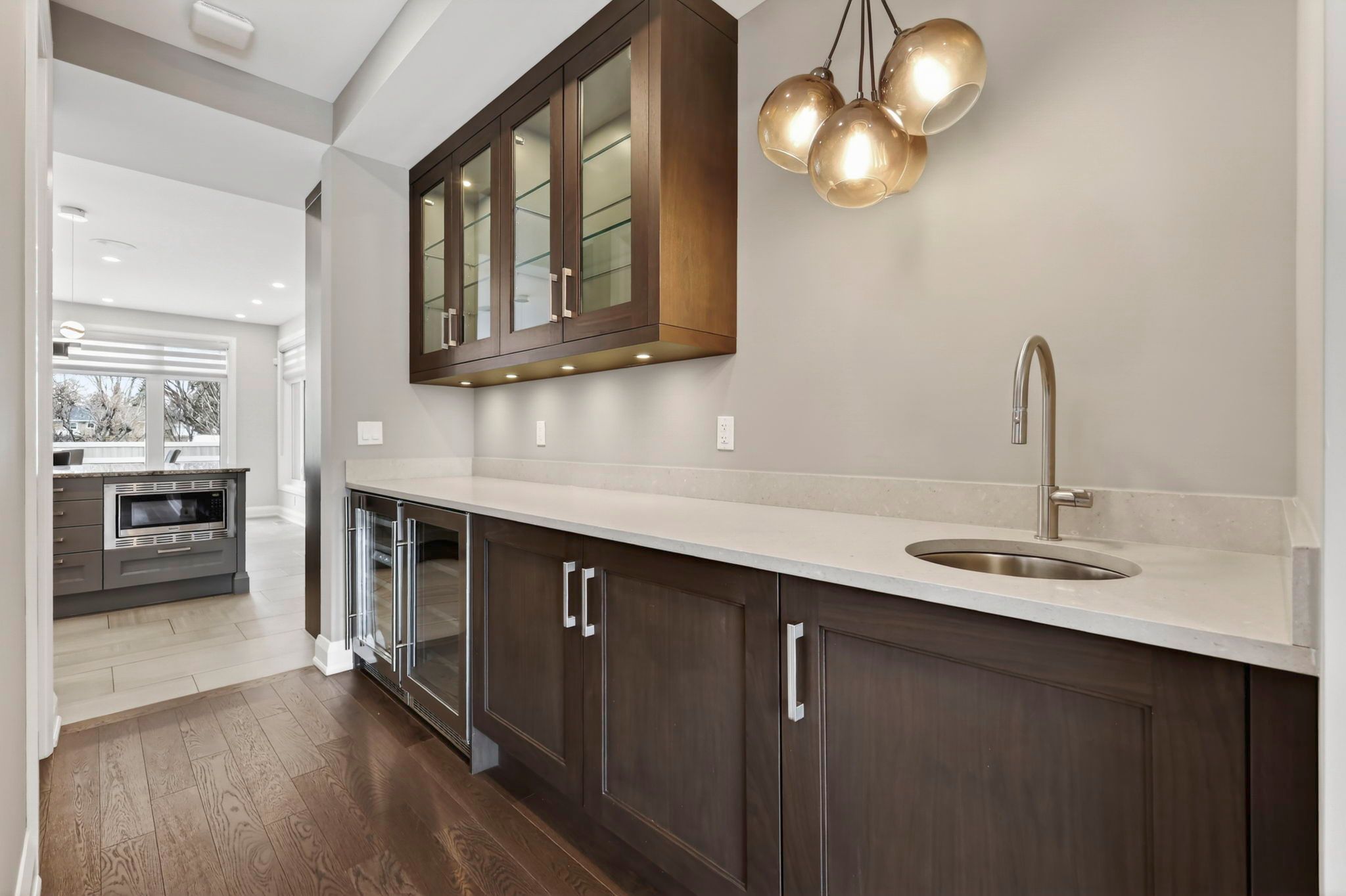 • Chef-inspired kitchen with quartz countertops and large centre island.