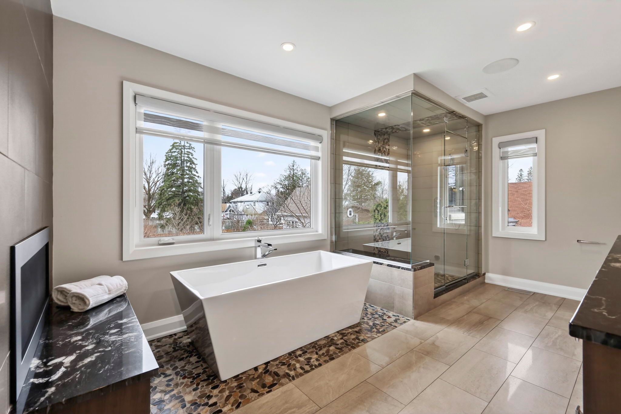 • Luxurious primary suite with a dual-sided fireplace and spa-like ensuite.