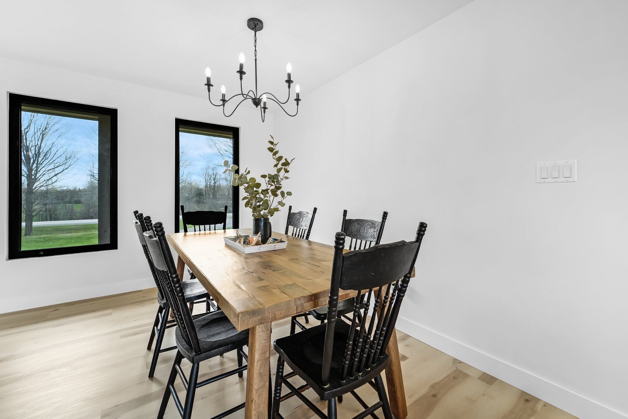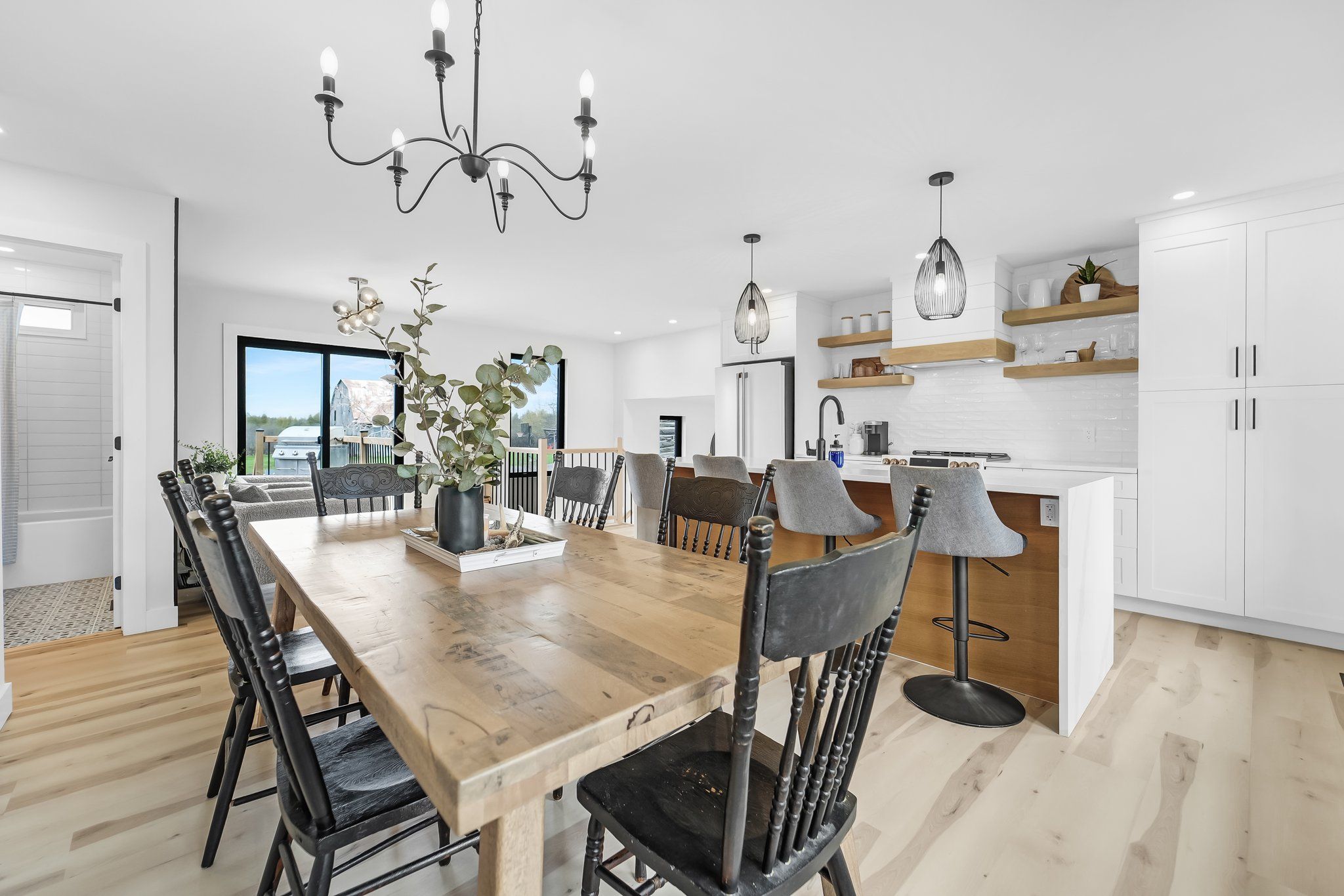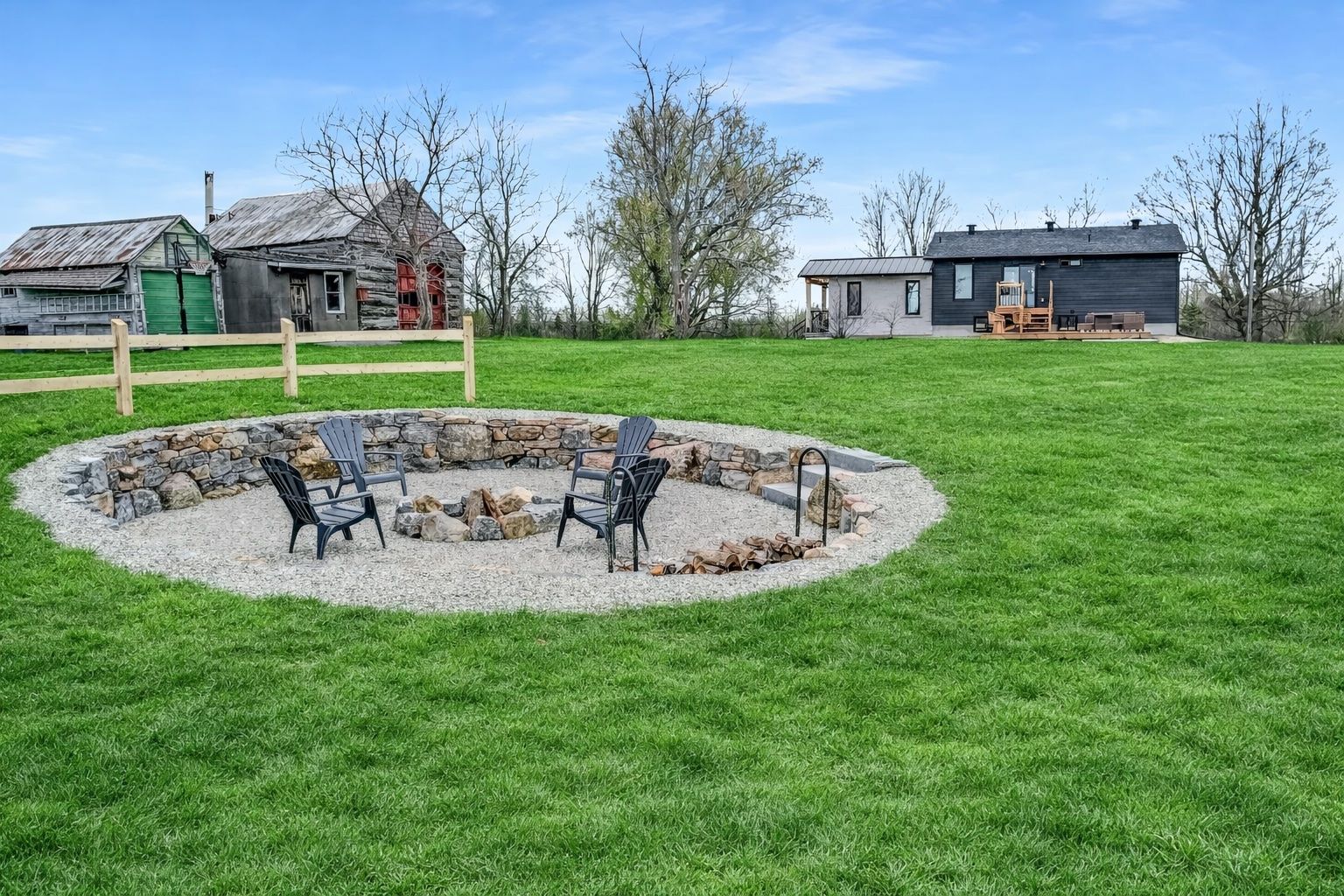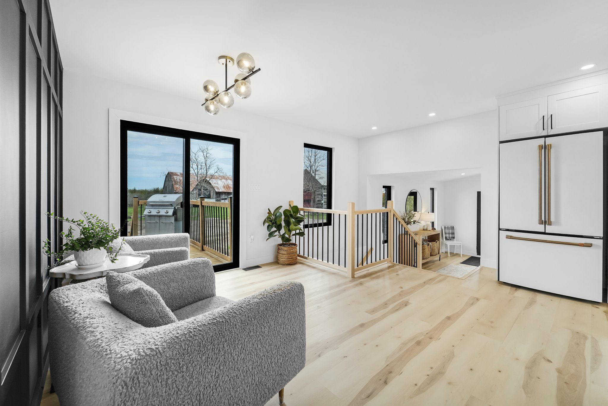 Set on 29 breathtaking acres, this extensively renovated and rebuilt home is a dream come true for hobby farm enthusiasts and families craving space to roam, explore, and play. The newly redesigned 2+1 bedroom home is filled with natural light, highlighted by sleek black-framed windows throughout. The upper level features a thoughtfully designed layout with a beautiful kitchen showcasing an oversized quartz island, café appliances, and custom finishes. The above ground lower level is a bright and inviting extension of the home, flooded with natural light from oversized above-grade windows. Feature walls and a built-in bar area add warmth and character, creating an inviting space for family gatherings and entertaining. Step outside to a large new back deck overlooking the expansive property, perfect for watching kids play, animals roam, or simply enjoying peaceful country sunsets. A custom-built fire pit sets the scene for cozy evenings after a day spent outdoors. The detached garage-originally the property's log home-offers a versatile space for workshops, equipment, or hobby projects. With sprawling acreage, established trails, and wide-open clearings, this property is ideal for hobby farming, 4-wheeling, snowmobiling, and outdoor adventures year-round. A newly added driveway leads to a private clearing, perfect for future barns, paddocks, or a second dwelling. The large barn provides excellent storage for equipment, toys, and tools, while winding paths lead through the forest to a charming pond at the back of the property-transforming into a picturesque skating rink in the winter. Mature sugar maple trees along the road offer privacy and stunning curb appeal, completing this rare opportunity to own a property where family memories, outdoor fun, and country living come together beautifully. 24 hr irrevocable on offers.