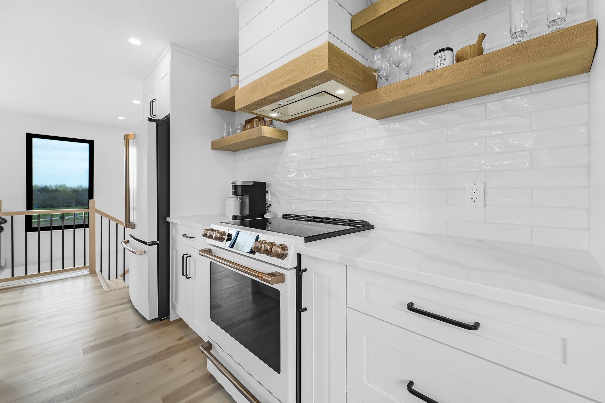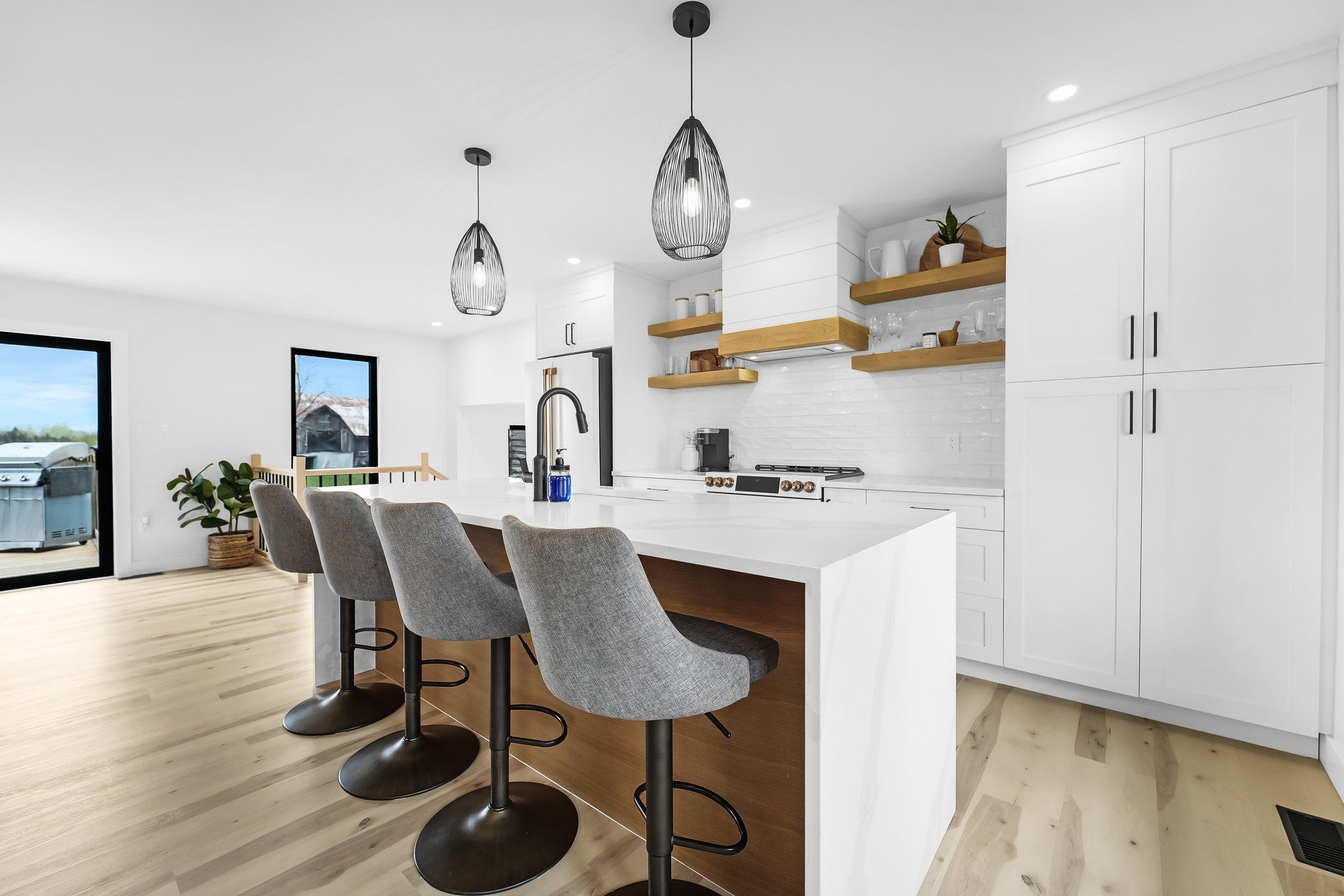 • Spacious kitchen with quartz island and high-end appliances.