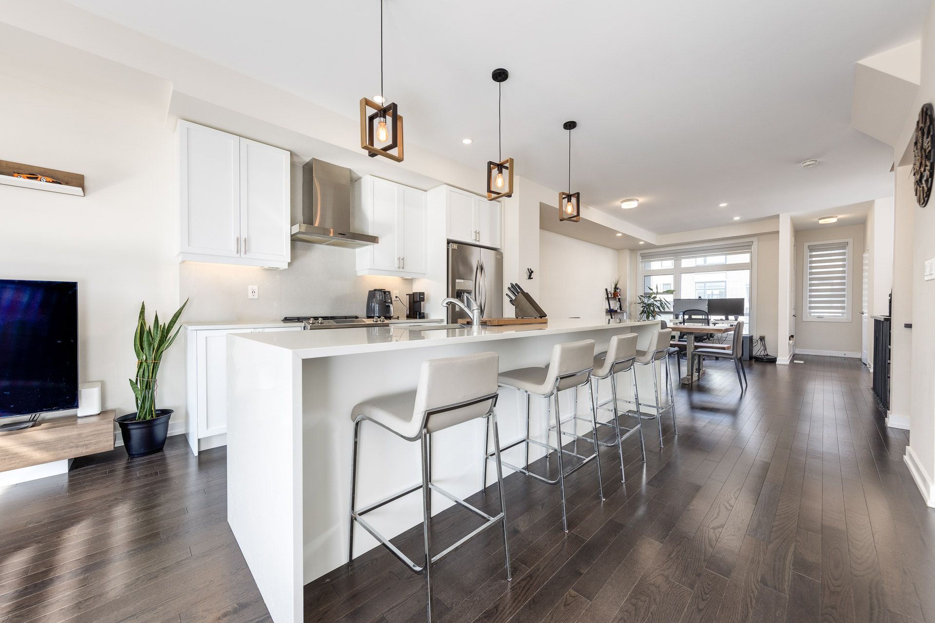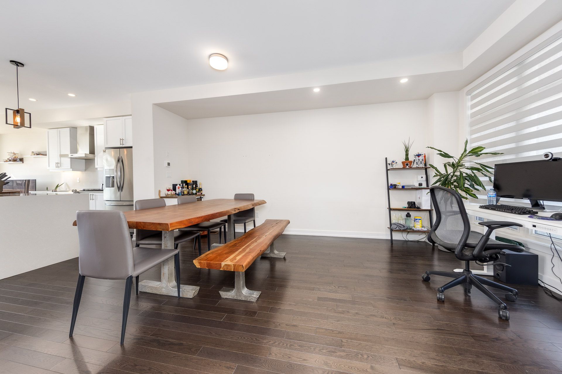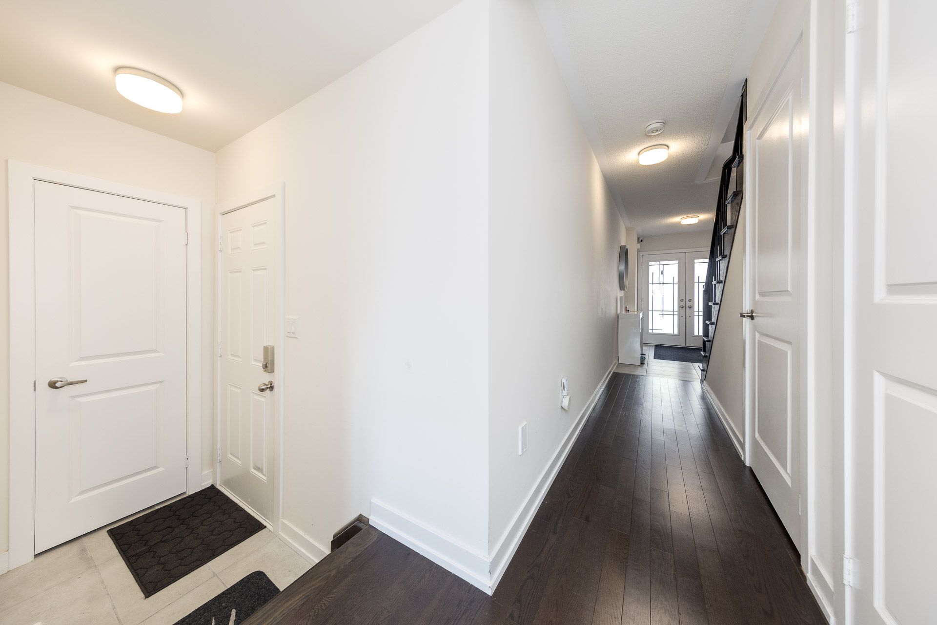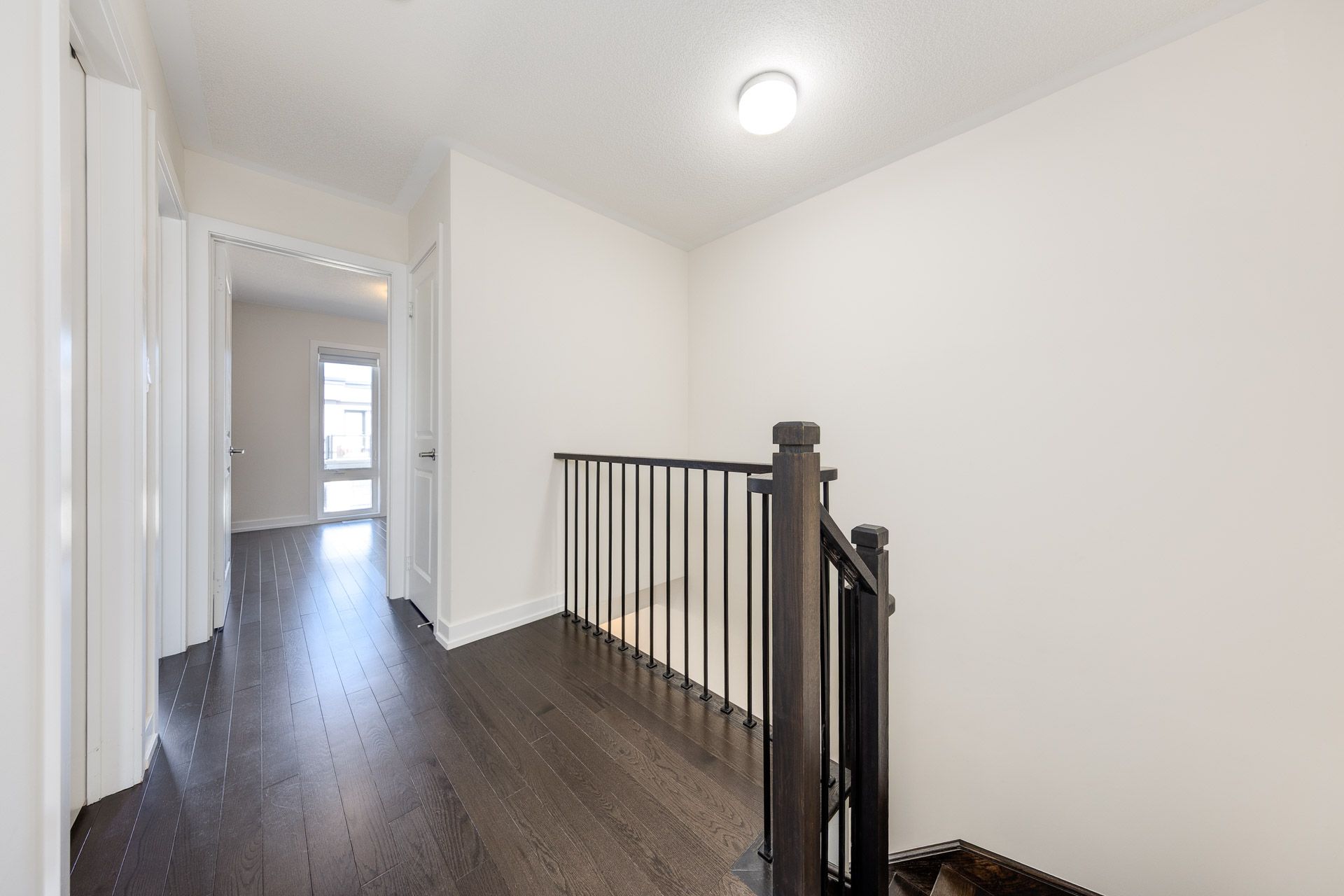 Beautiful contemporary open concept freehold townhouse with a backyard built in 2021 in duffin heights! This home features 3 beds & 4 baths, option for a 4th bedroom on main floor, 2139sq. Ft., 9' ceiling on 2nd floor, hardwood thru-out, oak staircase, kitchen with large waterfall island, quartz counter & s/s appliances, large prime bedroom with 4-pc ensuite w/frameless shower and w/i closet. Unfinished basement & is mins to 401/407, transit, golf, shopping, park, schools & so much more...