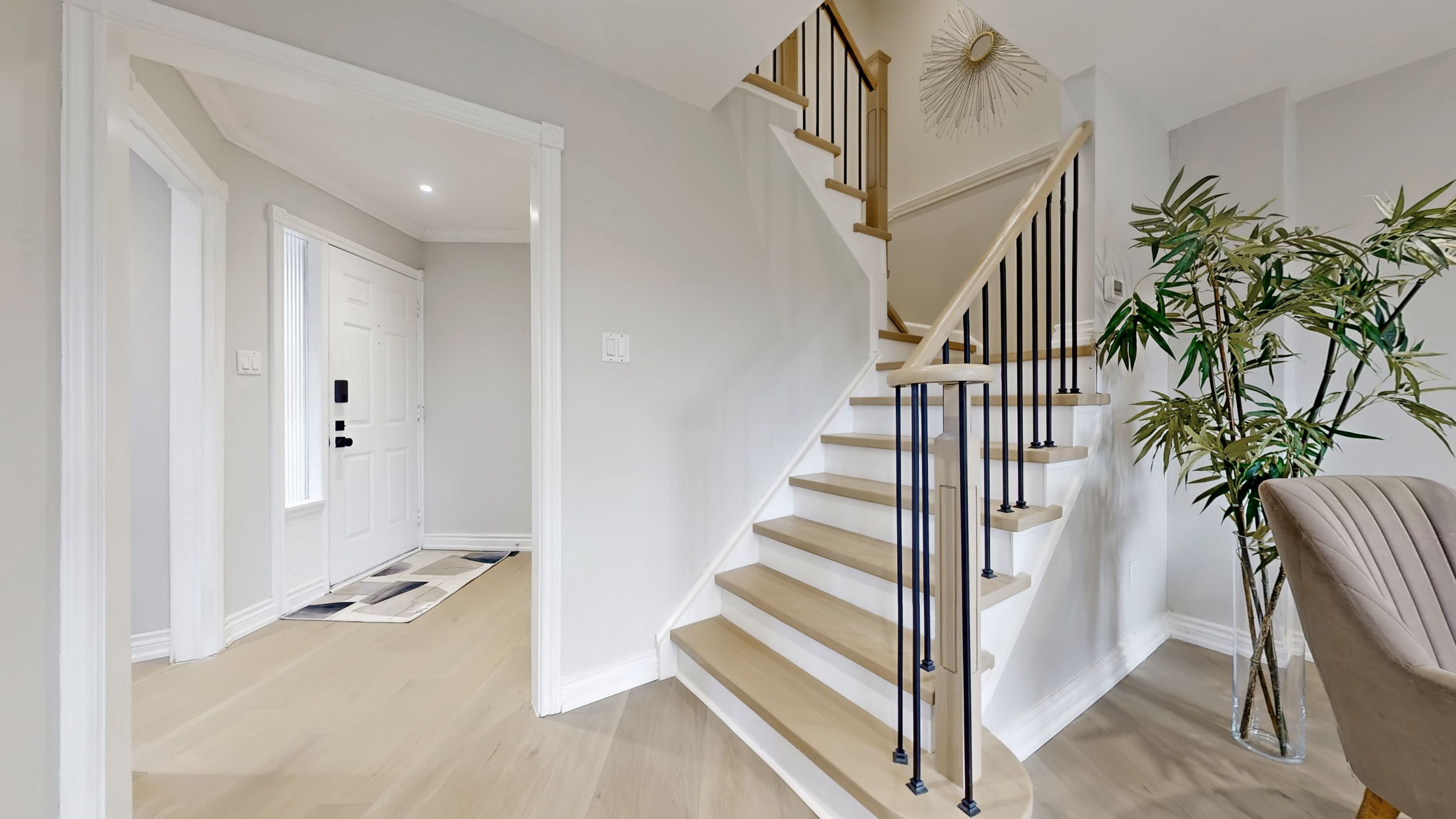 Immaculate, newly renovated home in a prime pickering village location. Welcome to this beautifully updated, move-in ready residence nestled in one of the area's most sought-after neighborhoods. This home exudes modern elegance with engineered hardwood flooring throughout, stylish spindle railings, a bright open-concept layout, pot lights, & an enclosed kitchen designed for contemporary living. The modern kitchen offers generous workspace & a seamless flow into a charming dining area. It features stainless steel appl, a gas stove, a backsplash, ample cabinet space & a deep sink, all highlighted by a picturesque bay window that fills the space with natural light. Upstairs, you'll find 3 spacious bedrooms, each with large windows, ample closets & warm engineering hardwood flooring. The expansive primary suite features a large closet & a private ensuite bathroom, creating the perfect retreat. The finished bsmt provides a versatile recreation or family rm complete with a cozy fireplace, large windows, a full bathroom & engineered hardwood flooring, ideal for family gatherings. Outdoors, enjoy a peaceful backyard backing onto village east park, offering both privacy & serene green views. The driveway provides generous parking & the home sits on a quiet cul-de-sac with easy access to hwy 401, pickering go, shopping, restaurants, transit, groceries & every day amenities. Upgrades. Furnace & ac were replaced '22, window '18, patio door '25, & roof shingles '18. Engineered hardwood flooring, kitchen, washrooms & many other upgrades were done recently. Located in a vibrant area blending residential comfort with urban convenience-near community/health centers, walking trails, parks, many local businesses, & places of worship-this community is home to excellent public & catholic schools & is evolving into a dynamic, mixed-use, transit-oriented hub. This property combines style, comfort & an unbeatable location, true must-see gem, ready for you to move in & enjoy immediately.