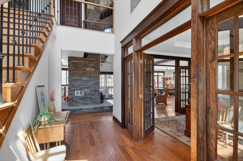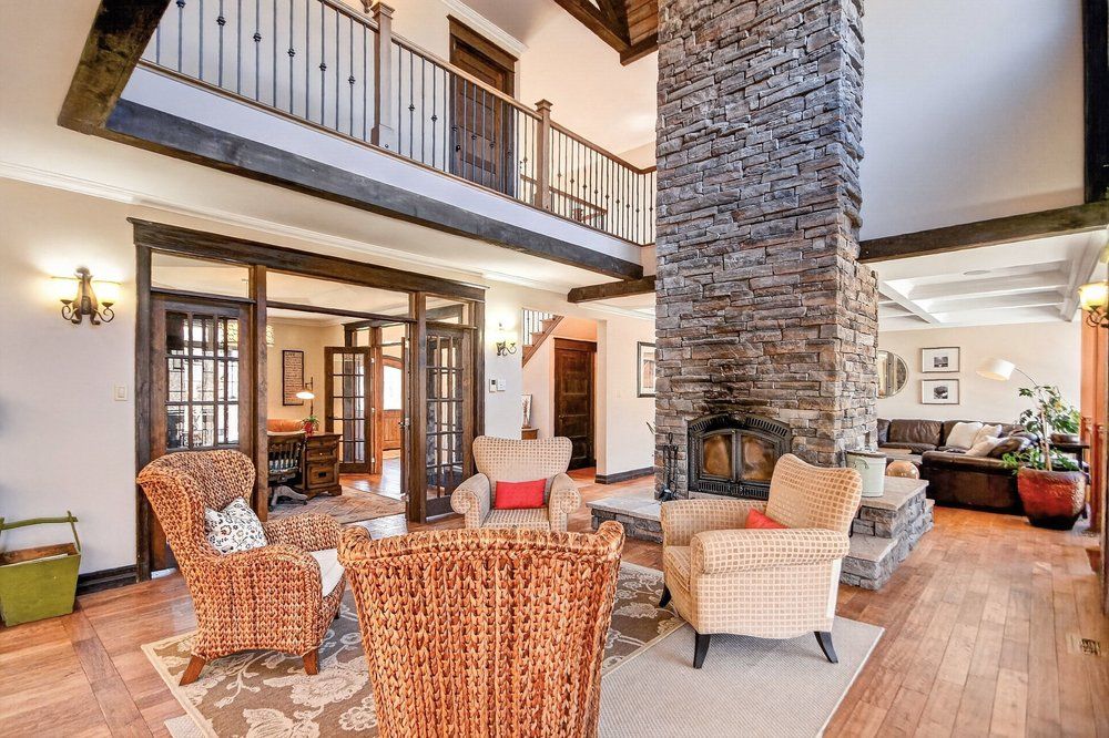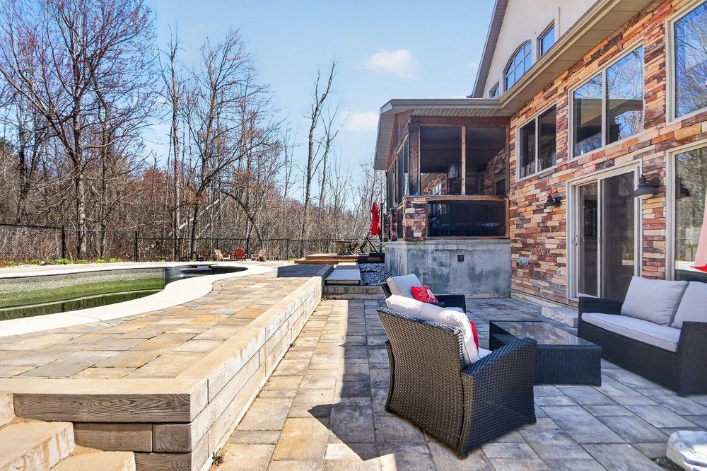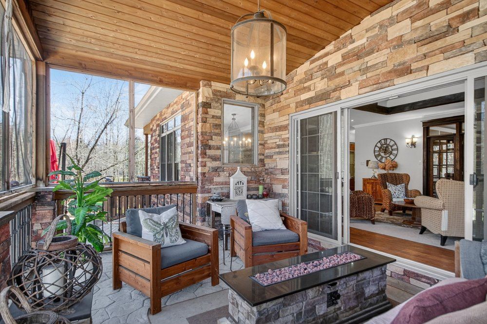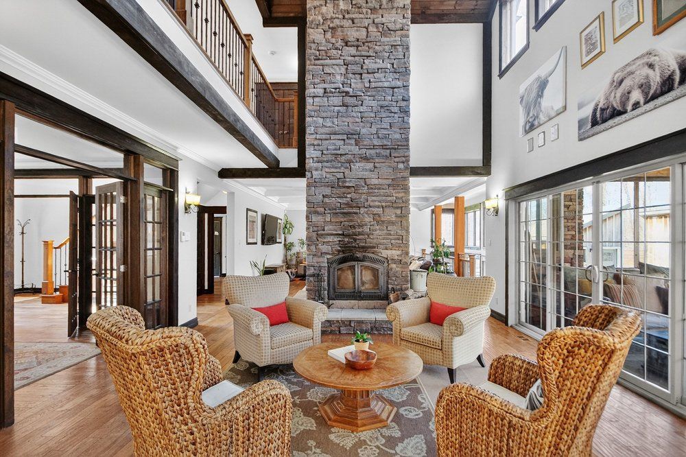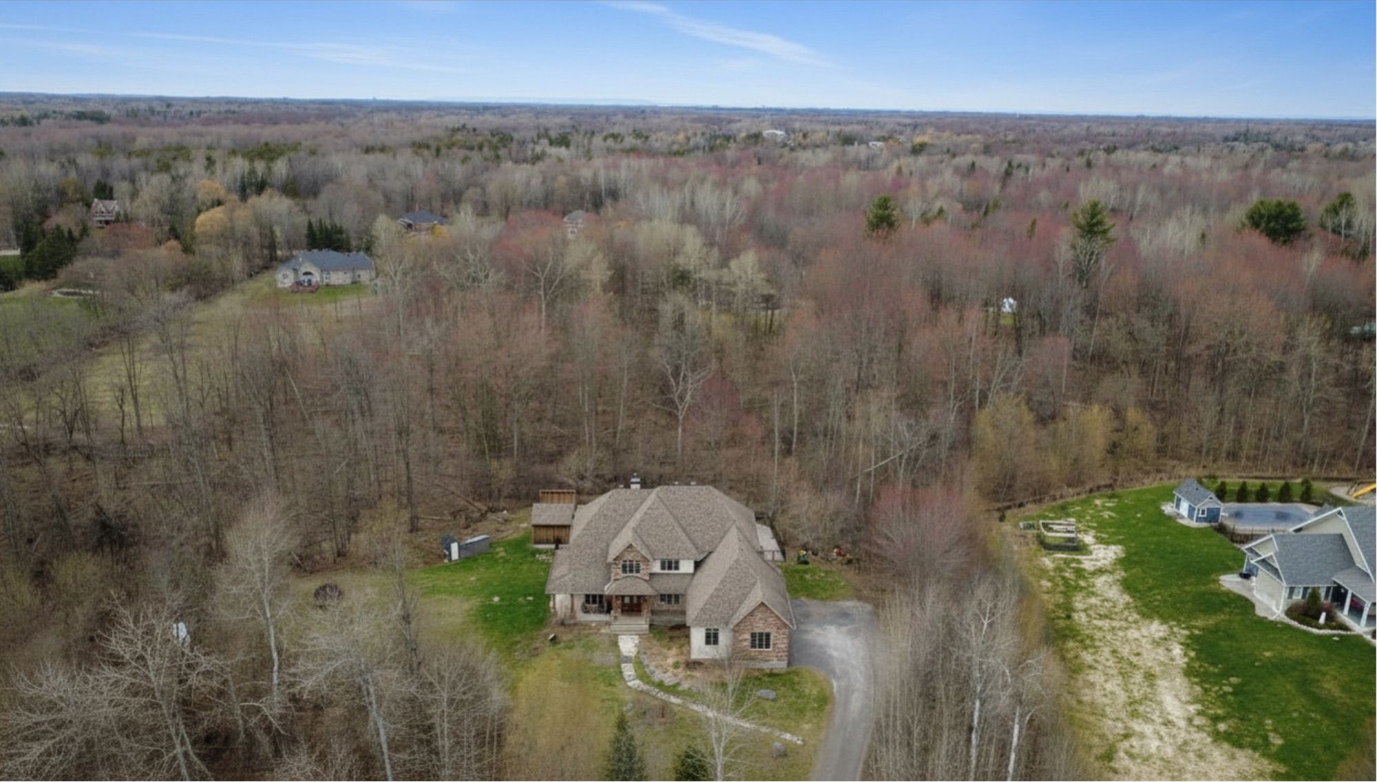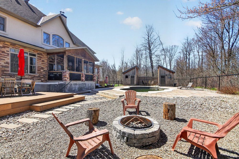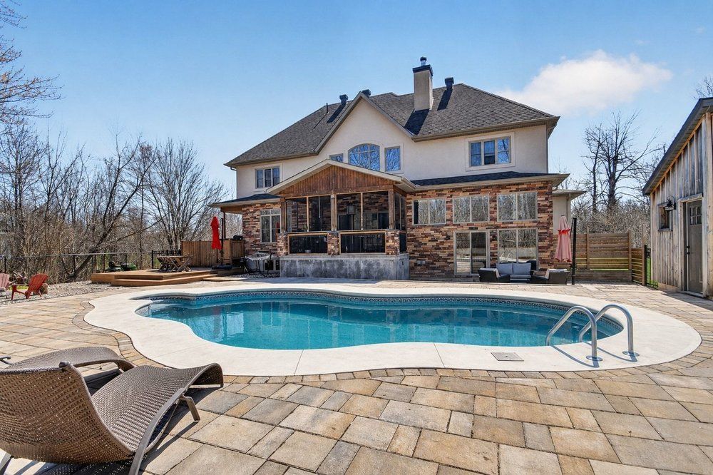 Open house next sunday may 3 2-4... Bring your family... You wont want to leave!!! Welcome to this stunning custom-built home in the heart of greely, offering the perfect blend of luxury, warmth, & a charming tremblant-inspired aesthetic. Nestled on a private, treed lot of over 2 acres, this exceptional property provides both tranquility and space, just minutes from city conveniences. Step inside to a grand foyer with soaring ceilings and an abundance of natural light, setting the tone for the craftsmanship and elegance found throughout. Beautiful hardwood floors flow seamlessly across the main and upper levels, enhancing the home's inviting atmosphere. The thoughtfully designed layout features a main floor bedroom complete with a 4-piece ensuite-ideal for guests or multi-generational living. Upstairs, you'll find three generously sized bedrooms, each with its own private ensuite, including a luxurious primary retreat boasting a spa-like ensuite with a standalone soaker tub. The gourmet kitchen is a chef's dream, featuring a built-in oven, quality finishes, and a layout perfect for entertaining. A striking double-sided stone fireplace creates a cozy ambiance between principal living spaces. The fully finished basement offers radiant heated floors throughout and includes a full bathroom, providing additional comfortable living space year-round. Step outside to your private backyard oasis featuring a beautiful in-ground pool and spacious patio-perfect for relaxing or hosting summer gatherings. This one-of-a-kind property combines rustic charm with modern luxury in a truly picturesque setting. The radiant heating in the lower level is serviced by a dual hot water tank - one for in floor radiant heat and one side for household use replaced in 2024. Pool and sheds installed 2022. Operating costs are wonderful for this size home. $225 for gas and $240 for hydro per month.