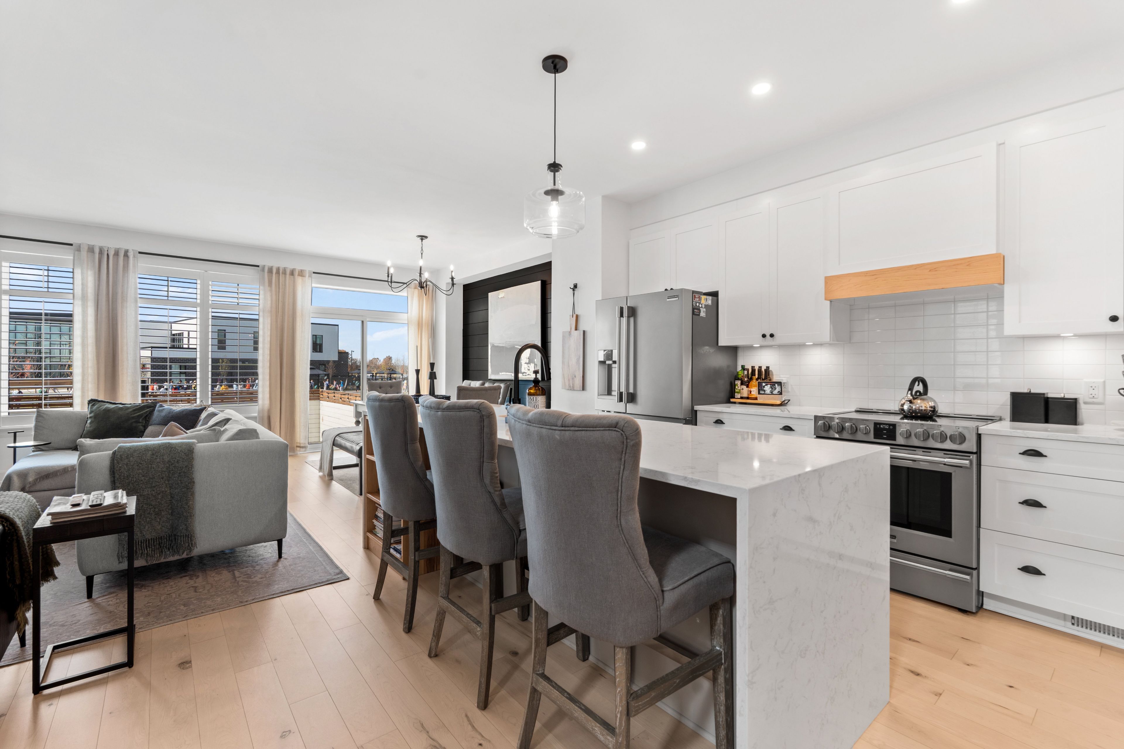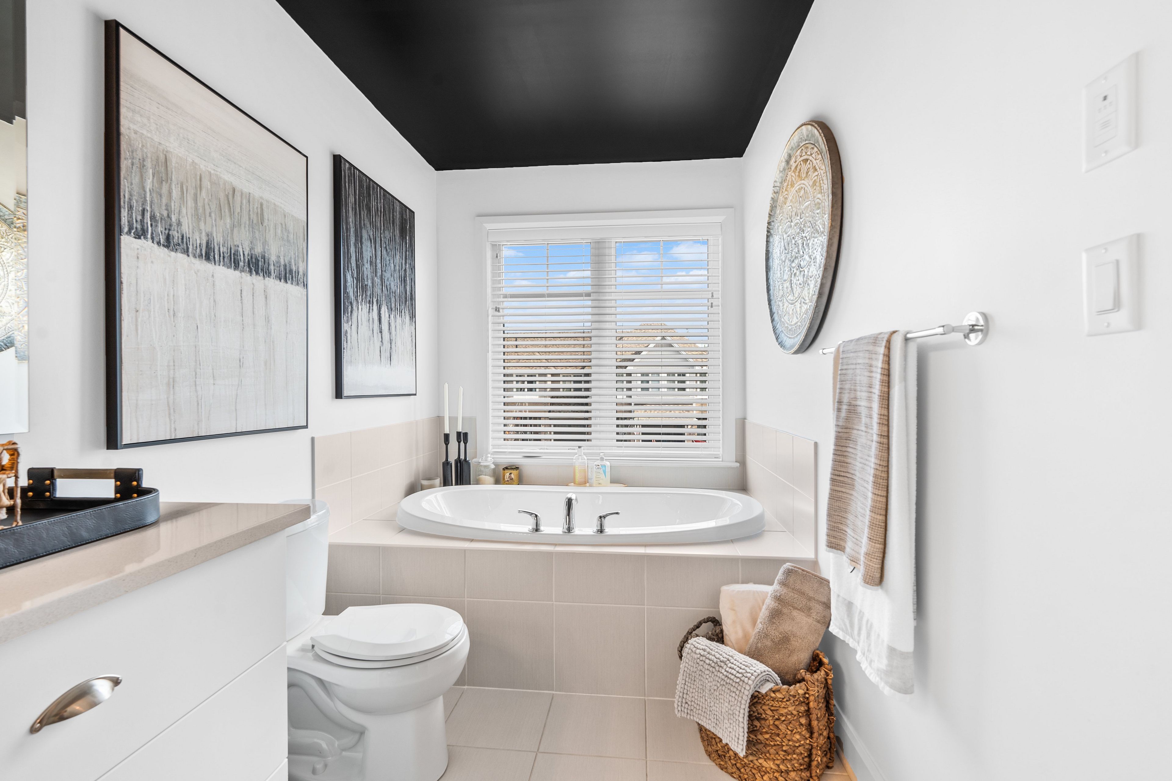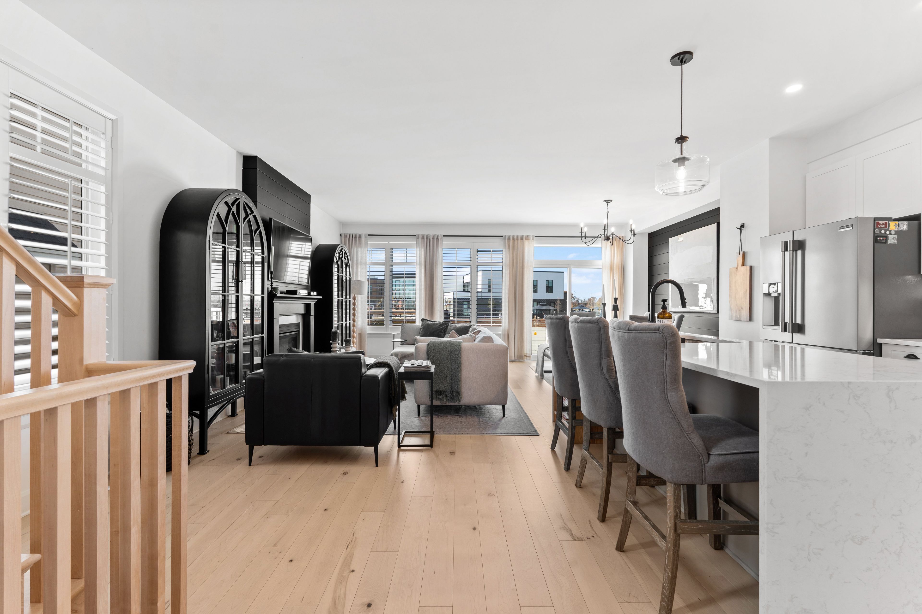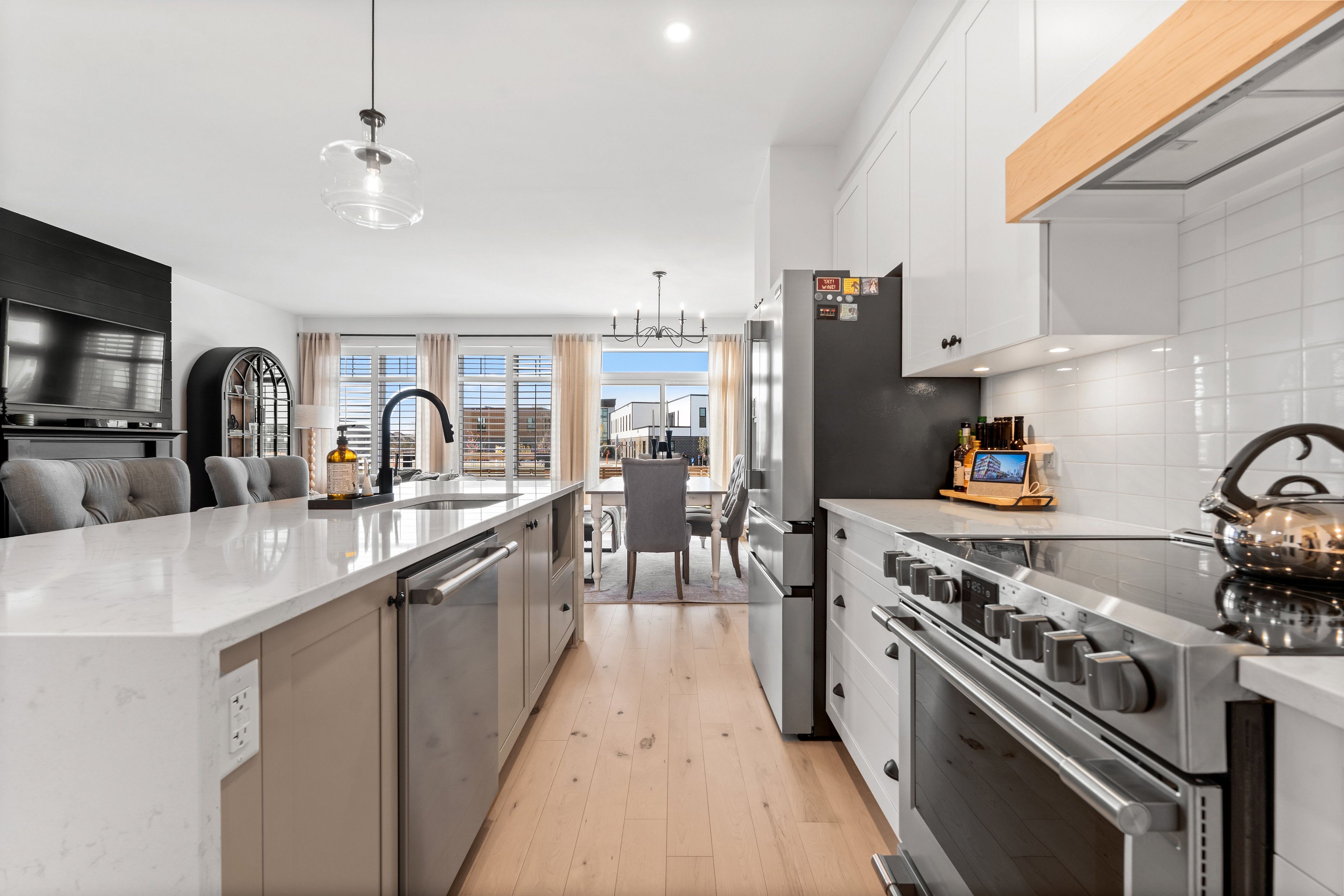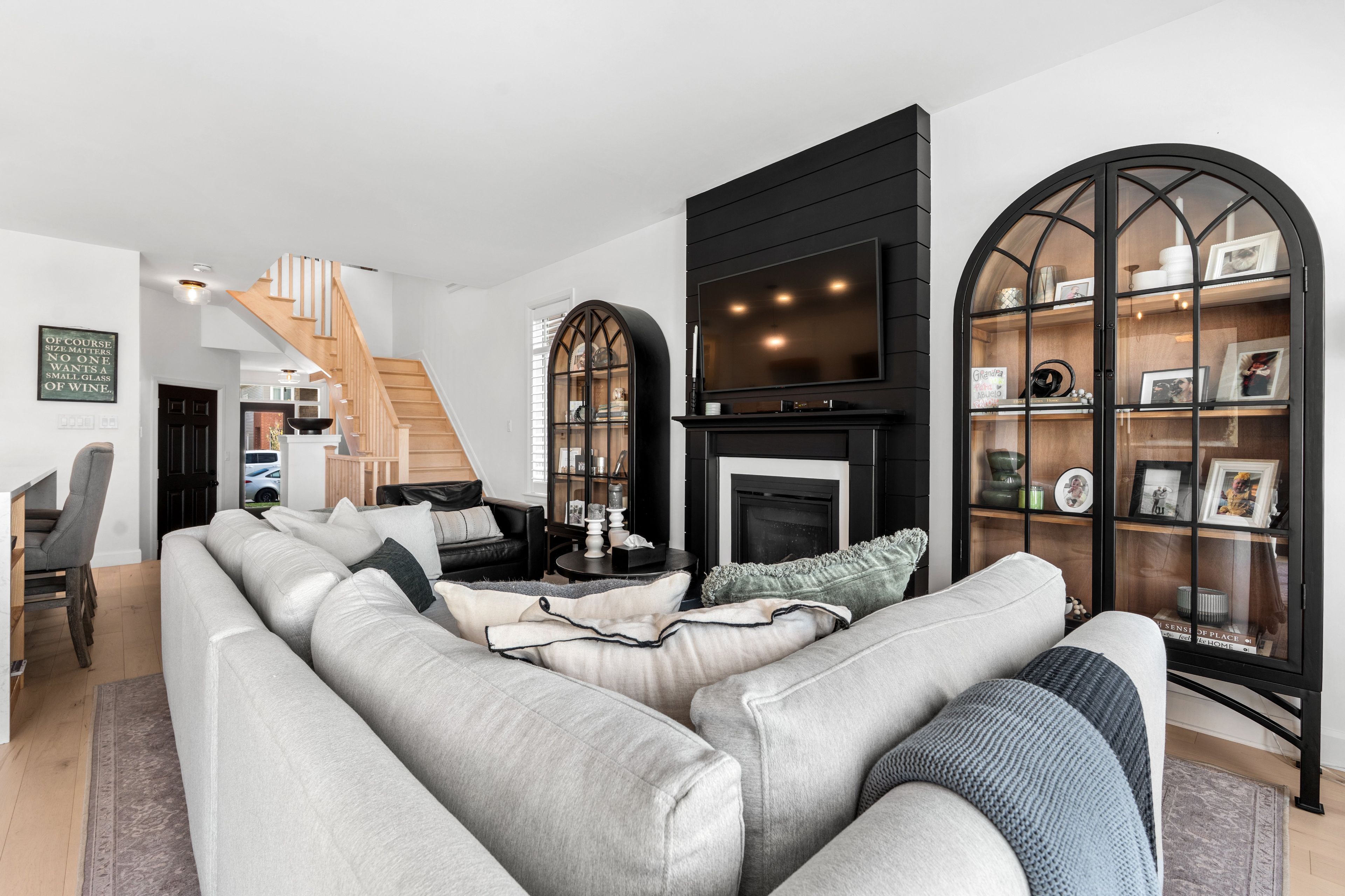 This premium tamarack residence sits on a standout, fully landscaped lot with patio stone, a custom walkway, and manicured gardens that create an inviting entrance. The backyard is a private retreat with a relaxation hot tub, professional turf for low maintenance, illuminated steps, a raised flower garden, a full fence, and an expansive deck with zones for lounging, dining, entertaining, and storage. With the property backing onto st. Genevieve catholic school and a new park and walking paths coming soon, this west-end location delivers long-term convenience and family-friendly appeal. Inside, the home showcases quality craftsmanship and a bright, open main level with maple cabinetry, a custom coffee bar and pantry, quartz countertops, a waterfall island, professional stainless steel appliances, california shutters, and a warm gas fireplace. A beautifully crafted staircase, custom cabinetry, refined finishes, and a stylish powder room elevate the space. The lower level offers a cozy, flexible area for a movie lounge, music space, or children's playroom, plus a rough-in for a future fourth bathroom. Upstairs, the large primary suite features a king-sized layout, walk-in closet, and spa-style ensuite with a soaker tub. A well-designed upper-level laundry room includes quartz counters, a wash sink, cabinets, a folding station, and electrolux appliances. Two additional bedrooms and a four-piece bath complete this level. With 2,200 sq. Ft. Of finished living space, upgraded lighting, an extended driveway, full eavestrough system, celebright exterior lighting, and ev-ready wiring in the garage, this executive townhome blends upscale finishes with modern functionality. A must-see opportunity.