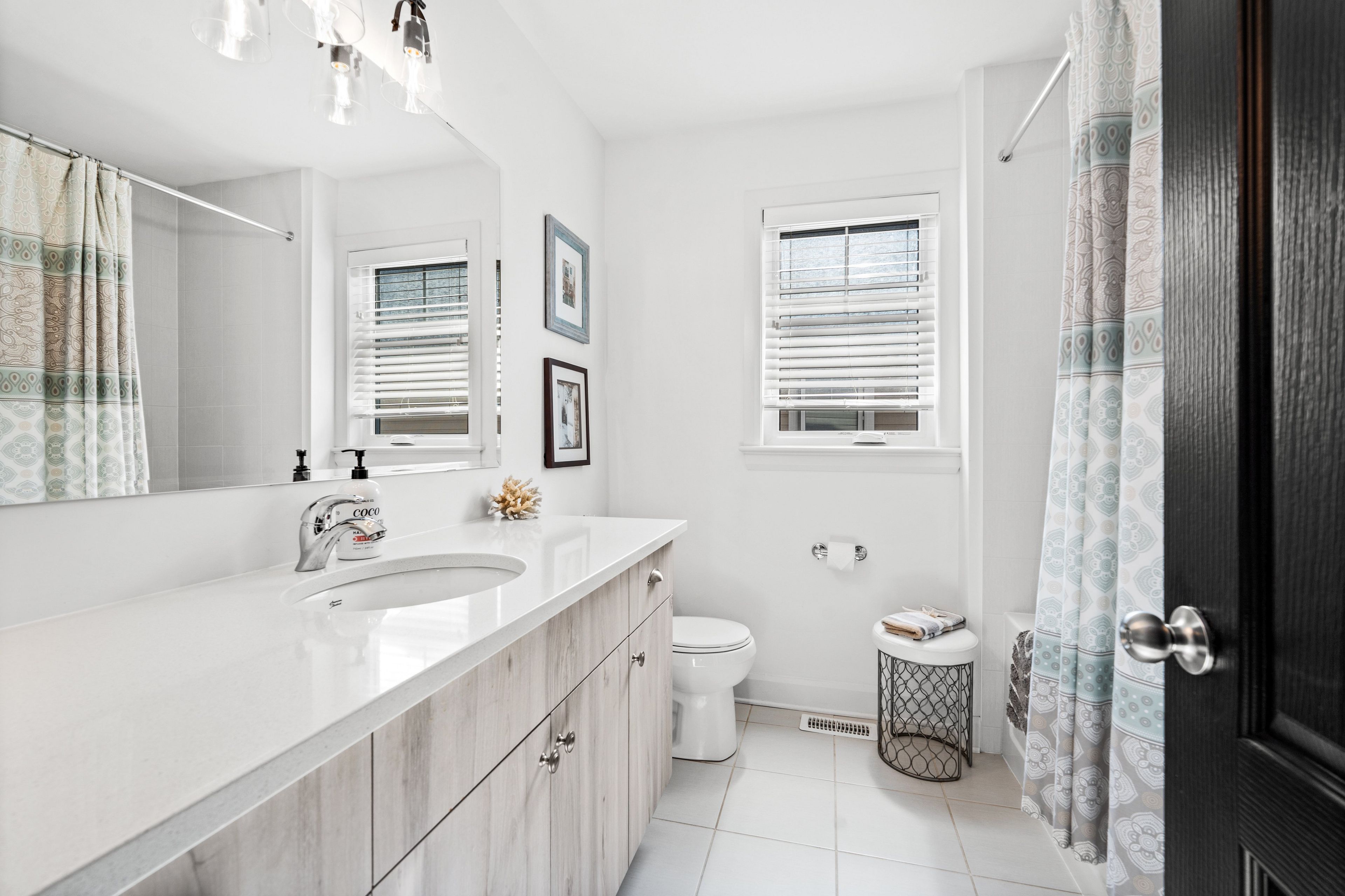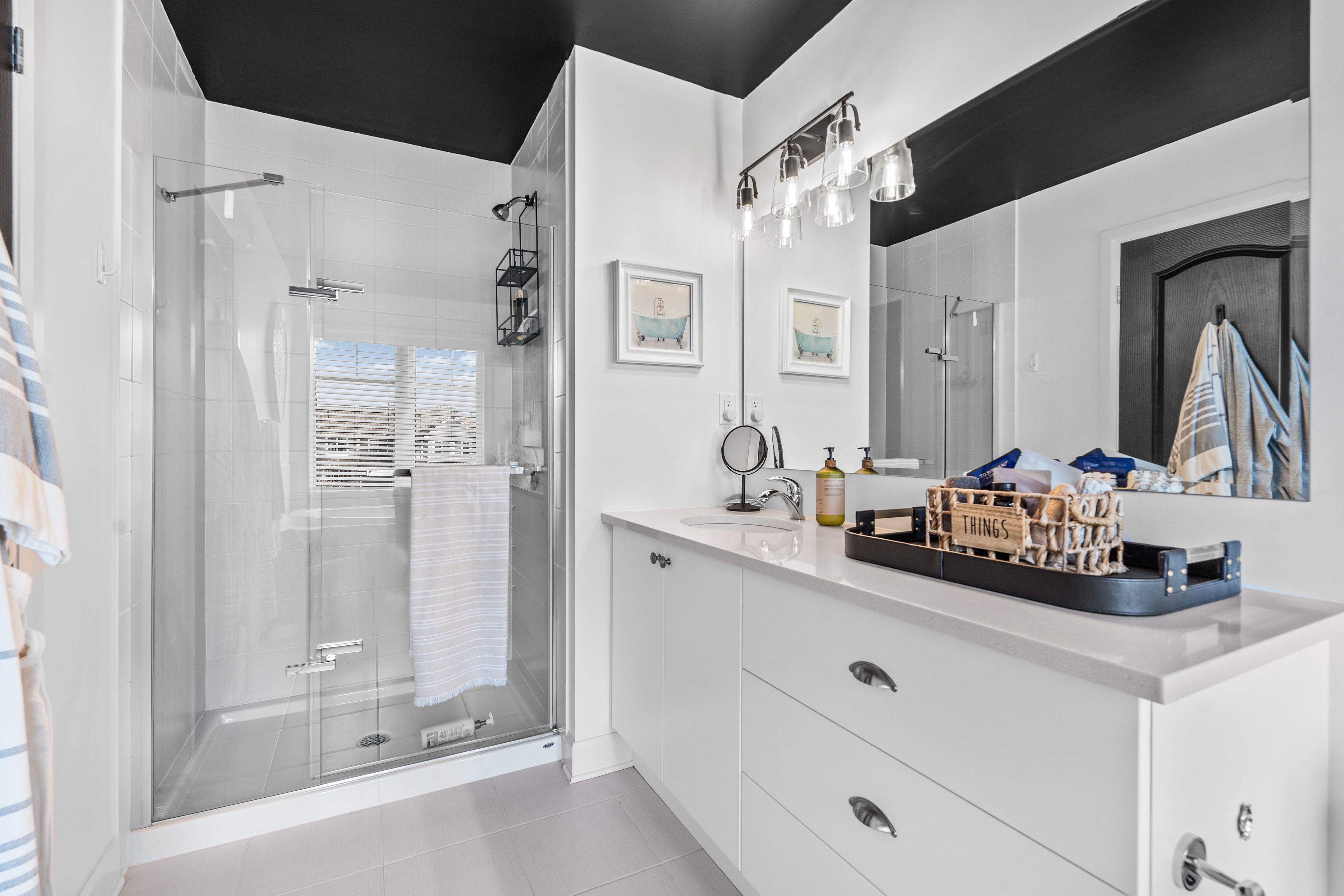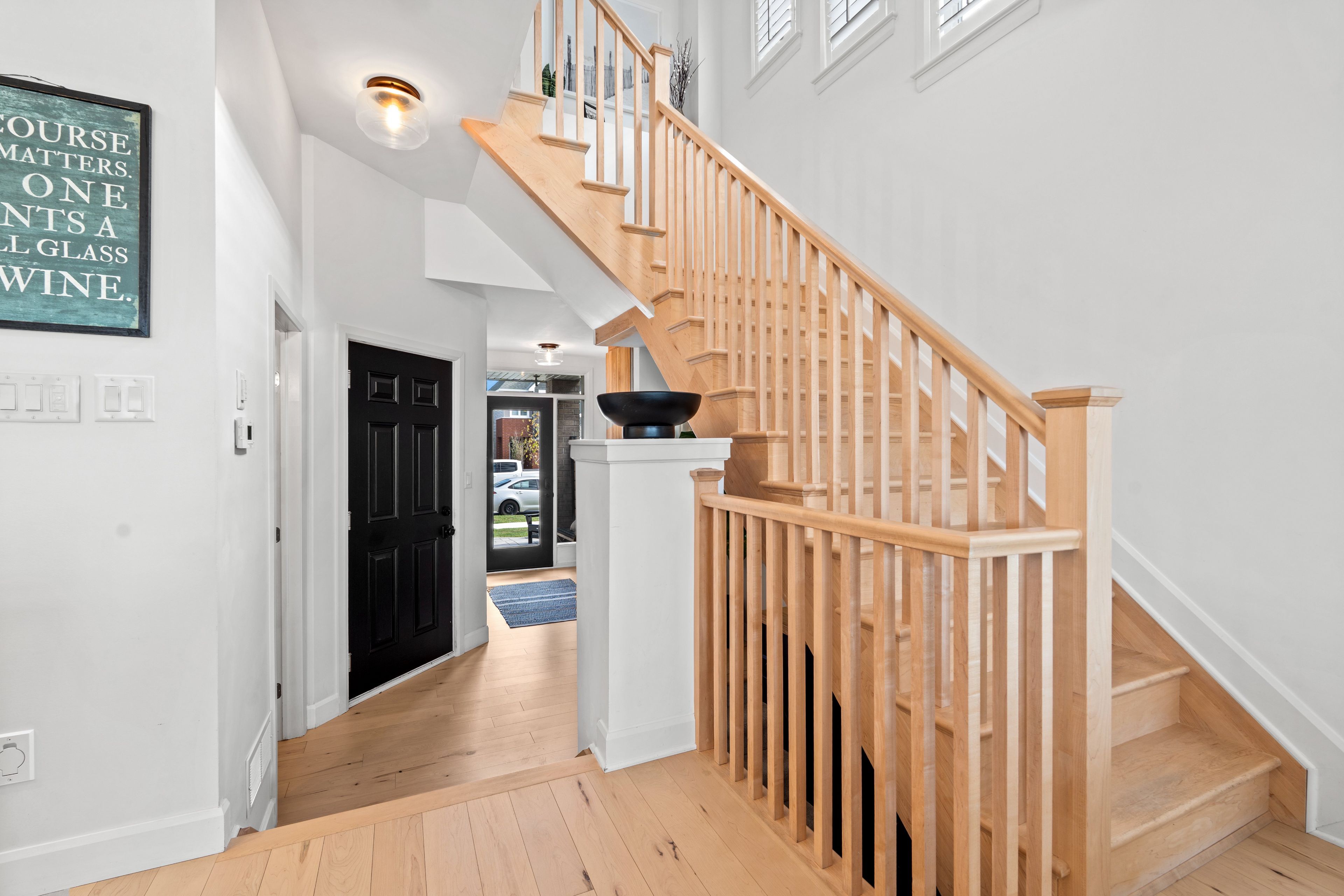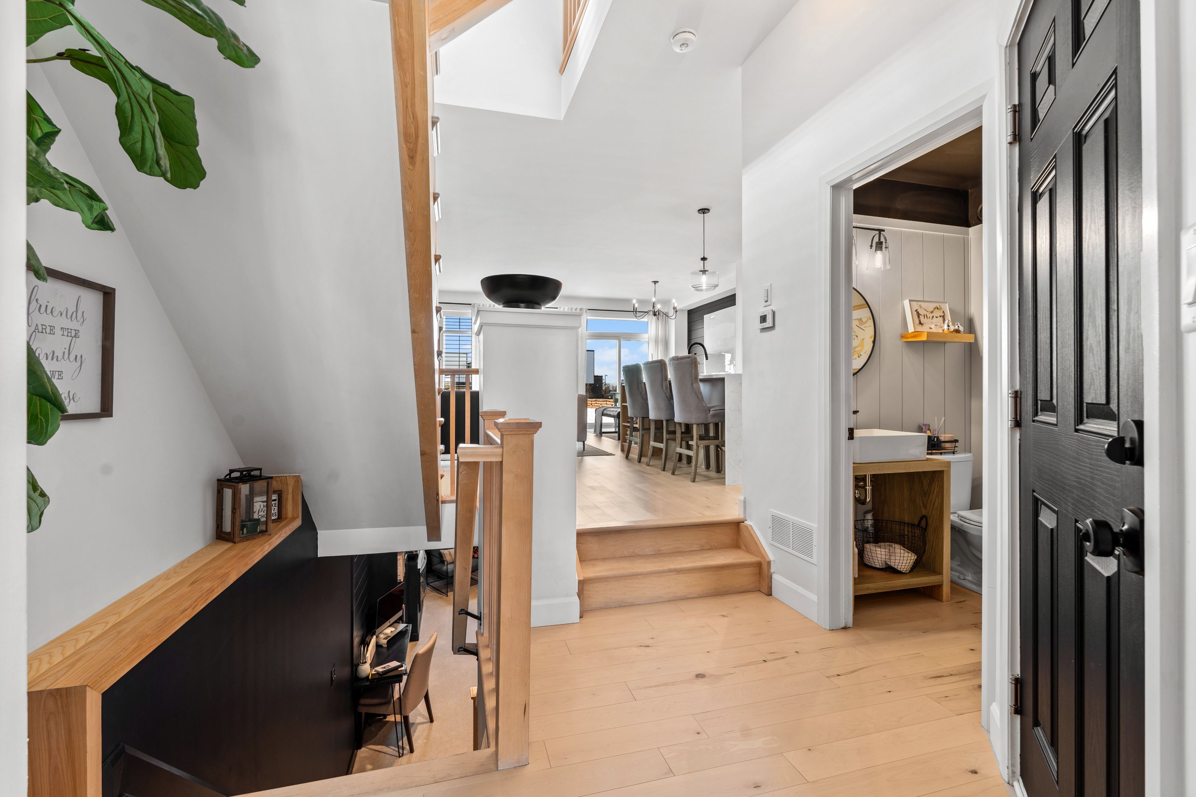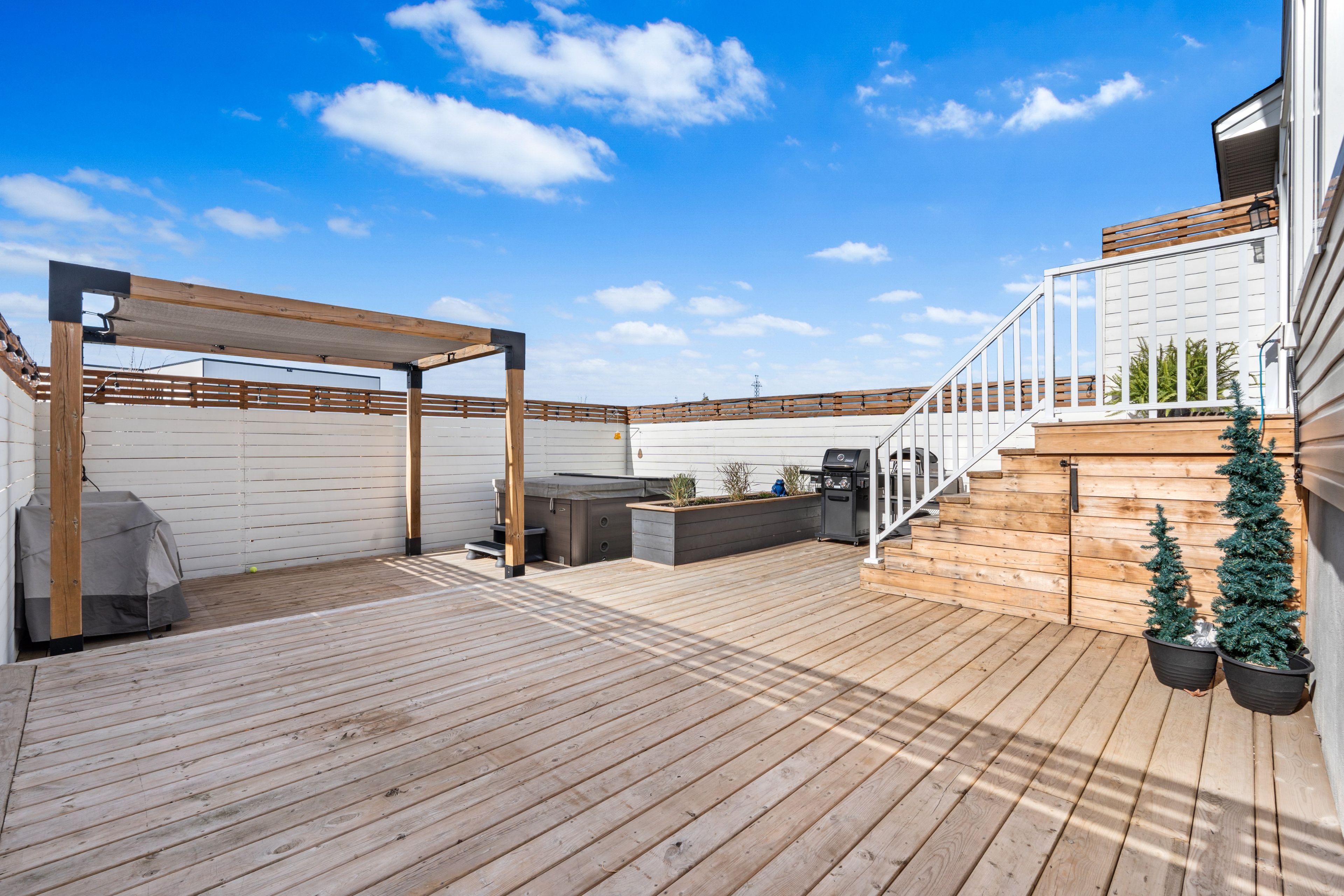 This premium tamarack residence sits on a standout, fully landscaped lot with patio stone, a custom walkway, and manicured gardens that create an inviting entrance. The backyard is a private retreat with a relaxation hot tub, professional turf for low maintenance, illuminated steps, a raised flower garden, a full fence, and an expansive deck with zones for lounging, dining, entertaining, and storage. With the property backing onto st. Genevieve catholic school and a new park and walking paths coming soon, this west-end location delivers long-term convenience and family-friendly appeal. Inside, the home showcases quality craftsmanship and a bright, open main level with maple cabinetry, a custom coffee bar and pantry, quartz countertops, a waterfall island, professional stainless steel appliances, california shutters, and a warm gas fireplace. A beautifully crafted staircase, custom cabinetry, refined finishes, and a stylish powder room elevate the space. The lower level offers a cozy, flexible area for a movie lounge, music space, or children's playroom, plus a rough-in for a future fourth bathroom. Upstairs, the large primary suite features a king-sized layout, walk-in closet, and spa-style ensuite with a soaker tub. A well-designed upper-level laundry room includes quartz counters, a wash sink, cabinets, a folding station, and electrolux appliances. Two additional bedrooms and a four-piece bath complete this level. With 2,200 sq. Ft. Of finished living space, upgraded lighting, an extended driveway, full eavestrough system, celebright exterior lighting, and ev-ready wiring in the garage, this executive townhome blends upscale finishes with modern functionality. A must-see opportunity.