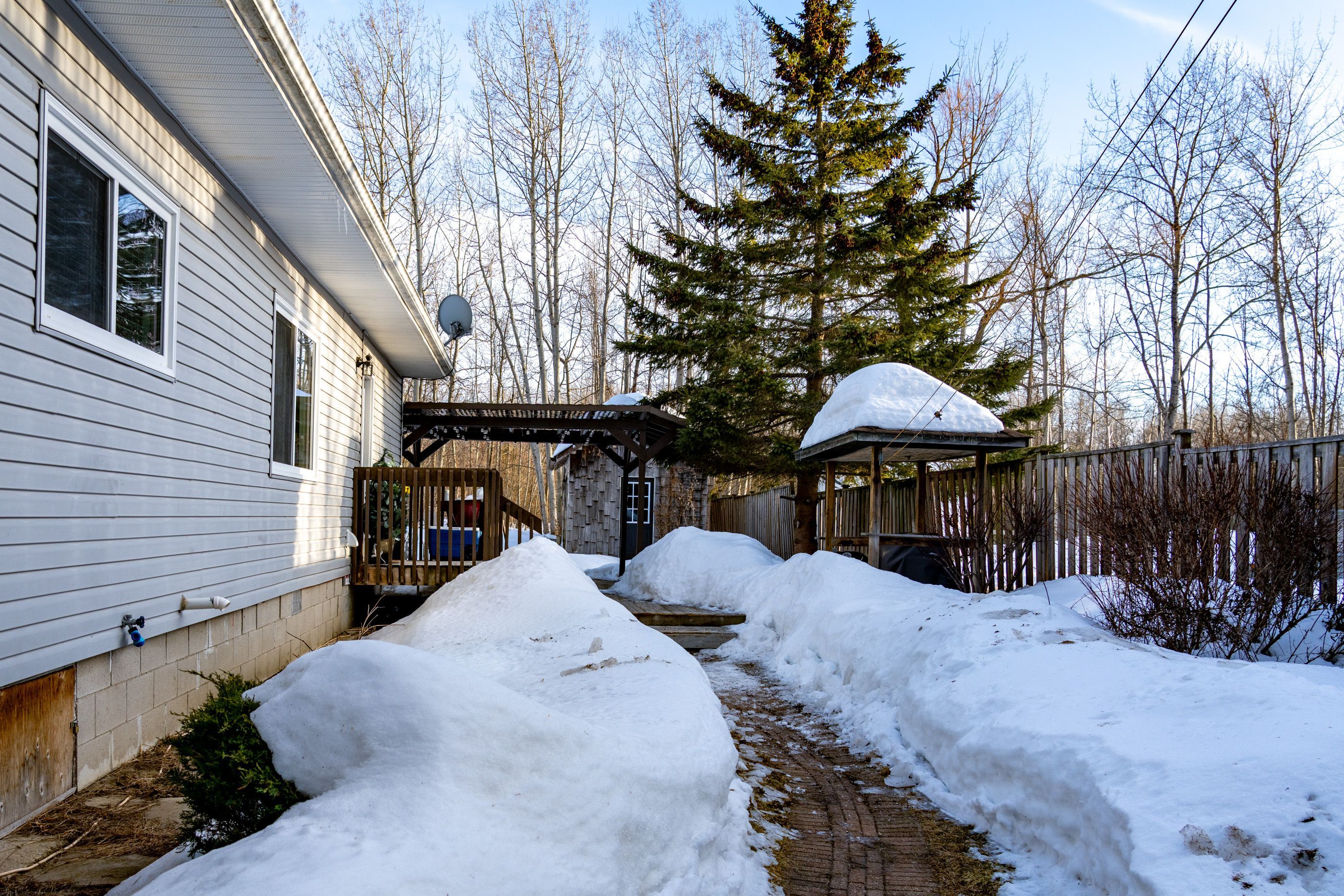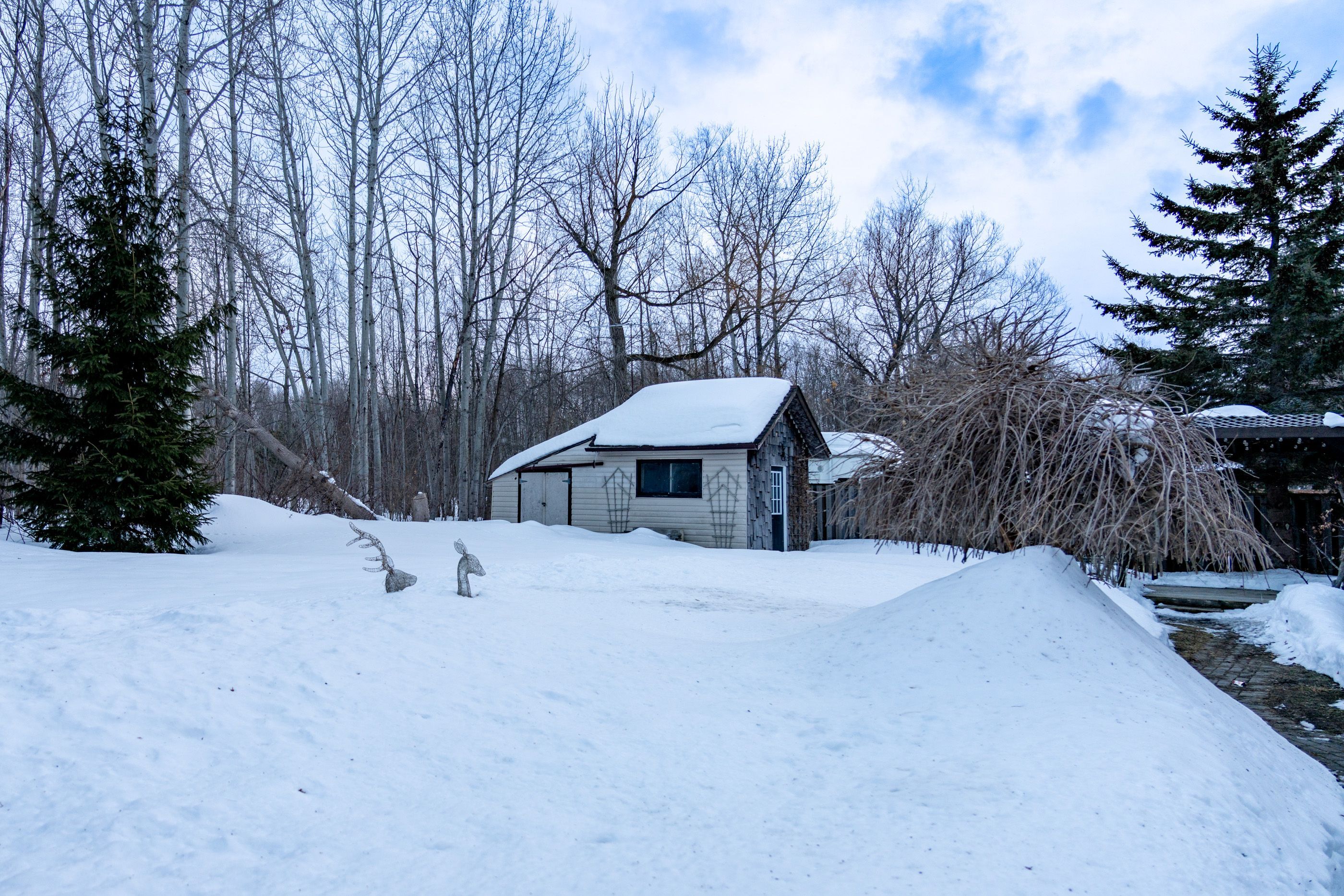 • Two driveways, a heated garage, and a large shed.