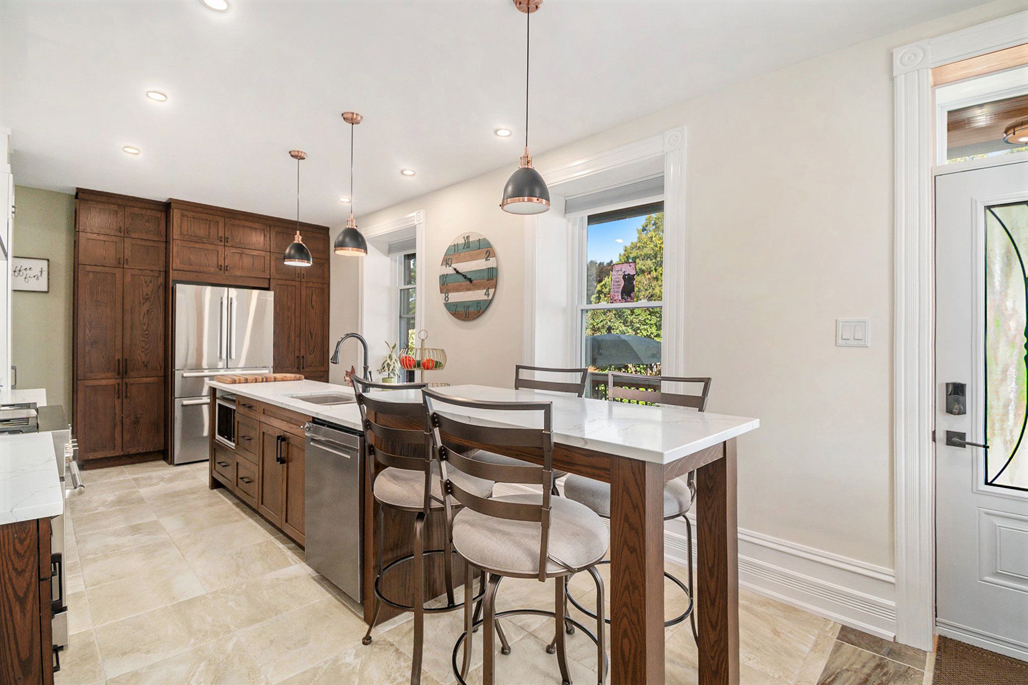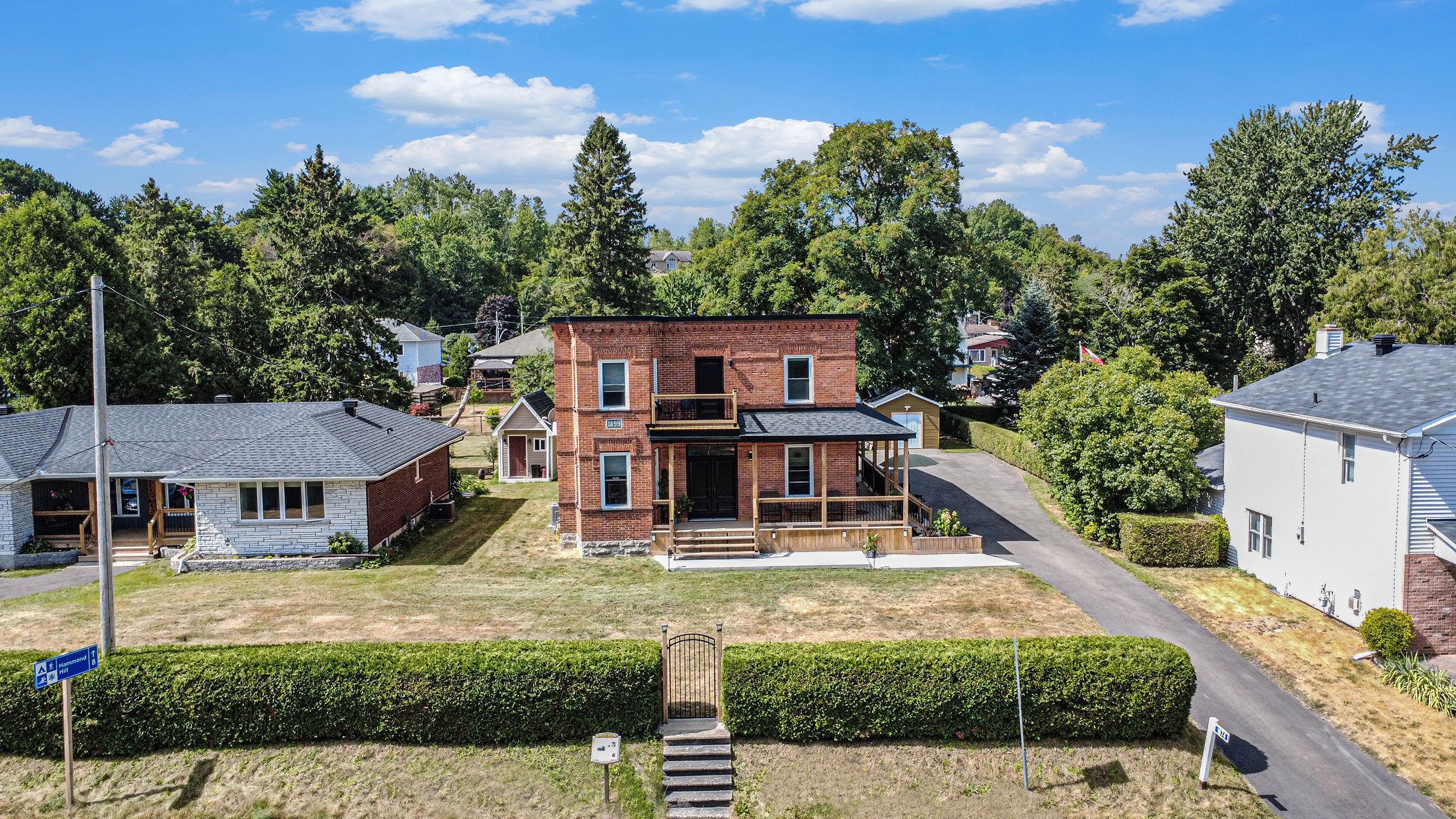 This property is considered a local historic site, given its architecture. With many years of love and care for this home, the present owner has improved and upgraded this home with love, & with quality materials, and nothing was spared for you to keep enjoying this wonderful home. Wood flrs, oak all over, ceramic in kitchen & baths, 12 1/8 inches high baseboards all real wood at a cost of $20k, 9' high ceilings, kitchen brown cabinet oak/granite counter top, white high gloss melamine, coffee bar with mini sink and mini fridge, range is jenn air with middle griddle, bosh double fridge. Main flr 2-pc bath with laundry, vanity with limestone countertop and ceramic flr. Access to a newly built garage with a loft perfect for the man cave or family playroom, or added living space with an extra-wide staircase. The upper ensuite bathrm offers granite on the walls, porcelain on the flr and in the shower. The main upper 4-pc bathrm with a soaker tub and a marble countertop single sink. All bedrms have oak flrs in a special design. The primary bedrm offers his & hers closet, access to a beautiful ensuite which offers double vanity w granite countertop, bidet toilet that has dual water temperature, heated seat and night light that changes colors the shower is 3' x 5' in ceramic tiles and glass drs, large hanging mirror on wall incl, and further gives access to your private balcony to rest and read your special book. List of work done as follows: modified bitumen roofing 2024 with a 20-year transferable warranty, paved driveway 2024, garage/loft 2025, furnace & hwt & a/c 2018, insulation attic 2022, electrical 2020-2021, 3-faced gas fireplace 2021 between dining rm & living rm. Gas bbq line 2023, kitchen 2021, plumbing pex 2018-2022, basement blown insulation & drywall 2024, doors 2022, walkway around veranda 2023-2024, shed 12' x 12'. Never be out of power ever again with this generac generator will keep you warm or cool w/everything working. Seller will entertain all offers