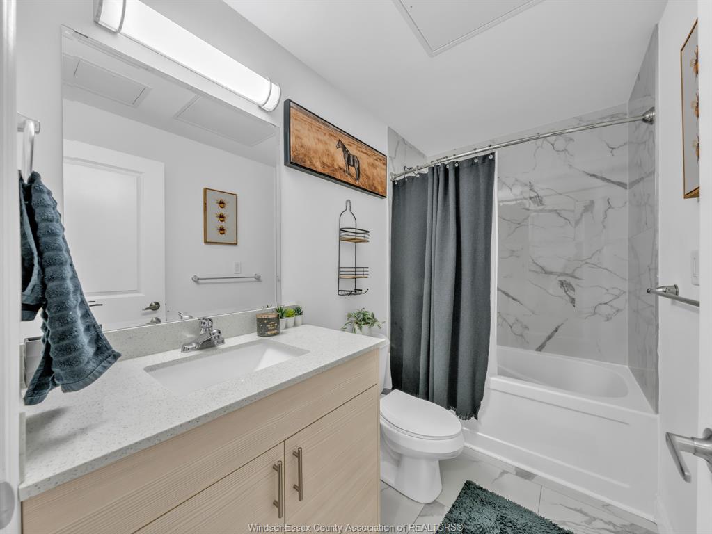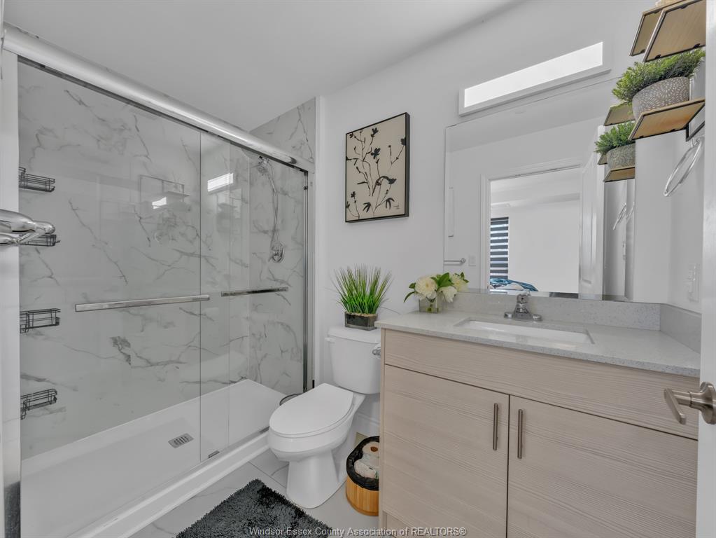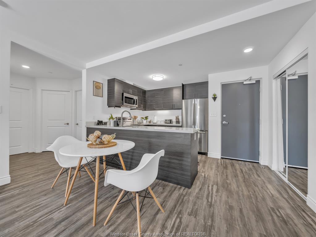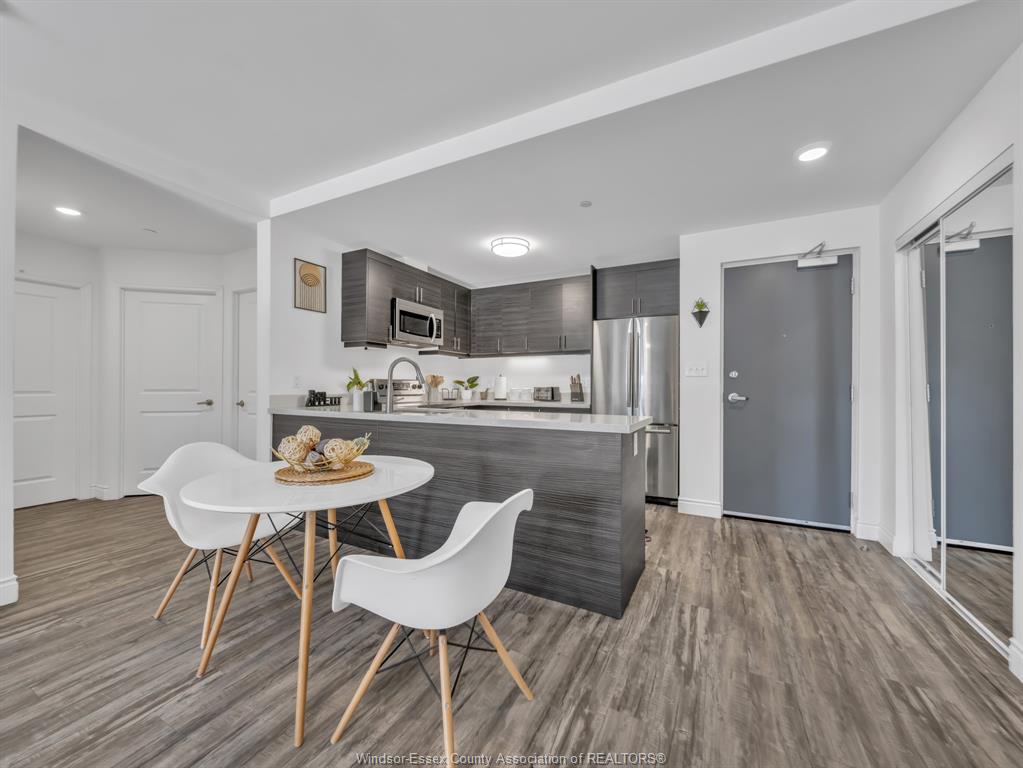 Welcome to this bright and beautifully maintained main-floor corner unit in eastside horizons, one of windsor’s most desirable condo communities. This 2-bedroom, 2-bathroom home features a spacious open-concept layout with luxury finishes throughout, including a modern kitchen with stainless steel appliances, in-suite laundry, and a sleek 3-piece ensuite with a glass shower. Custom cabinetry offers extra storage, and the fenced-in private patio provides a quiet outdoor space ideal for relaxing, entertaining, or letting pets enjoy the fresh air. Located just steps from parks, walking trails, shopping, schools, restaurants, public transit, and easy access to ec row expressway. Perfect for downsizers, first-time buyers, or investors!