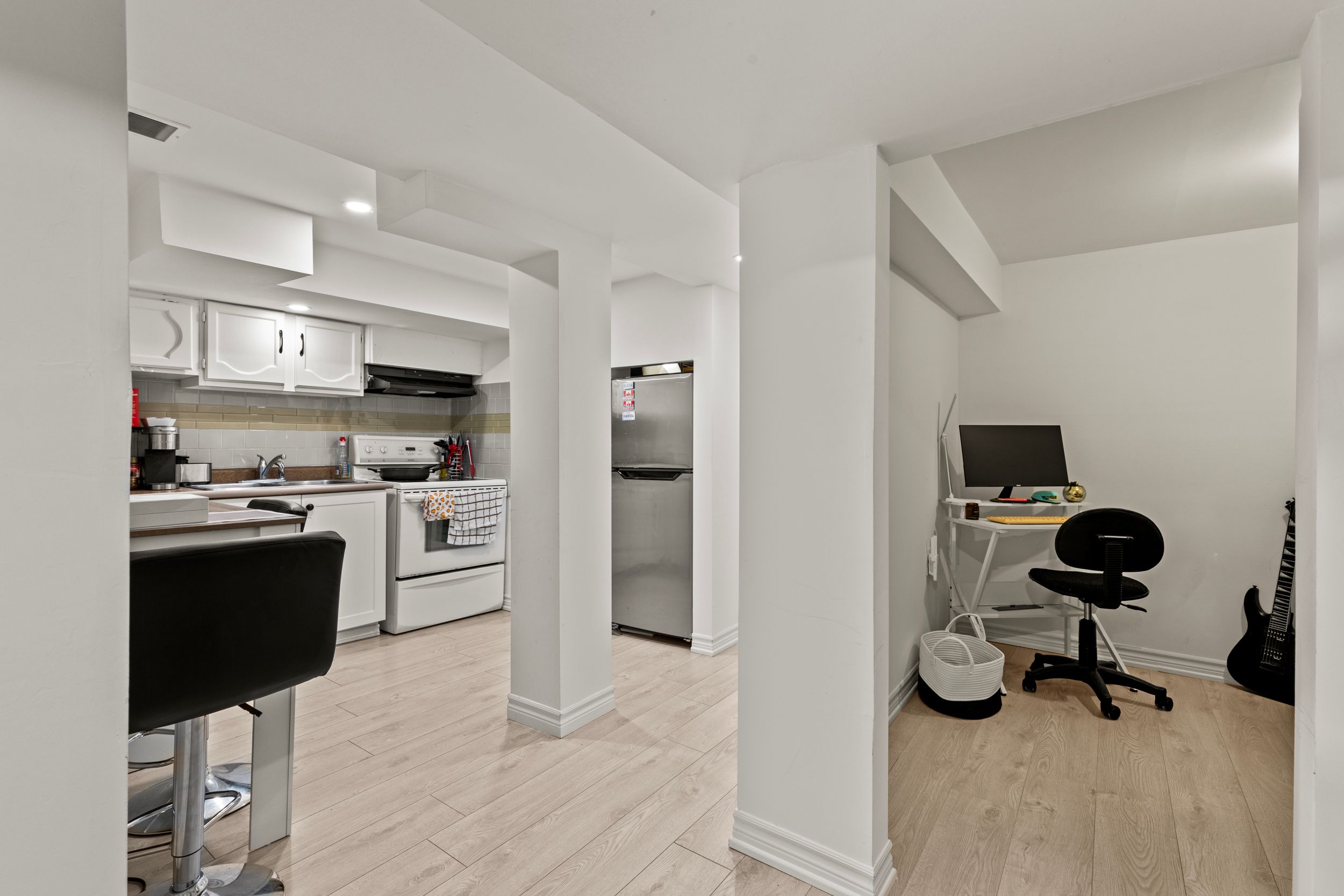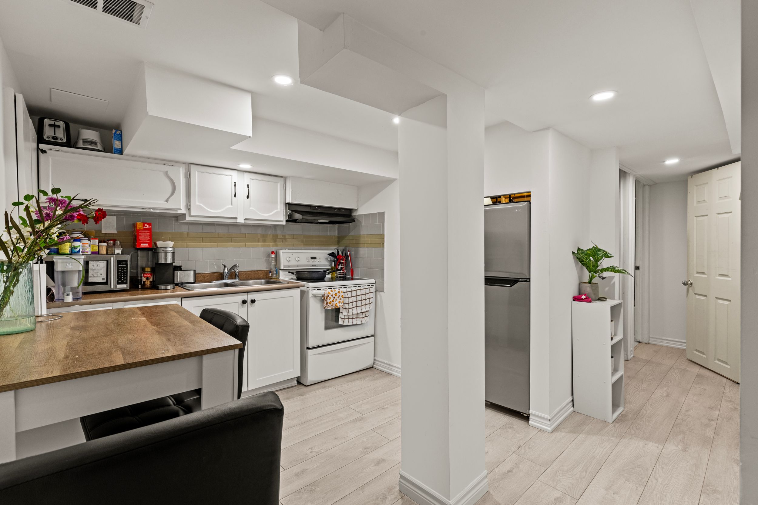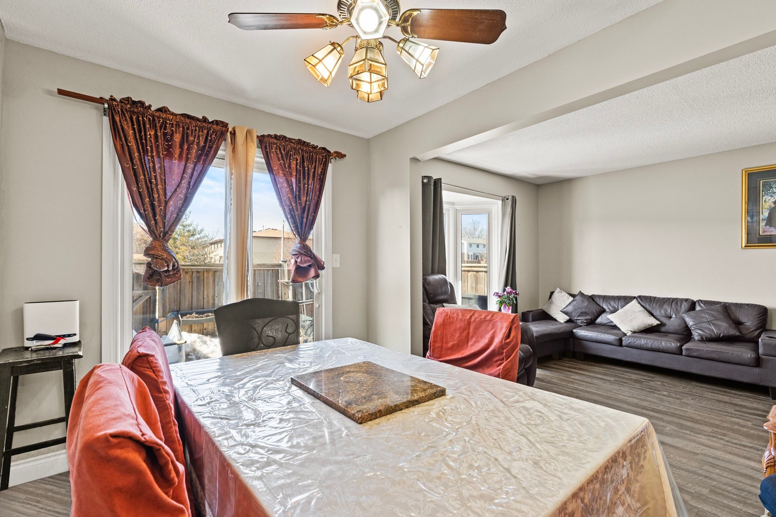 Welcome to this beautifully maintained end-unit 2-storey condo townhome offering extra privacy, natural light, and a convenient hamilton location. With 3 bedrooms, 2. 5 bathrooms, and over 1,290 sq ft above grade plus a finished basement, this home provides flexible living space ideal for first-time buyers, condo move-up buyers, or downsizers. The main floor features updated flooring throughout and a bright, open living and dining area highlighted by a large bay window that fills the space with natural light. Sliding doors provide walkout access to the private backyard, creating a great space for relaxing or entertaining. The kitchen offers white cabinetry, stainless steel appliances, and a functional layout, making everyday cooking easy and efficient. Upstairs you'll find three well-sized bedrooms, including a spacious primary bedroom, along with a convenient full bathroom. The finished basement (2022) adds valuable additional living space and includes a second kitchen, providing an ideal in-law suite setup for extended family or guests. As an end unit, the home benefits from extra privacy, additional windows, and added outdoor space compared to many interior townhomes. Parking is convenient with 1 garage space plus 1 driveway spot. Lots of visitors parking on site as well. Located close to schools, parks, grocery stores, and everyday amenities, with quick access to both the red hill valley parkway and the lincoln alexander parkway, making commuting throughout hamilton and the surrounding area simple. A fantastic opportunity to own a move-in ready townhome in a well-connected hamilton neighbourhood.