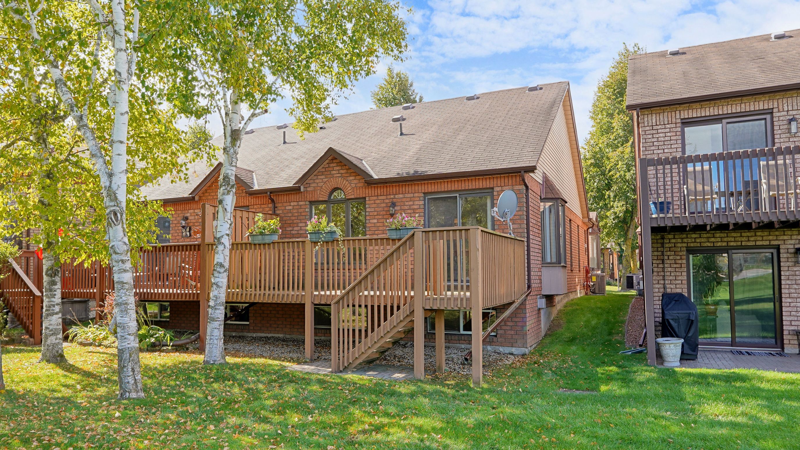 Green briar: blending lifestyle, leisure, and serenity in a setting you'll love to call home. This rarely offered 2+1 bedroom, 2 bathroom semi-detached bungalow offers just under 1,100 sqft of ideally designed space. Who says downsizing means giving up your favourite things? Priced to sell it's ready for you to add a few of your own touches and make it perfectly yours. Sun-splashed and freshly painted, with skylights and an open-concept layout that flows from the dining area to a bright living room with a walkout to a private deck overlooking the golf course complete with a gas line for effortless summer bbqs. The cheerful eat-in kitchen offers abundant prep space, perfect for two or for when the grandkids visit. Make this kitchen famous for gourmet meals and family memories that stick. The generous primary suite boasts a 4-pc semi-ensuite and double closet, where you can fall asleep to the tranquil sounds of nature through your open window. Downstairs, a light-filled rec room with above-grade windows, a gas fireplace, additional bedroom, and bathroom creates endless possibilities ,game or movie nights, reading retreats, or an exercise escape. Living here means no more grass cutting and full access to a resort-style life: two gorgeous golf courses, walking trails, and a lively community centre with daily activities. Sneak past the trees and work on your chipping before dinner, or unwind next door at nottawasaga resorts 70,000 sq. Ft. Fitness club with indoor pool, sauna, racquetball, and spa. Minutes to highways, dining, and outlet shopping. A quick jaunt on the 400 south and you're in toronto; pop north and you've got the beaches. This is the one you've been waiting for. My briar may just be greener than yours. (some photos are virtually staged for design inspiration)