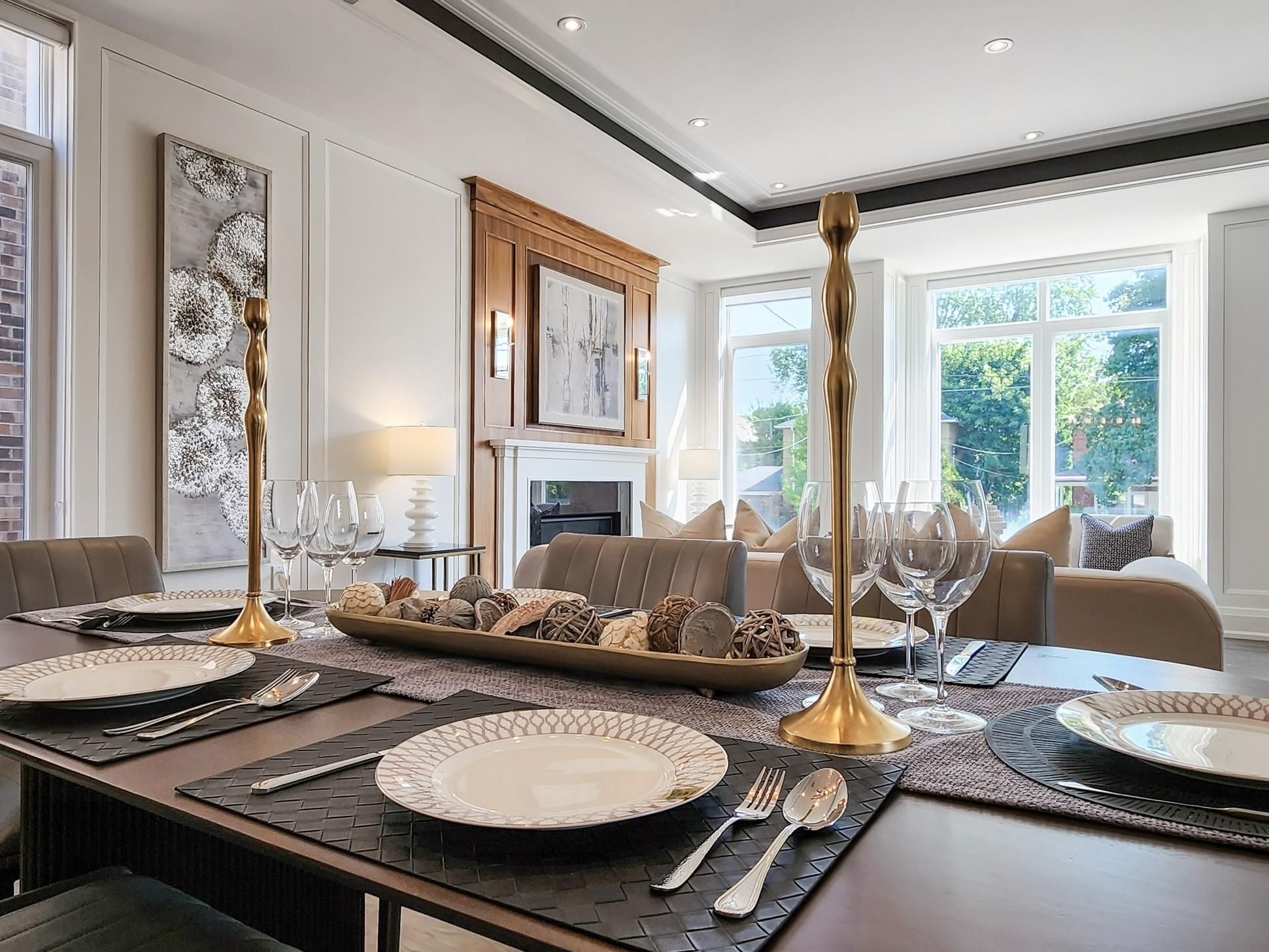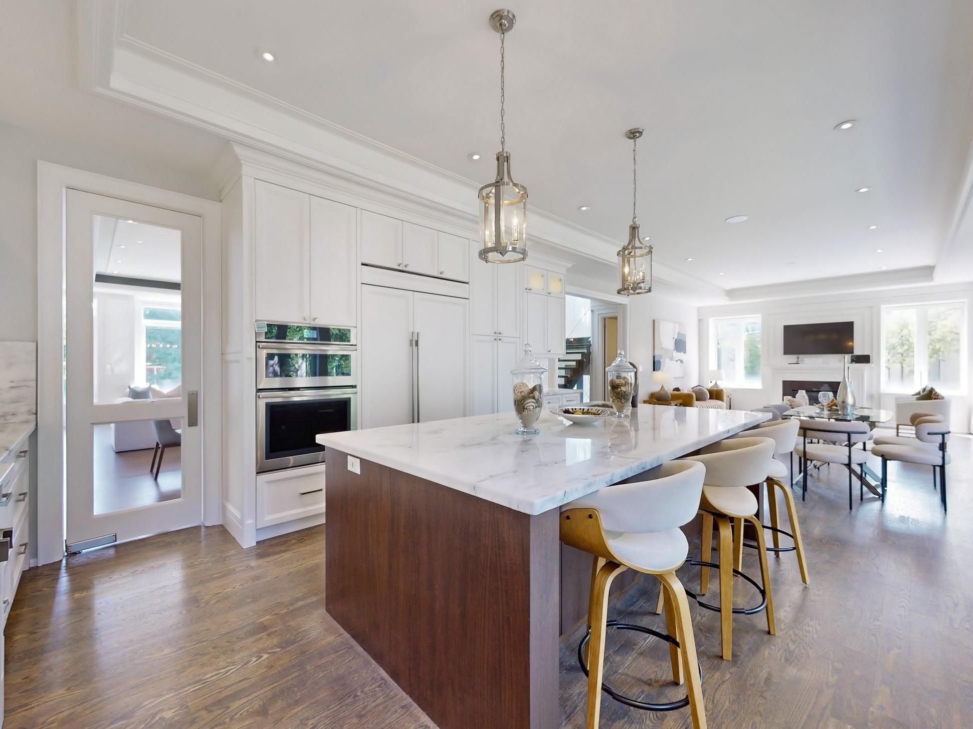 • Luxurious finishes like marble floors and extensive woodwork throughout.
