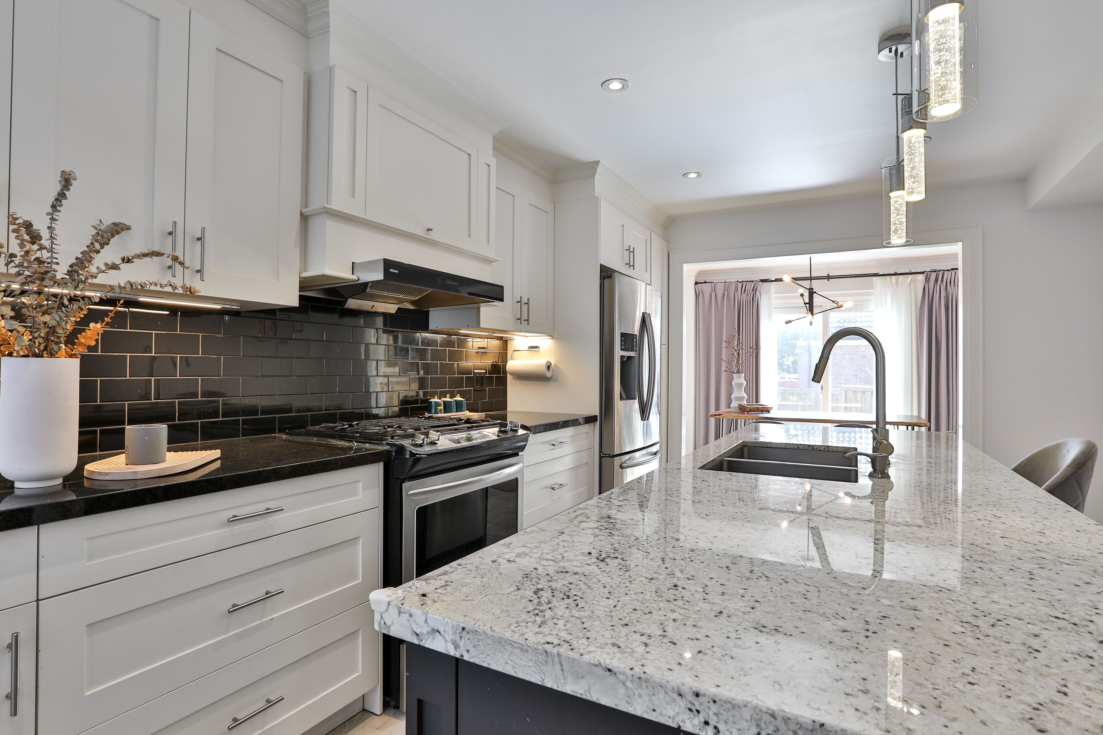 • Stylish kitchen with quartz counters and large island for entertaining.