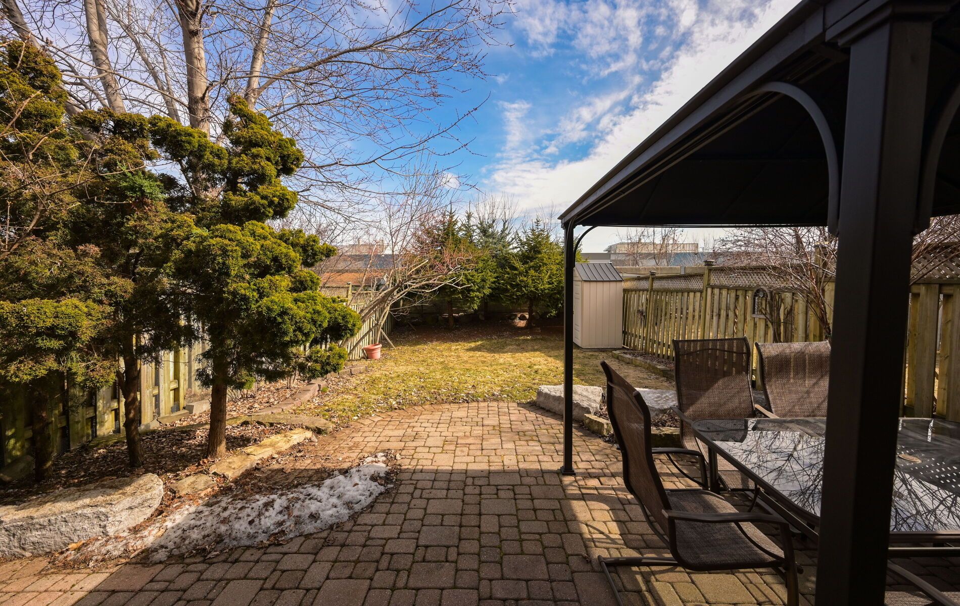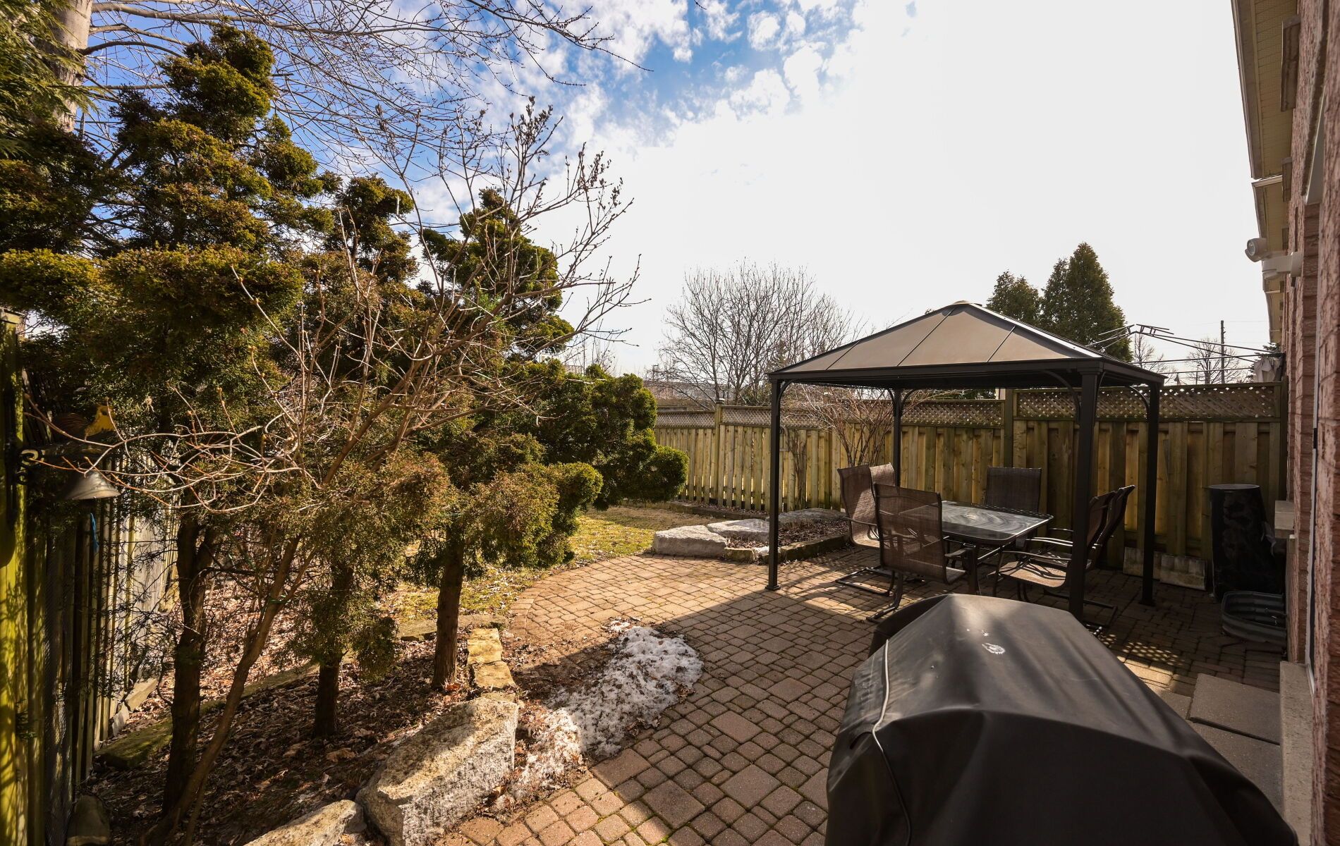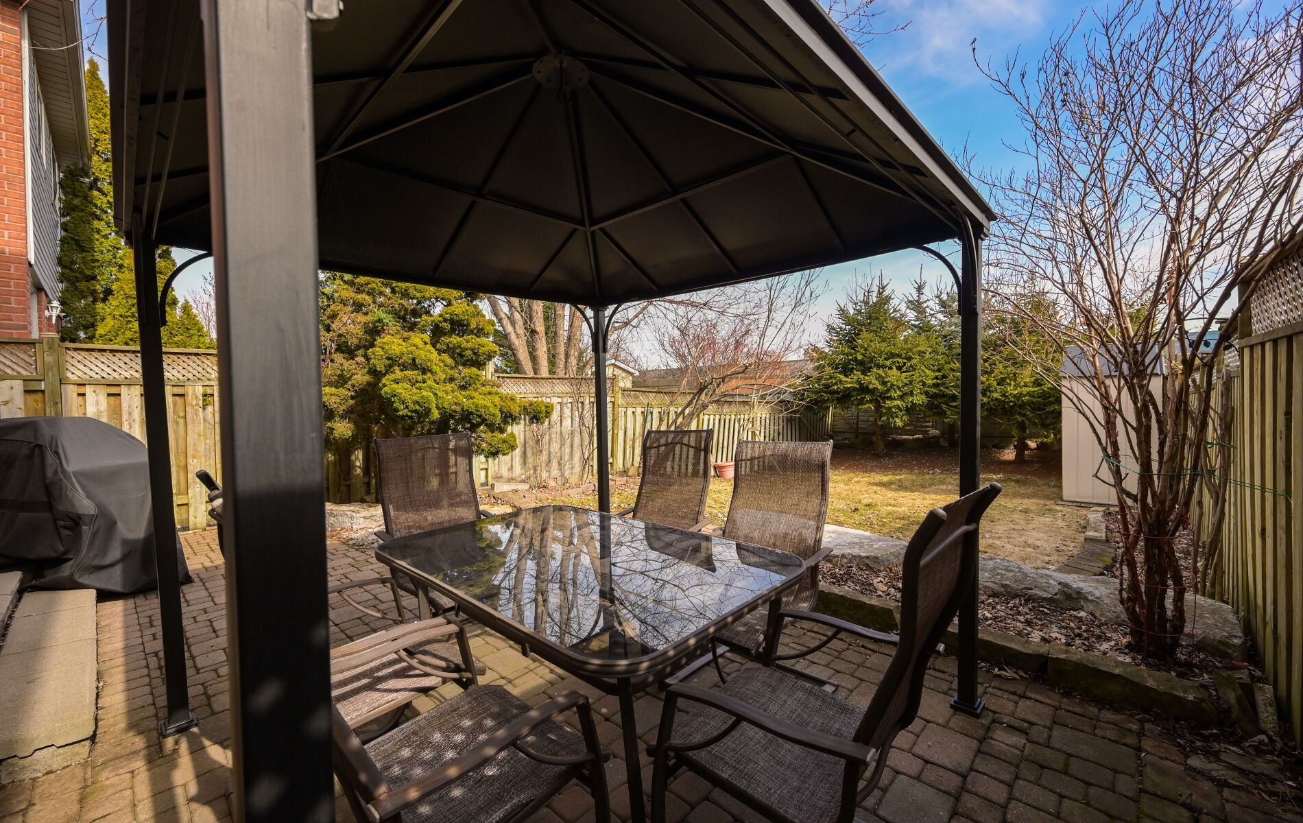 • Beautiful backyard featuring a gazebo and gas line for BBQs.