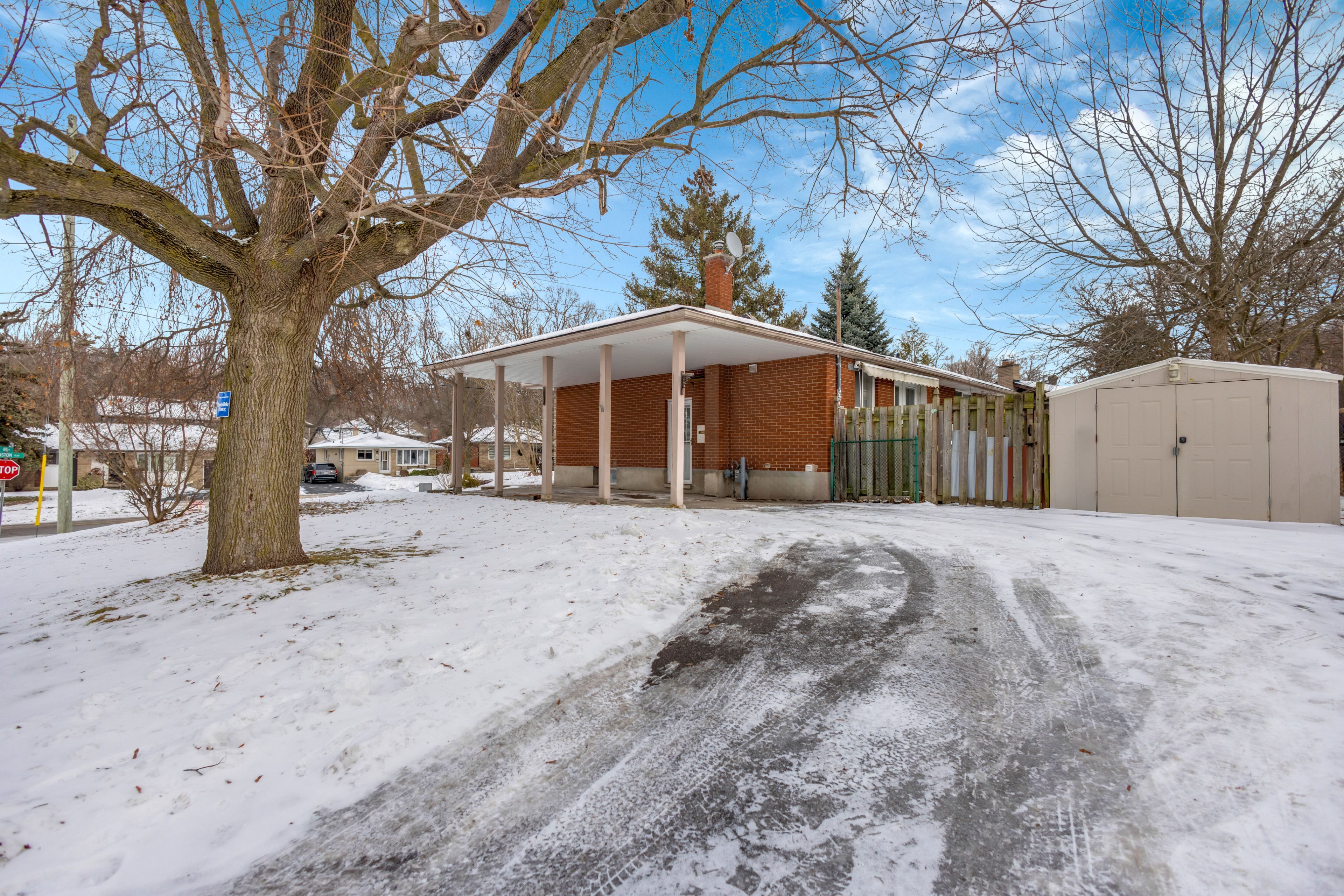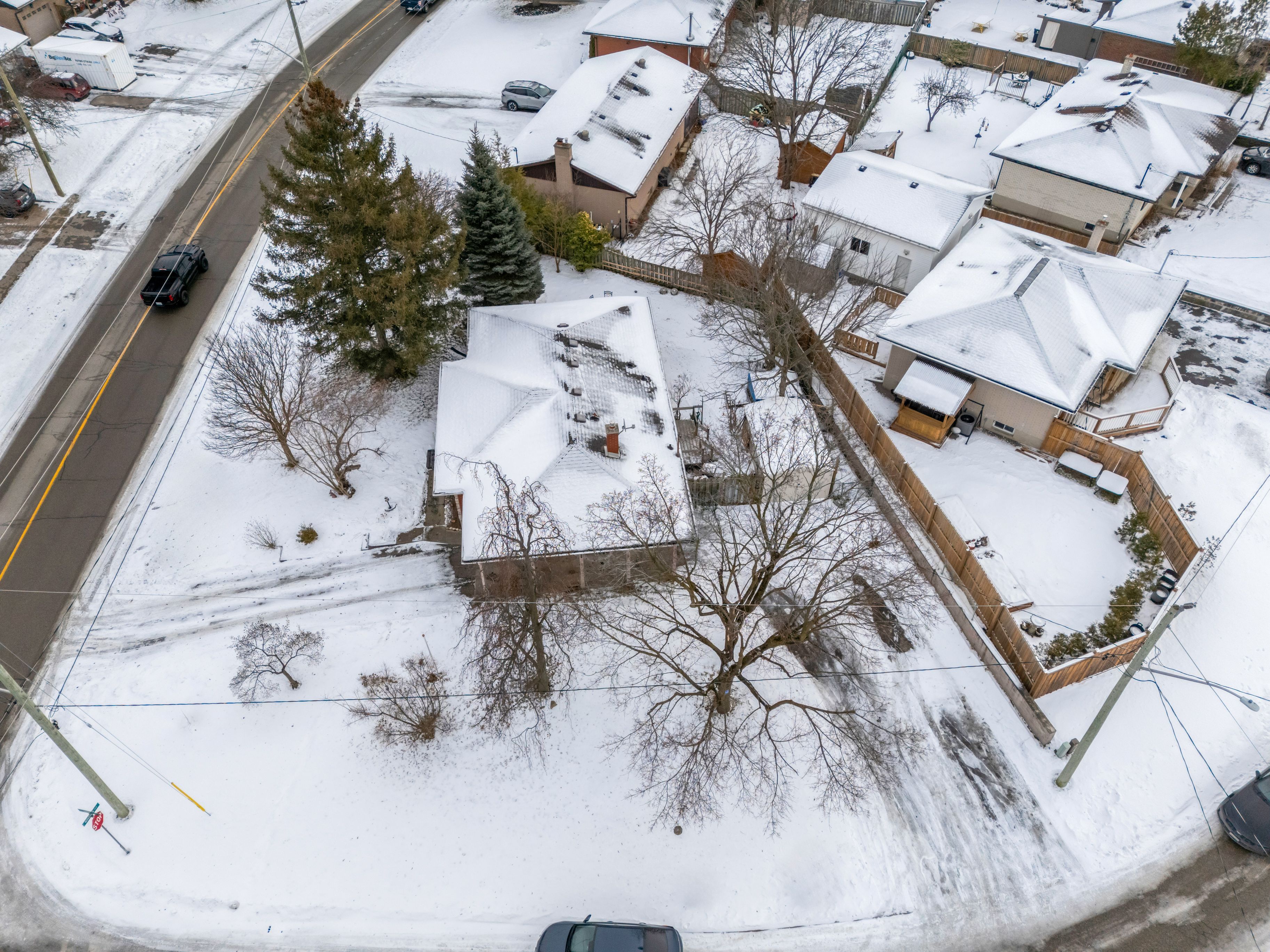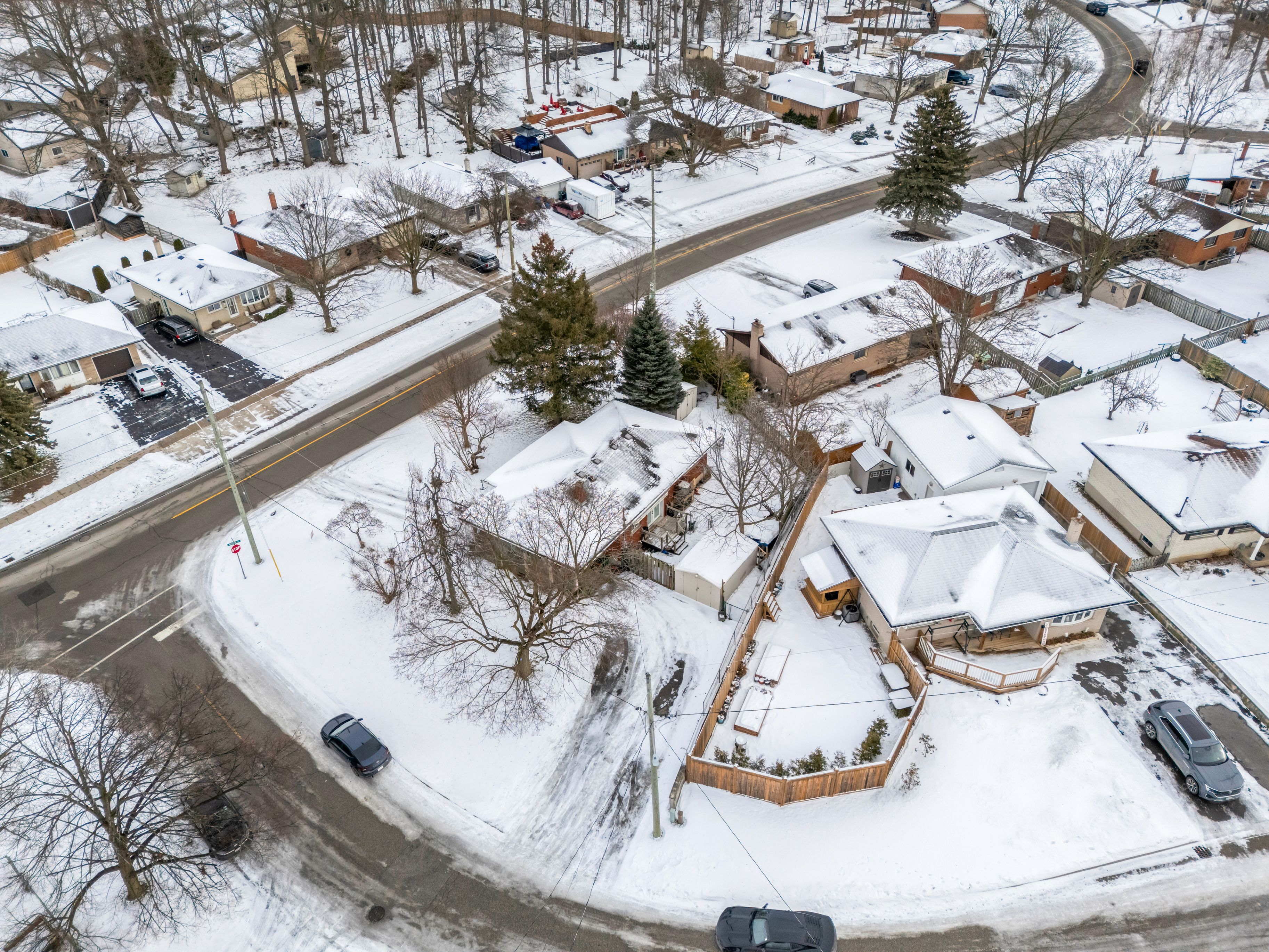 A rare opportunity to own a bungalow on a premium corner lot in one of hespeler's most sought-after neighbourhoods. This well-maintained 3+2 bedroom home features an updated kitchen with quartz countertops, laminate flooring, pot lights, and stainless steel appliances. The fully finished 2-bedroom basement features a kitchen, full bathroom, and separate side entrance, making it ideal for extended family or in-law use. Set on an impressive 118 ft corner lot with mature trees, this home offers excellent privacy and a circular driveway with parking for 8-10 cars. Conveniently located close to shopping, banks, parks, transit, and hwy 401. Additional highlights include main-floor laundry, abundant natural light, modern light fixtures, and two steel storage sheds. Some photos are virtually staged