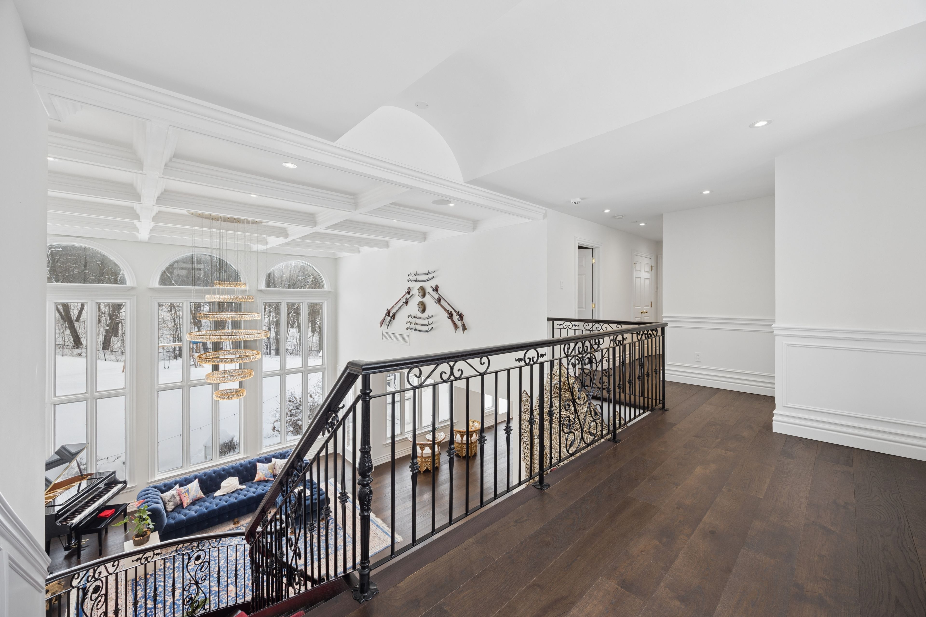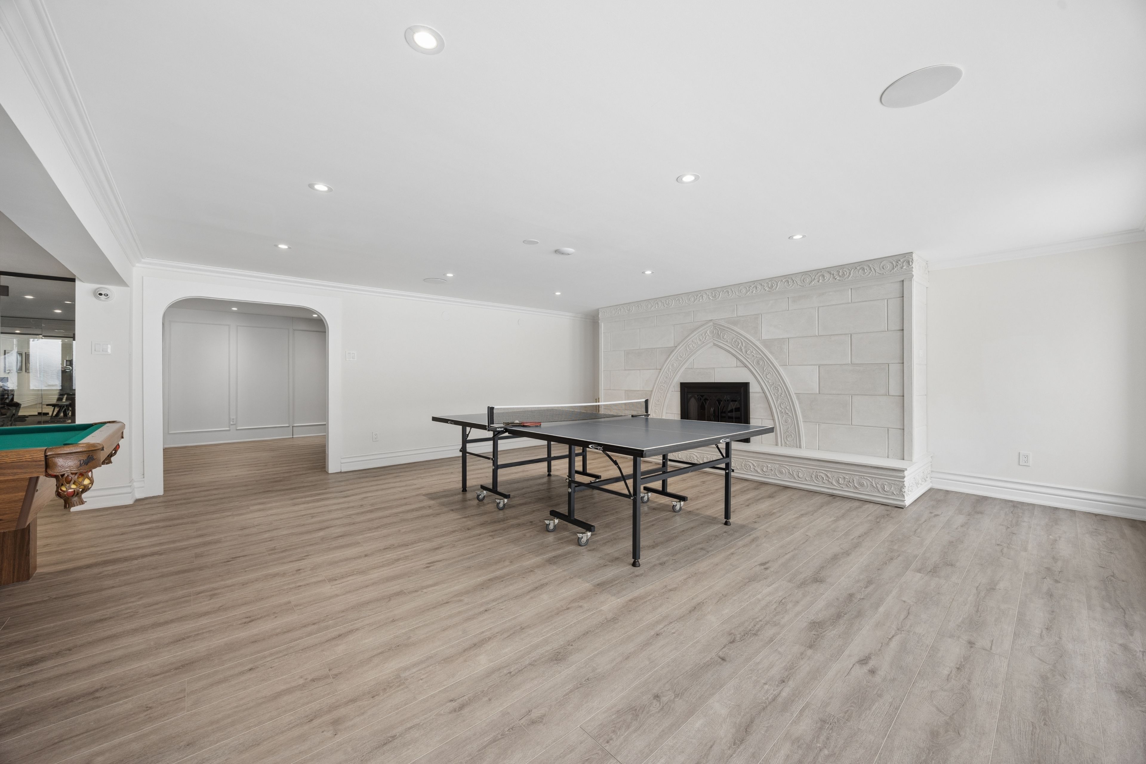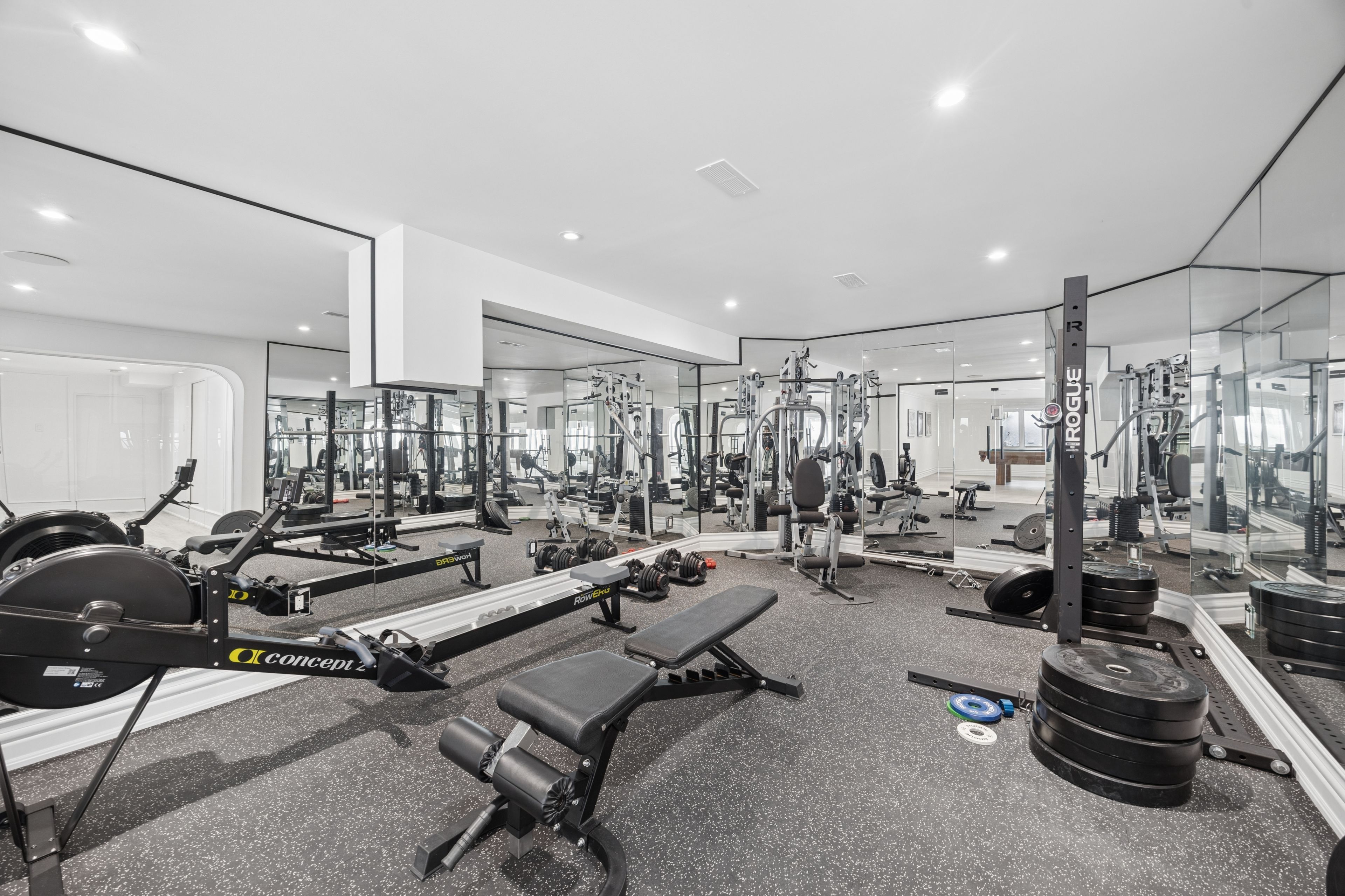 • Finished lower level includes suite for in-laws, gym, and home theater.